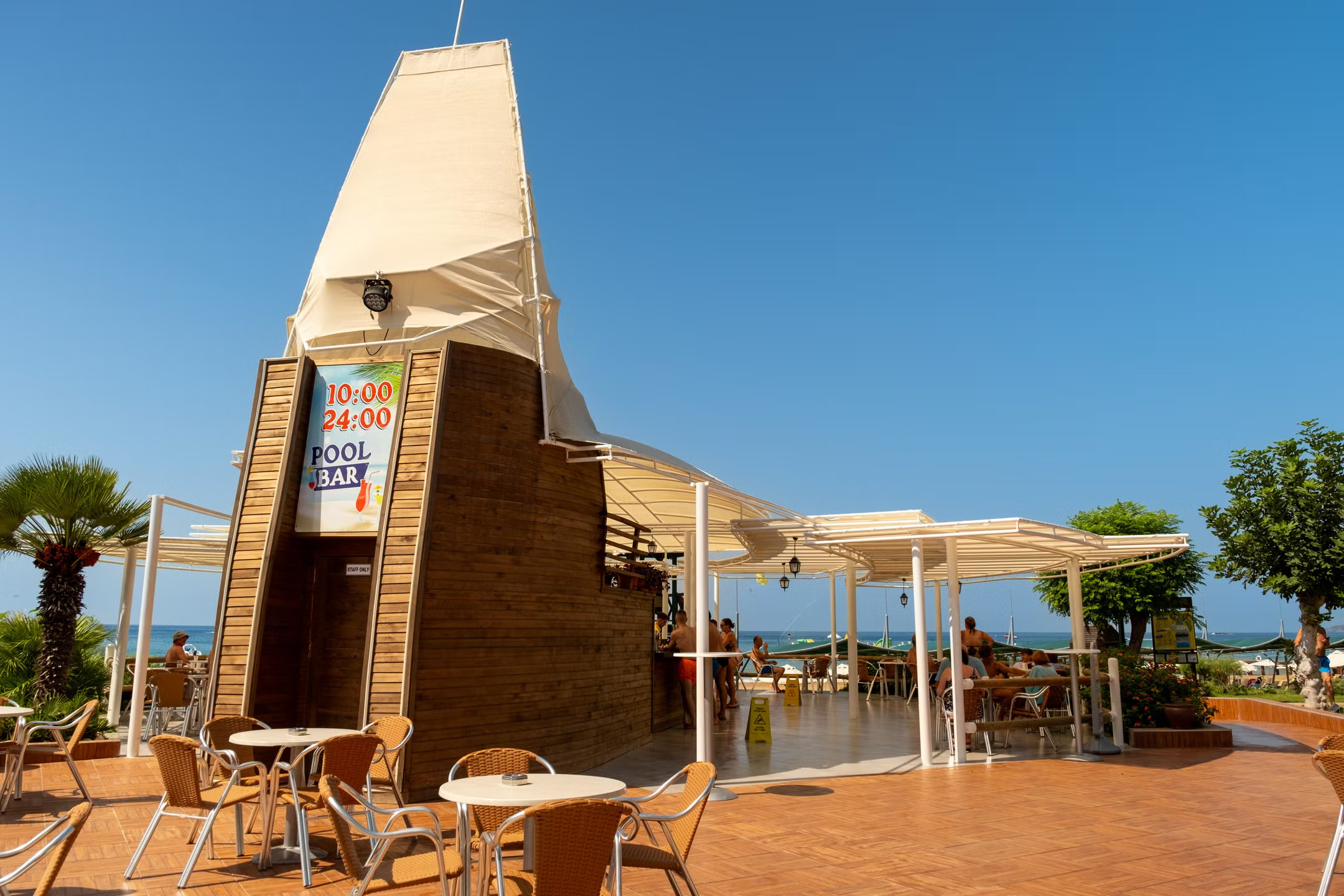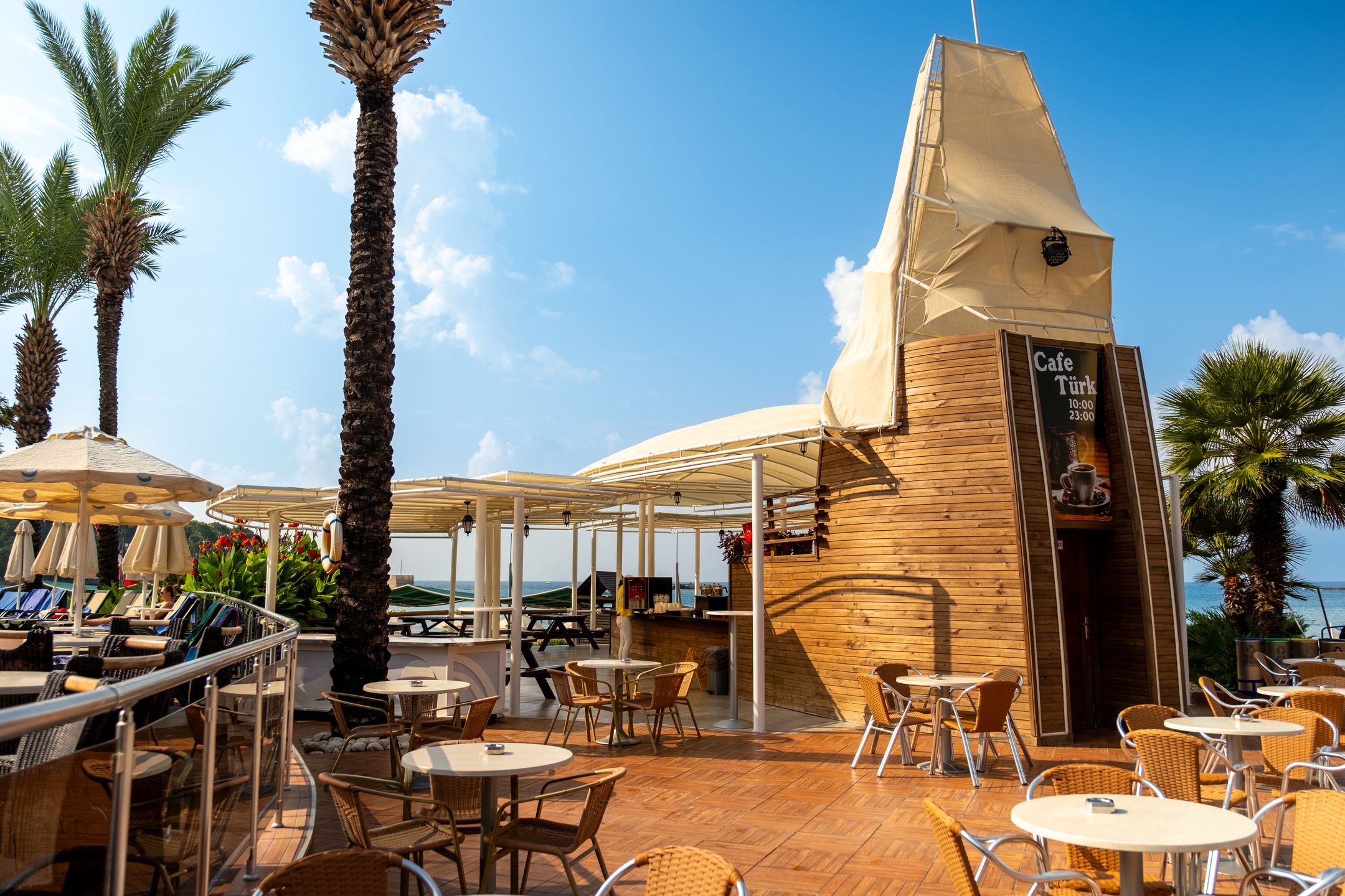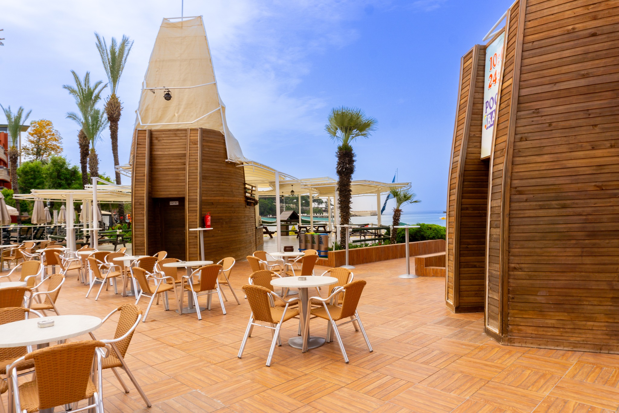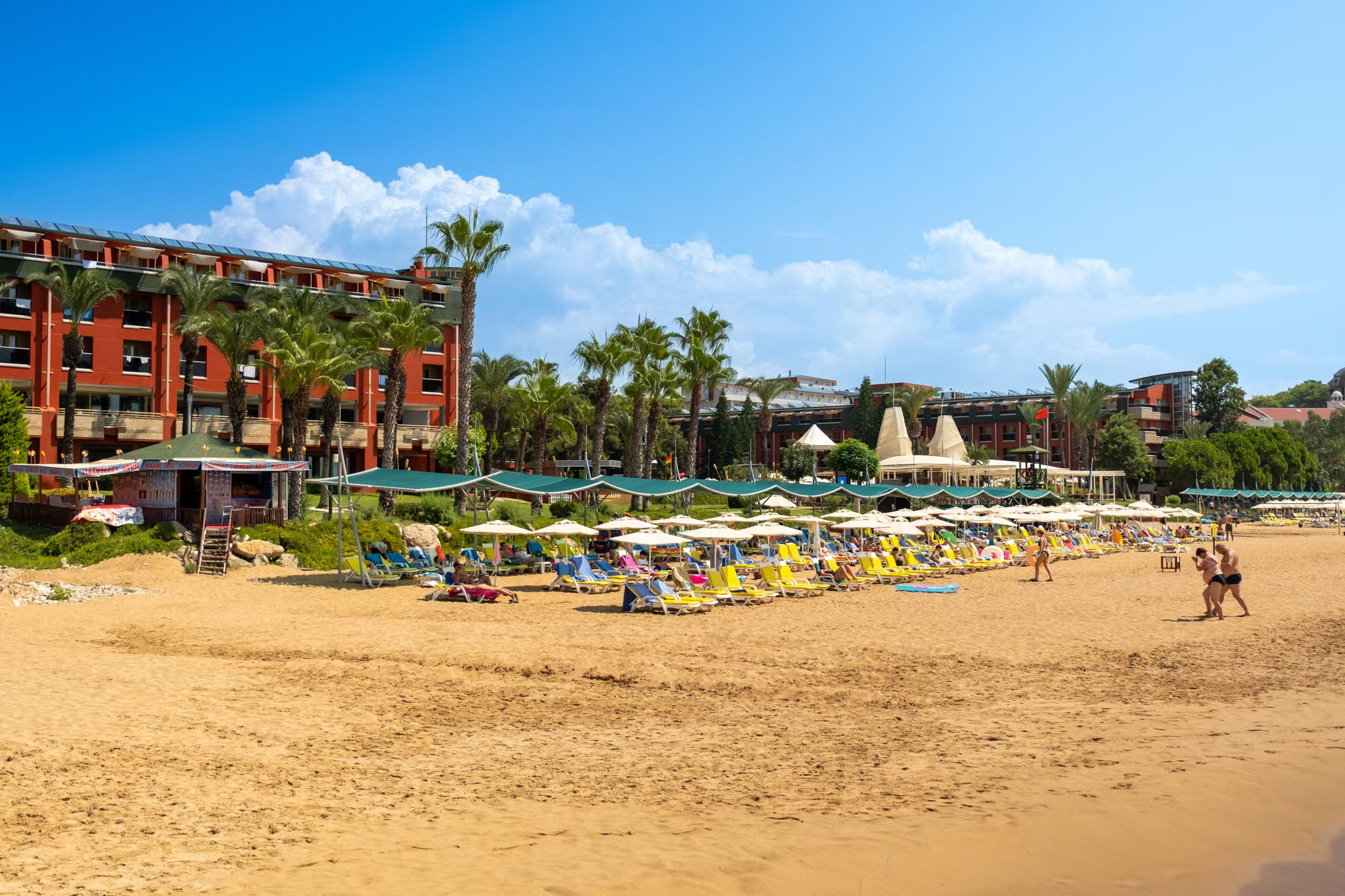 Чадъри и шезлонги както на плажа, така и край басейните са безплатни за гостите.