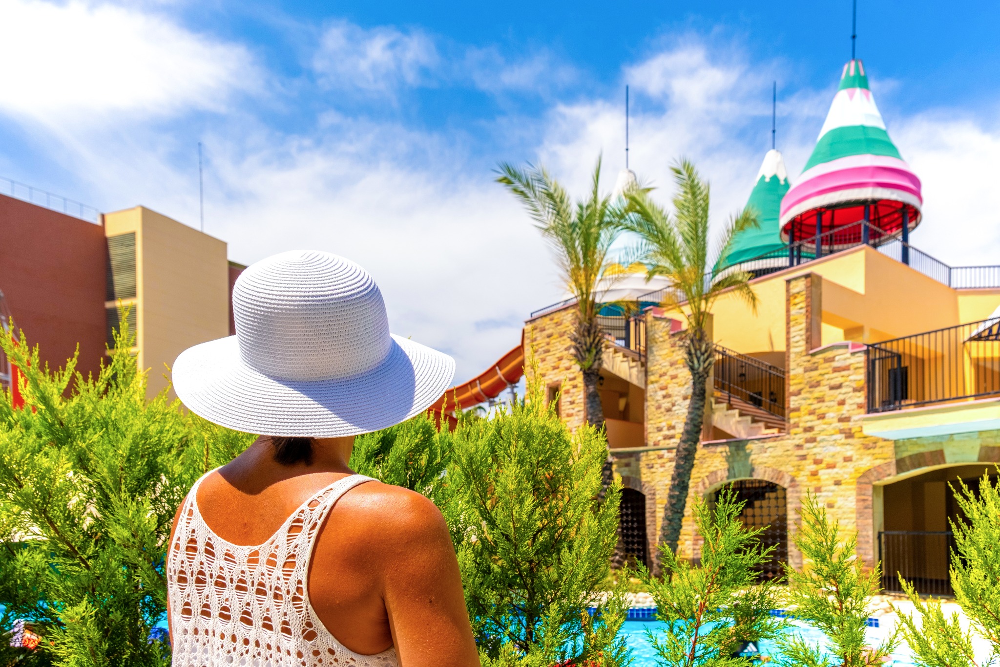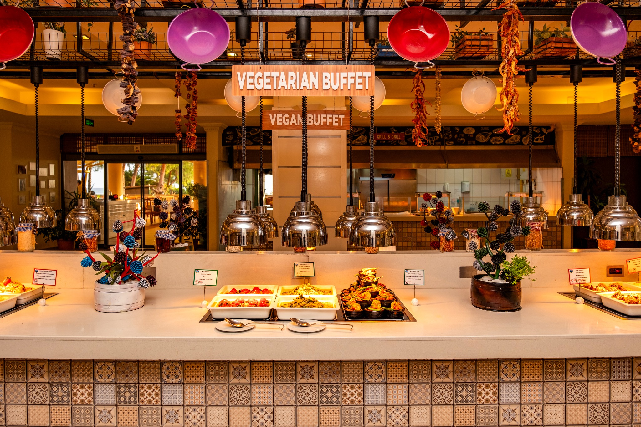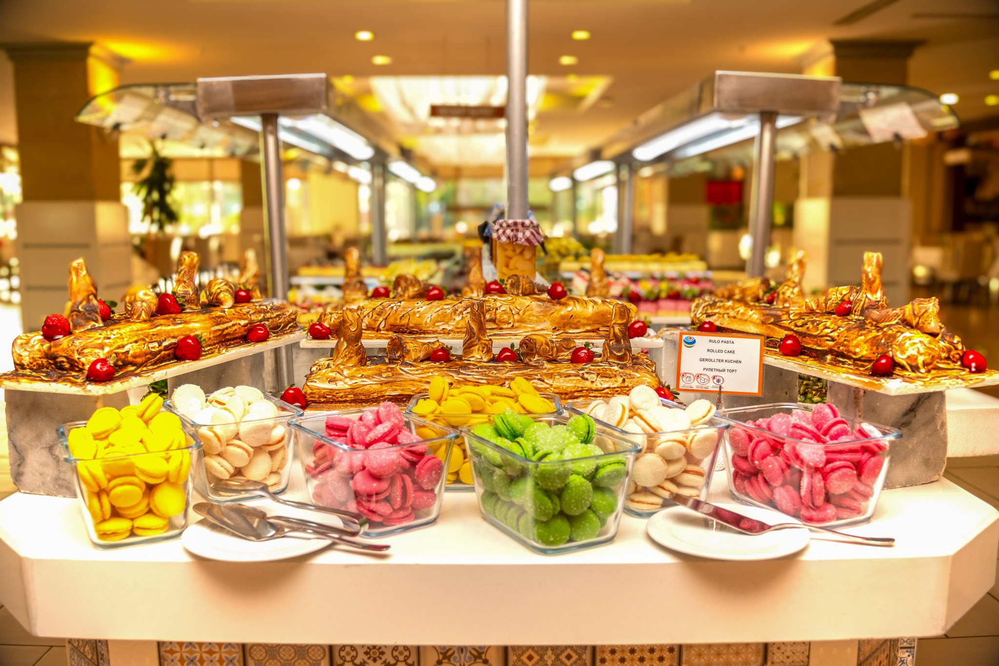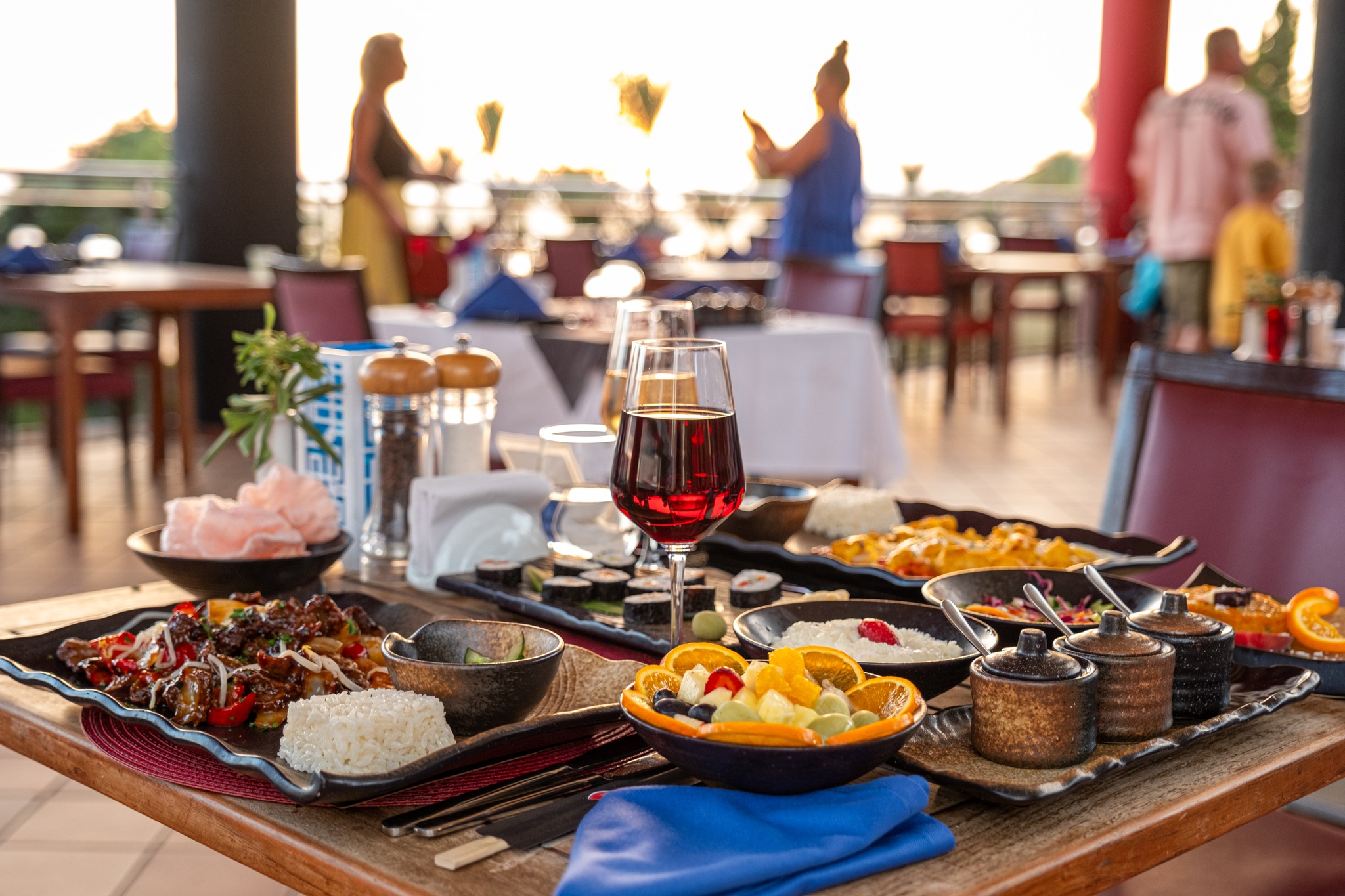 Основен ресторант, 3 а-ла-карт ресторанта 4 бара, 4 открити басейна, 1 детски басейн, водни пързалки за деца и възрастни, детска площадка, мини клуб (4-12г.).