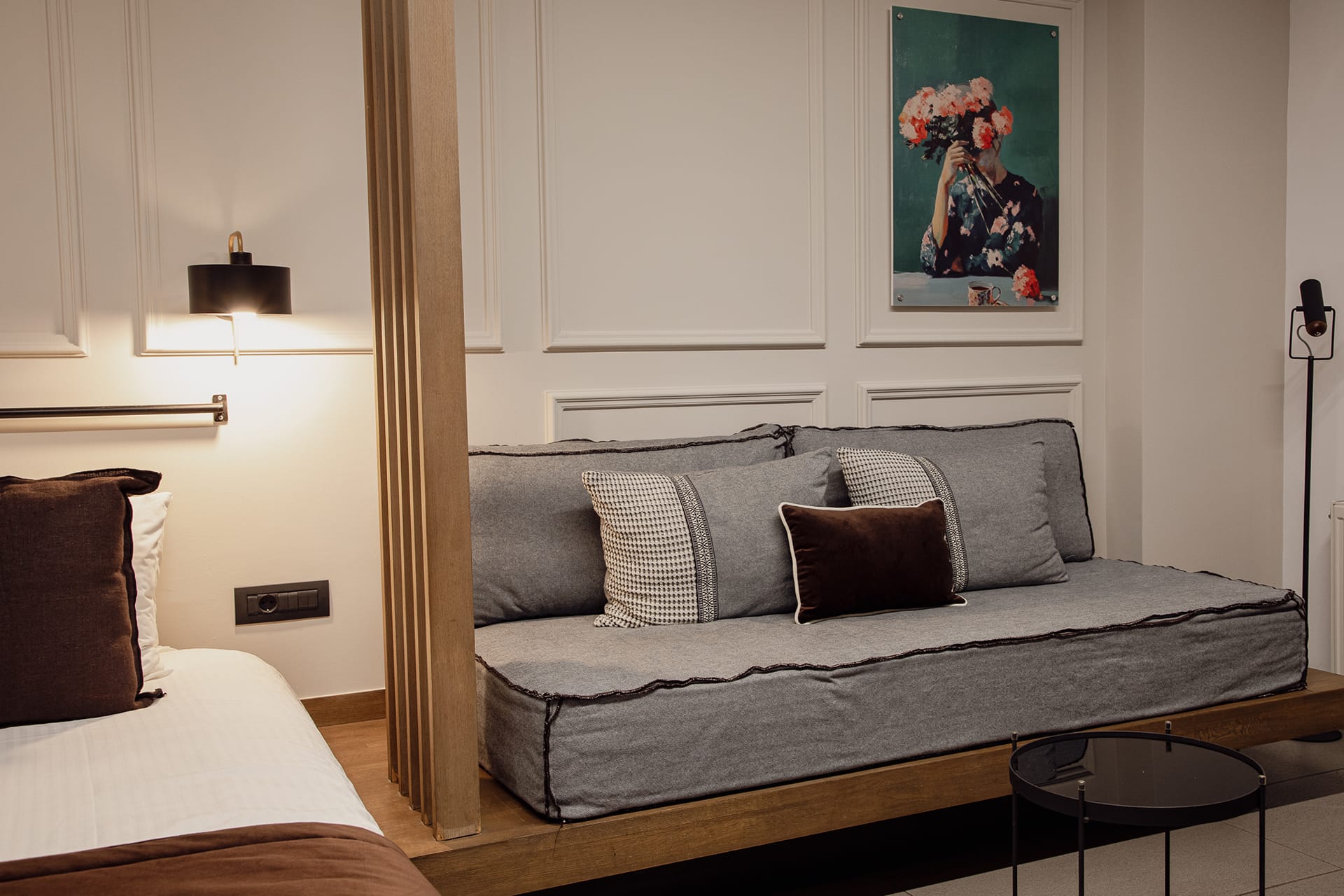 Thanks to the excellent location of Sir Athens, its guests will have the opportunity to enjoy the tranquility of a secluded pedestrian street, just one minute away from one of the busiest, fancy streets of the center of Athens, Skoufa Street.