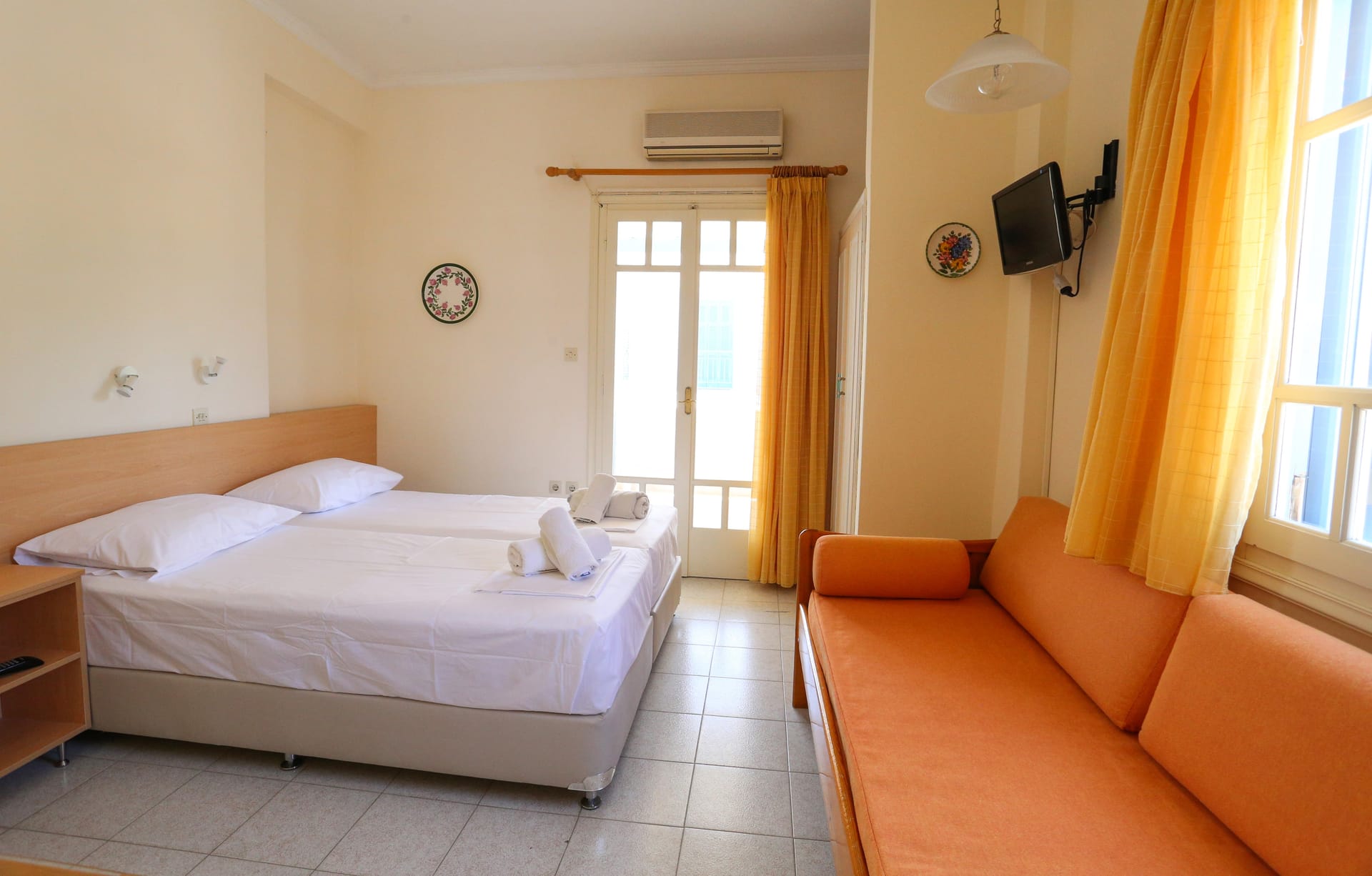 Sylvia apartments are located in the center of Agia Marina, one hundred meters from the sandy beach. The self-catering studios are newly built, with private balconies. They are all well-equipped with a kitchen and air conditioning. Some studios have a sea view.
