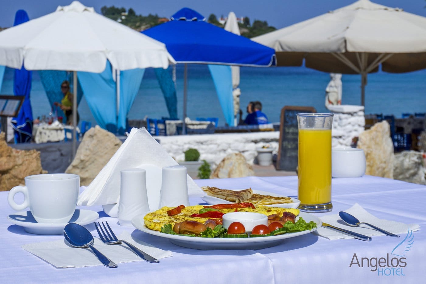 Angelos Hotel is located in the picturesque bay of ORMOS PANAGIAS on the Sithonia peninsula of Chalkidiki. The view over the azure turquoise waters of the Aegean sea, the ship dock and mighty St. Athos will make the guests wonder over the natural beauty. Well-groomed territory, clean rooms, the long sandy beach within the walking distance, attentive staff, the variety of excursions and much more will make your holiday nice and comfortable.