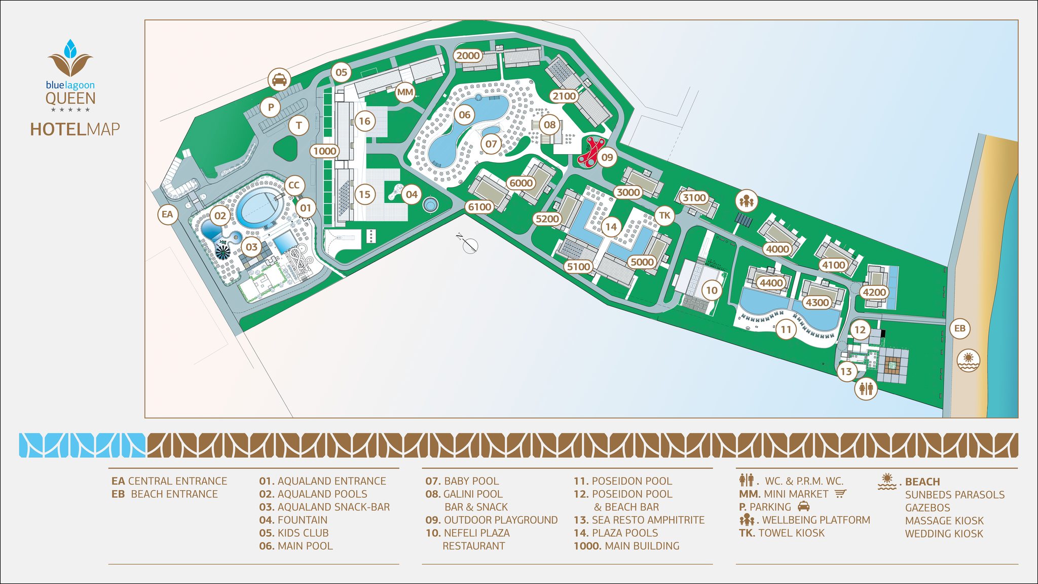 The Blue Lagoon Group is very proud to introduce the Blue Lagoon Queen! A brand new 5 star family hotel, which completes the family of Blue Lagoon Group Hotels in Halikidiki with its unique and modern presence. The location next to the sandy beach of Kalives, makes it an ideal destination for relaxation. Blue Lagoon Queen, with its brand new waterpark is here to make some joyful and unforgettable family moments with water games and slides.