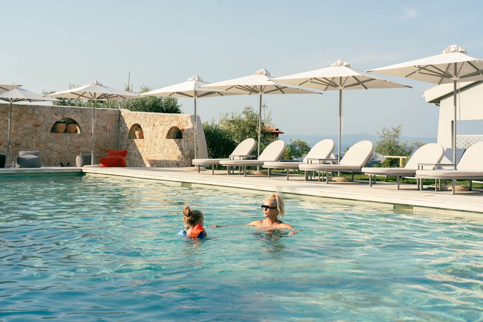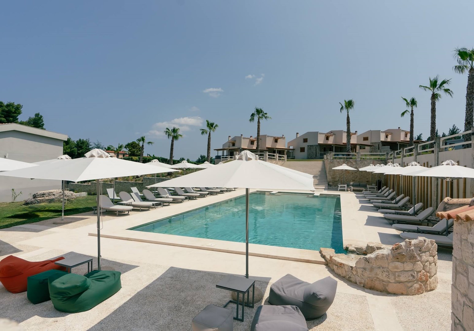 Situated just 100 meters from the shimmering beach of Kriopigi, our 26 unique villas, ranging from 110-160 sqm, offer an escape like no other. Set amidst 20 acres of lush greenery, our property is a sanctuary of tranquility, dotted with trees and sprawling grasslands.