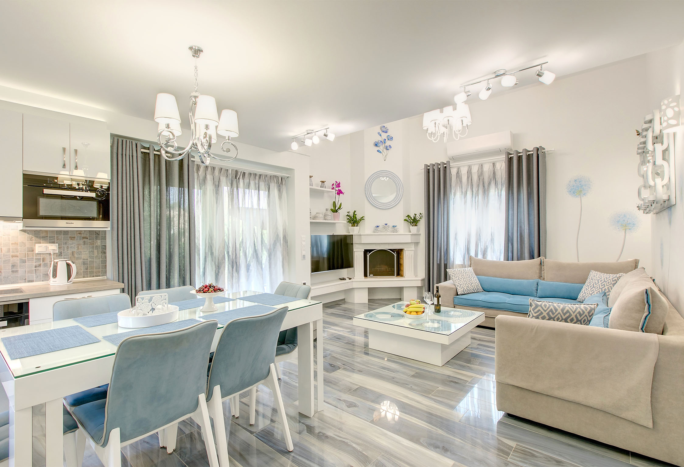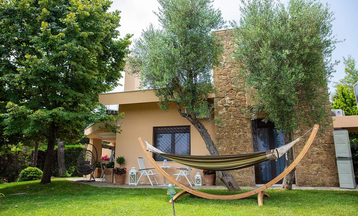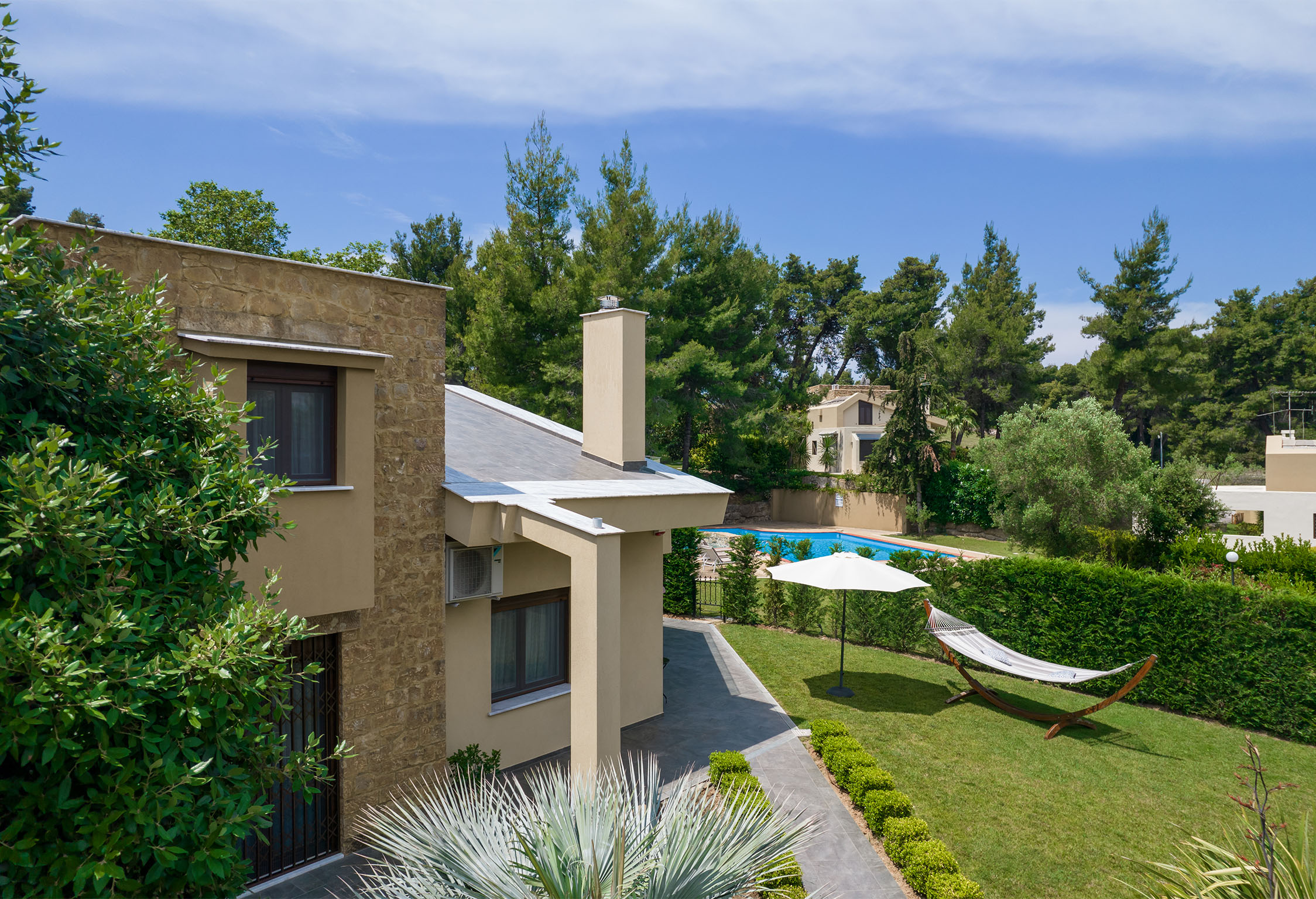 Luxury Villas Collection is a tranquil oasis, nestled amongst lush gardens in secluded area of Sani, Halkidiki peninsula steps away from sandy beach, restaurants, shops and entertainments of the resort. The vivid bouquet of our collection consists of five luxury and cozy villas Anemone, Artemisia, Azalea, Amelia and Asteri named after self-titled lovely plants that form the colorful landscape of this picturesque corner of Greece. The design of the villas is drenched with Greek traditions, but this have been done not at the expense of comfort luxurious decorations and state-of-the-art technology perfectly fit the interior and have their special contribution in creating the atmosphere of coziness. All villas are composed of 3 large bedrooms, specious living rooms, fully equipped kitchens, covered patios, open air terraces, furnished verandas as well as a large sharing swimming pool* with a special section for kids. Yet, each of the villas has its own special quirks, both in terms of design and equipment. Almost all villas are eqquiped with new outdoor whirpools from Acrilan brand with an aeromassage and ozone therapy. Another advantage villa complex is the availability of a wide range of additional services from personal butler and premium-class car rental service to guided individual tours all over Halkidiki peninsula. All these makes Luxury Villas Colelction a perfect gateway for truly uncompromising vacations. *The swimming pool is closed from 15th Sep till 30th Apr. *Climate Resilience Tax (must be paid beguest on the spot): 4 euros per Villa per night (for stay from November to March); 15 euros per Villa per night (for stay from April to October). NEWS: After Anemone Villa, Sani Luxury Villas have also upgraded Villas Artemisia, Azalea, and Asteri with a luxurious amenity - OUTDOOR JACUZZI. Guests staying at Villas Artemisia and Azalea can enjoy the intimate Tango model Jacuzzi, designed for two people, while the more spacious Lord model in Villa Asteri accommodates up to five guests simultaneously. In villas Artemisia and Amelia pets until 5 kg with extra charge upon request are accepted. Chef (cook) services are available upon prior request and at an additional charge. Guests of Sani Luxury Villas can visit the beaches of Sani Resort (for extra charge). Bousoulas Sea You Blue Dream Or other organized and non-organized beaches in the area (accessible by car).