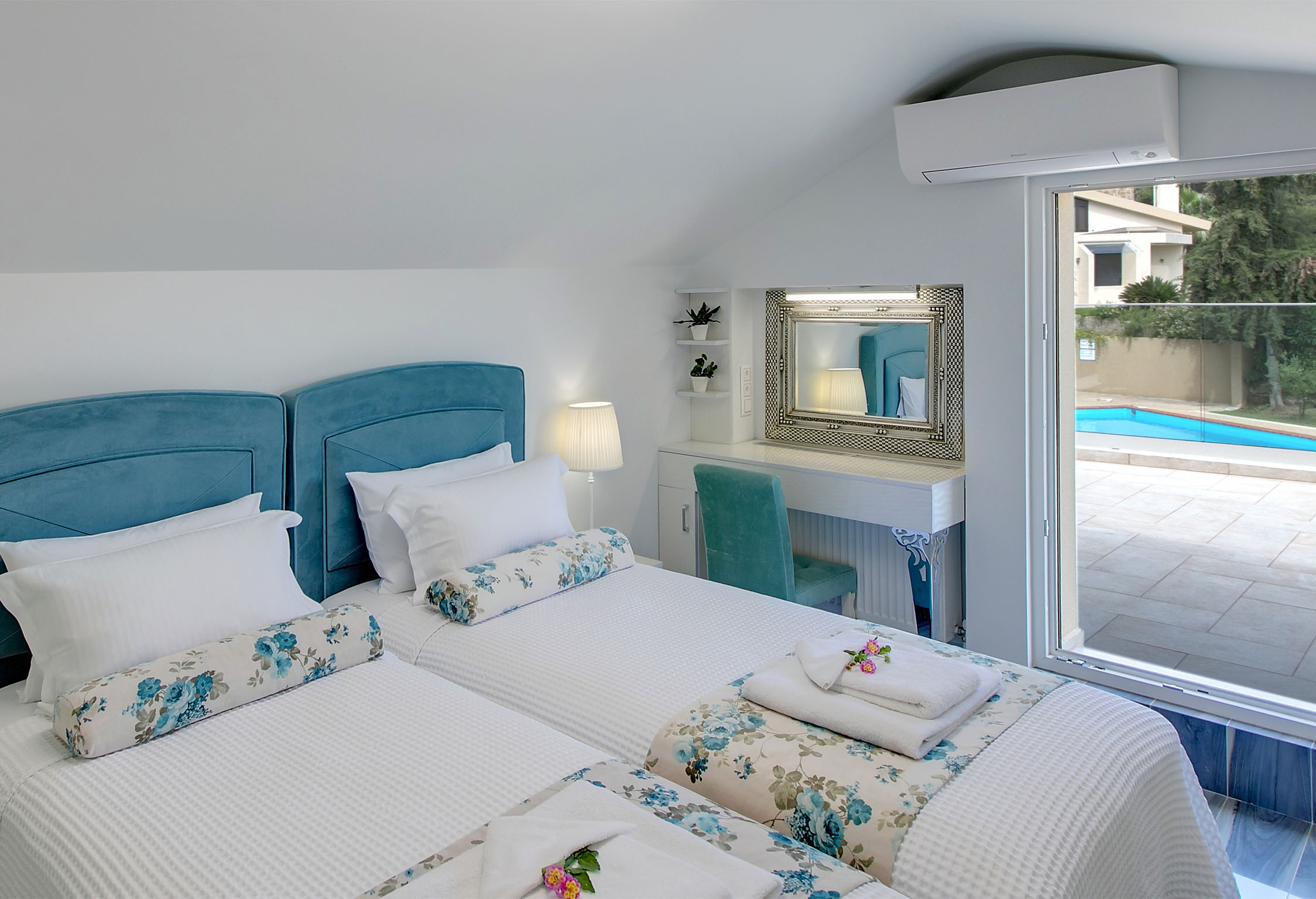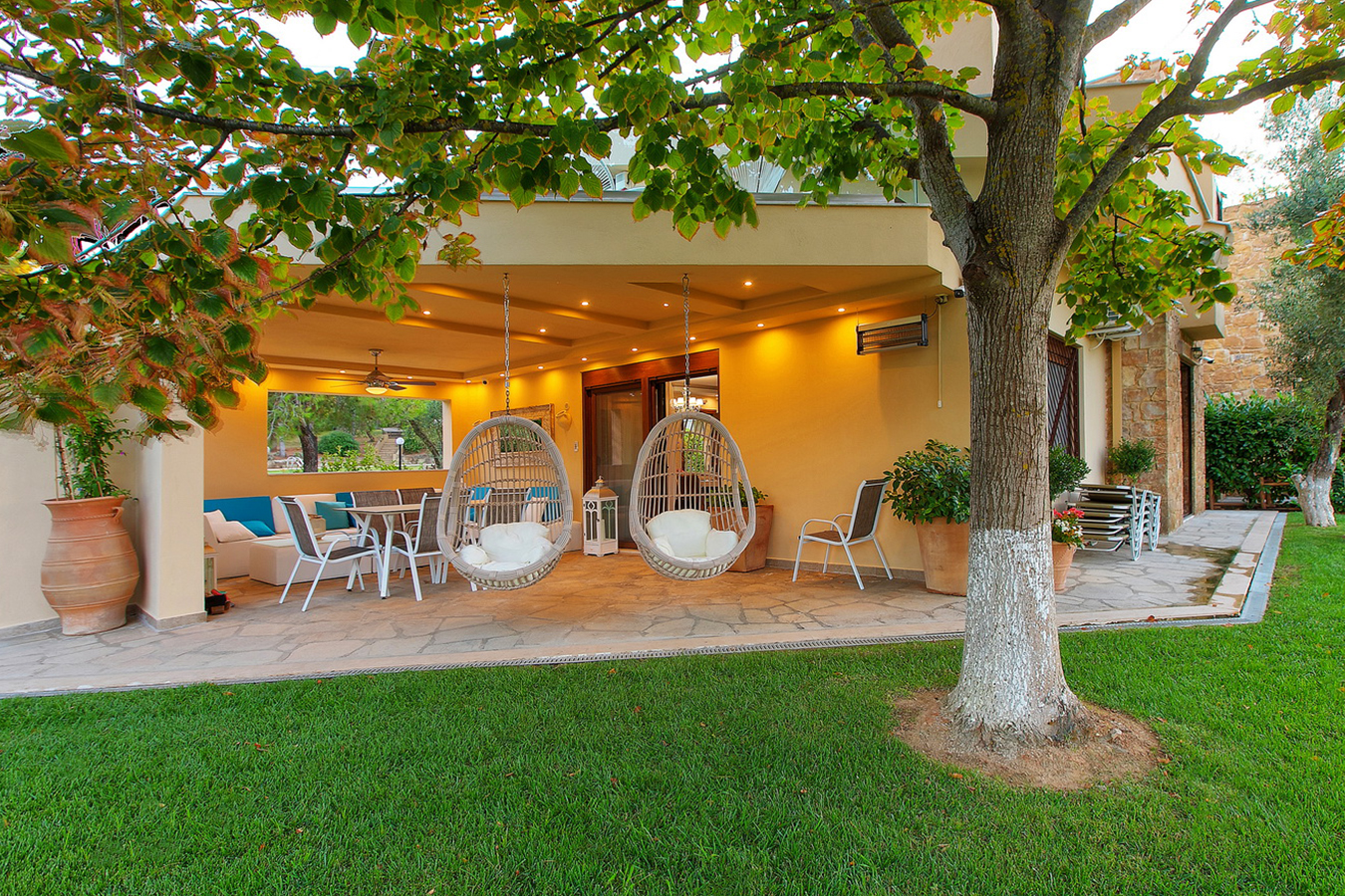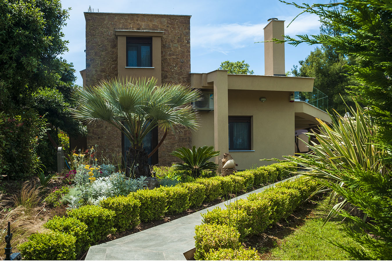 Luxury Villas Collection is a tranquil oasis, nestled amongst lush gardens in secluded area of Sani, Halkidiki peninsula steps away from sandy beach, restaurants, shops and entertainments of the resort. The vivid bouquet of our collection consists of five luxury and cozy villas Anemone, Artemisia, Azalea, Amelia and Asteri named after self-titled lovely plants that form the colorful landscape of this picturesque corner of Greece. The design of the villas is drenched with Greek traditions, but this have been done not at the expense of comfort luxurious decorations and state-of-the-art technology perfectly fit the interior and have their special contribution in creating the atmosphere of coziness. All villas are composed of 3 large bedrooms, specious living rooms, fully equipped kitchens, covered patios, open air terraces, furnished verandas as well as a large sharing swimming pool* with a special section for kids. Yet, each of the villas has its own special quirks, both in terms of design and equipment. Almost all villas are eqquiped with new outdoor whirpools from Acrilan brand with an aeromassage and ozone therapy. Another advantage villa complex is the availability of a wide range of additional services from personal butler and premium-class car rental service to guided individual tours all over Halkidiki peninsula. All these makes Luxury Villas Colelction a perfect gateway for truly uncompromising vacations. *The swimming pool is closed from 15th Sep till 30th Apr. *Climate Resilience Tax (must be paid beguest on the spot): 4 euros per Villa per night (for stay from November to March); 15 euros per Villa per night (for stay from April to October). NEWS: After Anemone Villa, Sani Luxury Villas have also upgraded Villas Artemisia, Azalea, and Asteri with a luxurious amenity - OUTDOOR JACUZZI. Guests staying at Villas Artemisia and Azalea can enjoy the intimate Tango model Jacuzzi, designed for two people, while the more spacious Lord model in Villa Asteri accommodates up to five guests simultaneously. In villas Artemisia and Amelia pets until 5 kg with extra charge upon request are accepted. Chef (cook) services are available upon prior request and at an additional charge. Guests of Sani Luxury Villas can visit the beaches of Sani Resort (for extra charge). Bousoulas Sea You Blue Dream Or other organized and non-organized beaches in the area (accessible by car).