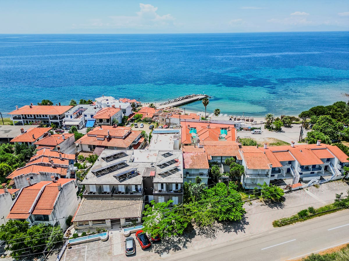 Our complex, in Kassandra, is the ideal hideaway for anyone wanting a quiet and relaxing break, and it’s a short distance (100m) from the beach and it’s crystal-clear waters. This hotel provides everything you need to de-stress, whether you want to relax in the sun or enjoy a treatment at the nearby thermal spa.