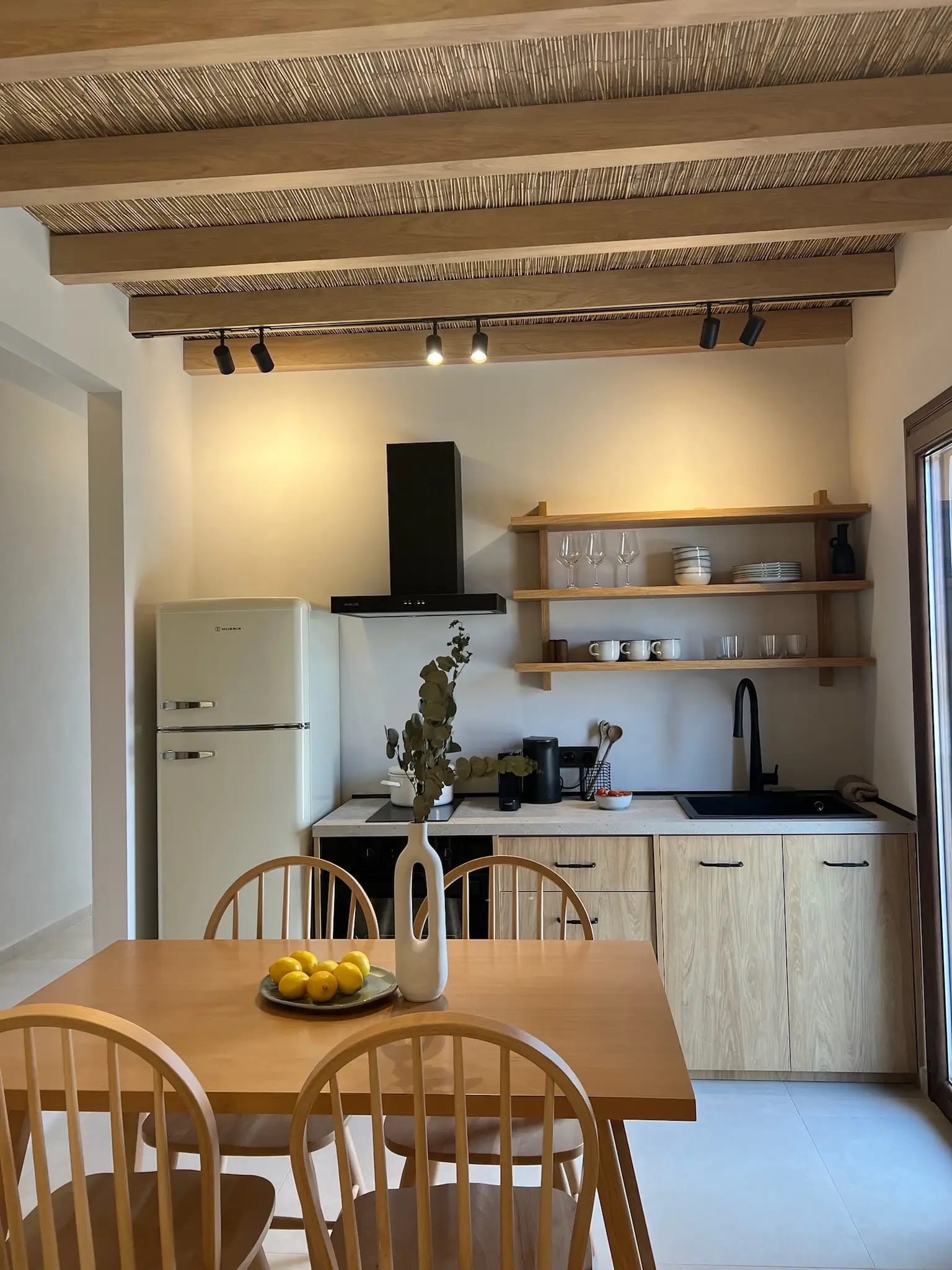 Om Living Afitos offers 10 suites, all thoughtfully designed with the same aesthetic vision and dedication to comfort. Each suite features a fully equipped kitchen, providing the convenience of home within a serene holiday atmosphere. The units vary in size and layout, making them suitable for couples as well as larger families. We are always here to help you choose the accommodation that best fits your needs.