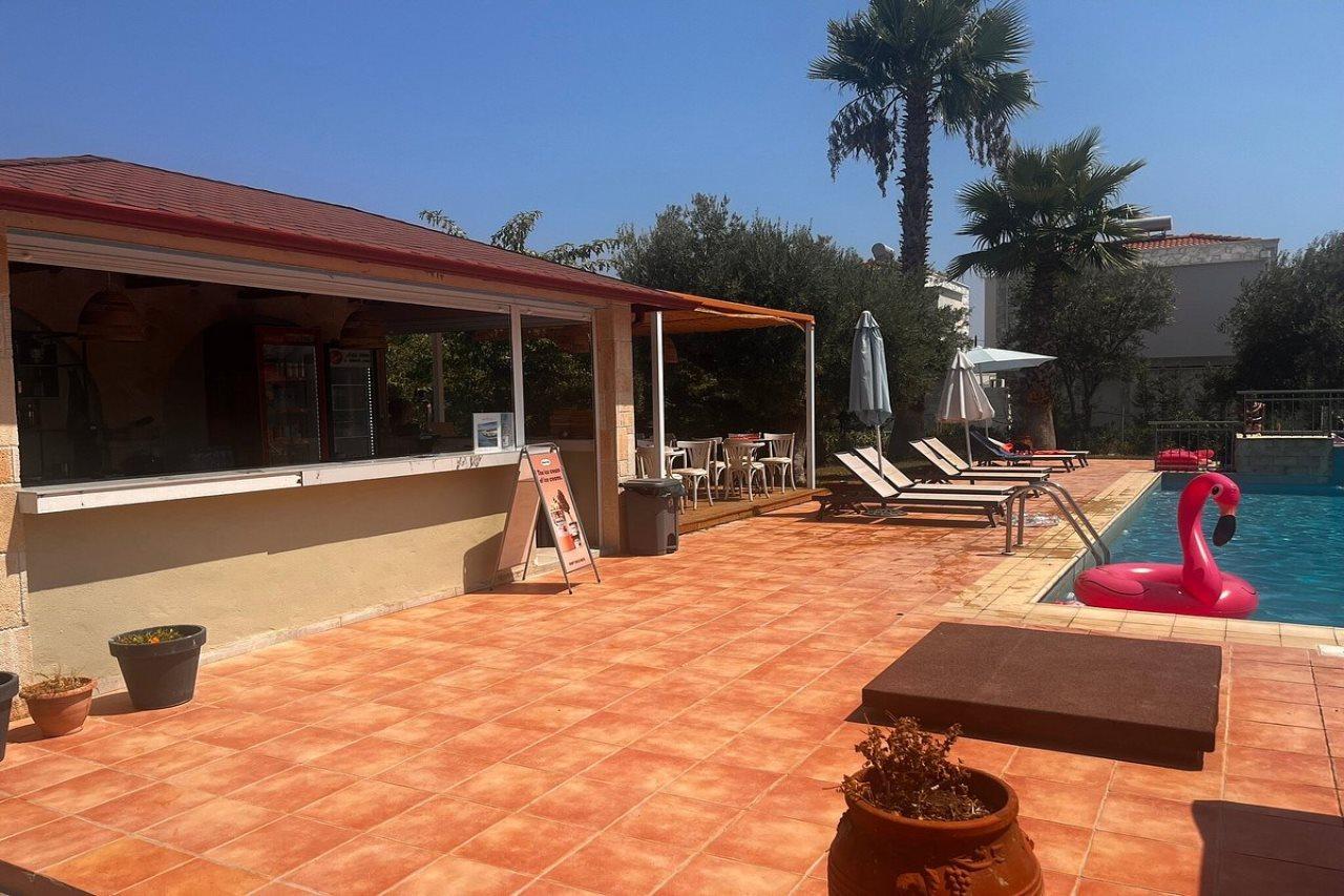 Facilities and services include WiFi access, a swimming pool, a children's pool, and parking. Rooms feature WiFi access, safe box, balcony/terrace, kitchenette, and a fridge. Address: 63085 Pefkohori Chalkidiki – Kassandra Greece