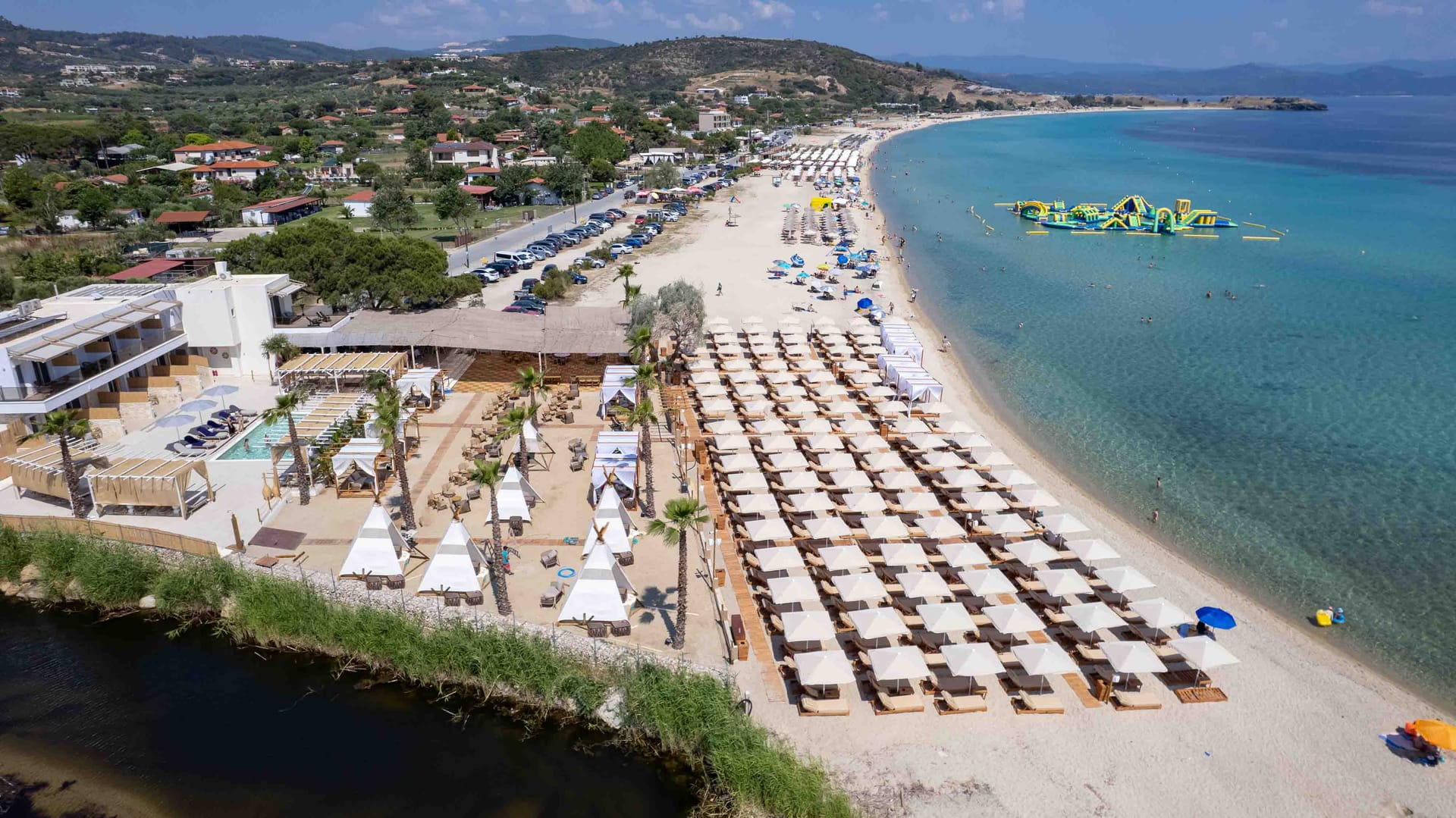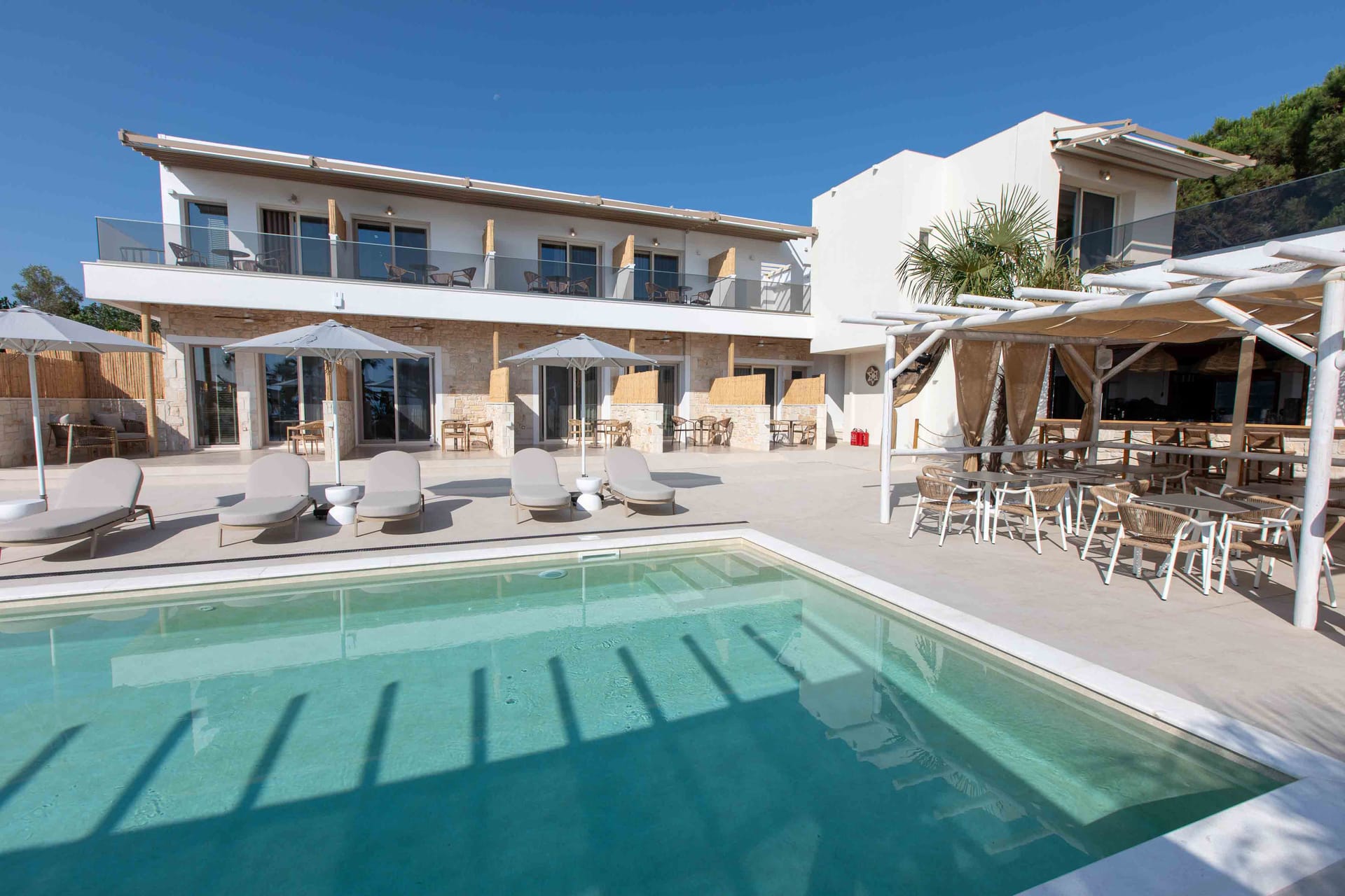 Linari Sea & Suites graces the serene seafront of Trani Ammouda in Ormos Panagias, Sithonia, Halkidiki, offering a harmonious blend of comfort and luxury. Our unparalleled location sets the stage for an extraordinary holiday experience, where every moment becomes a cherished memory. Immerse yourself in the crystal-clear waters, unwind by our elegant swimming pool, and indulge in the delights of our vibrant beach bar. With an array of exceptional amenities, we strive to exceed your expectations, crafting a retreat of pure relaxation and bliss.