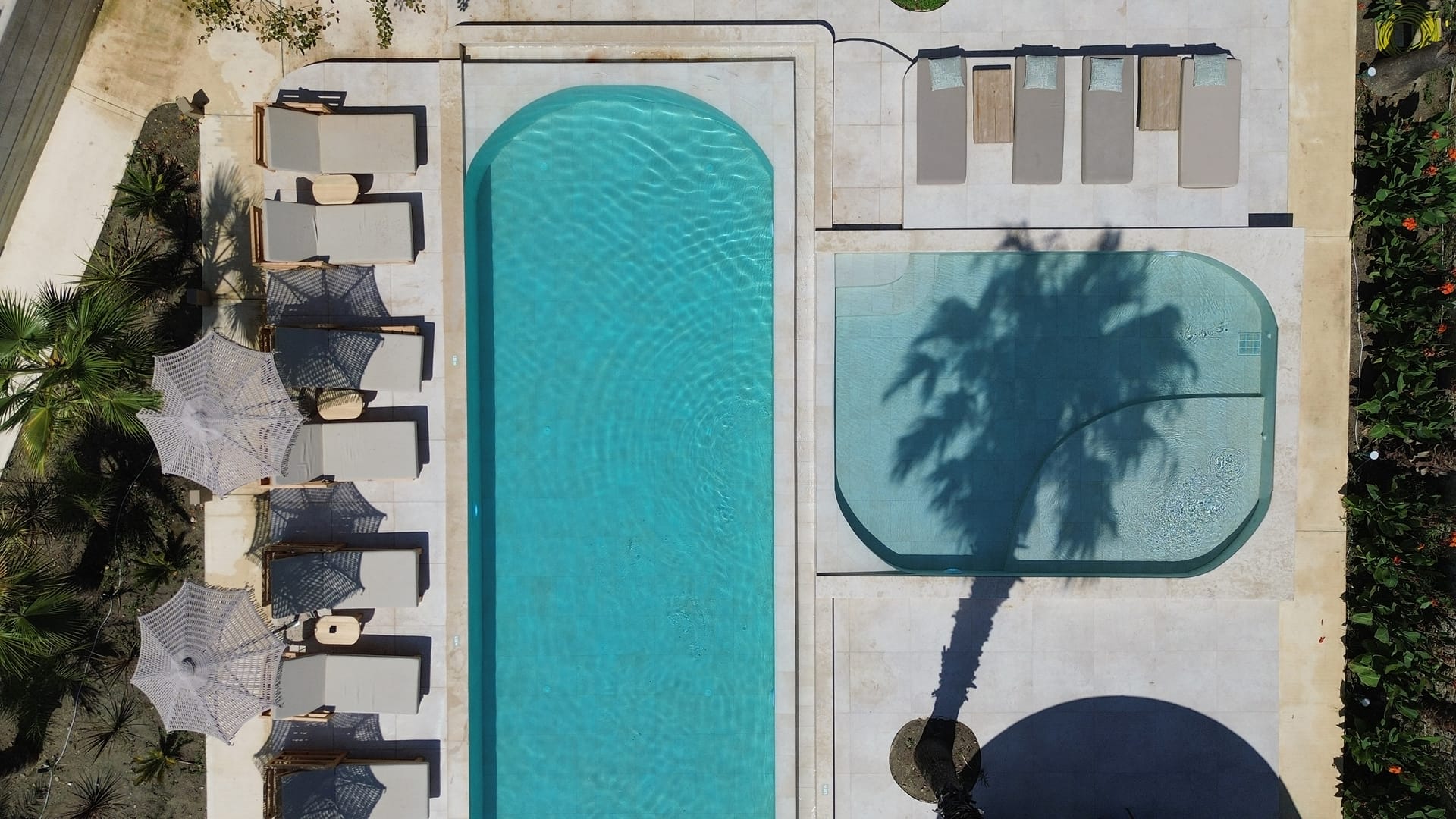 A complex of 14 suites and villas located just 50 meters from the sea shares a marvelous pool in the common garden area.