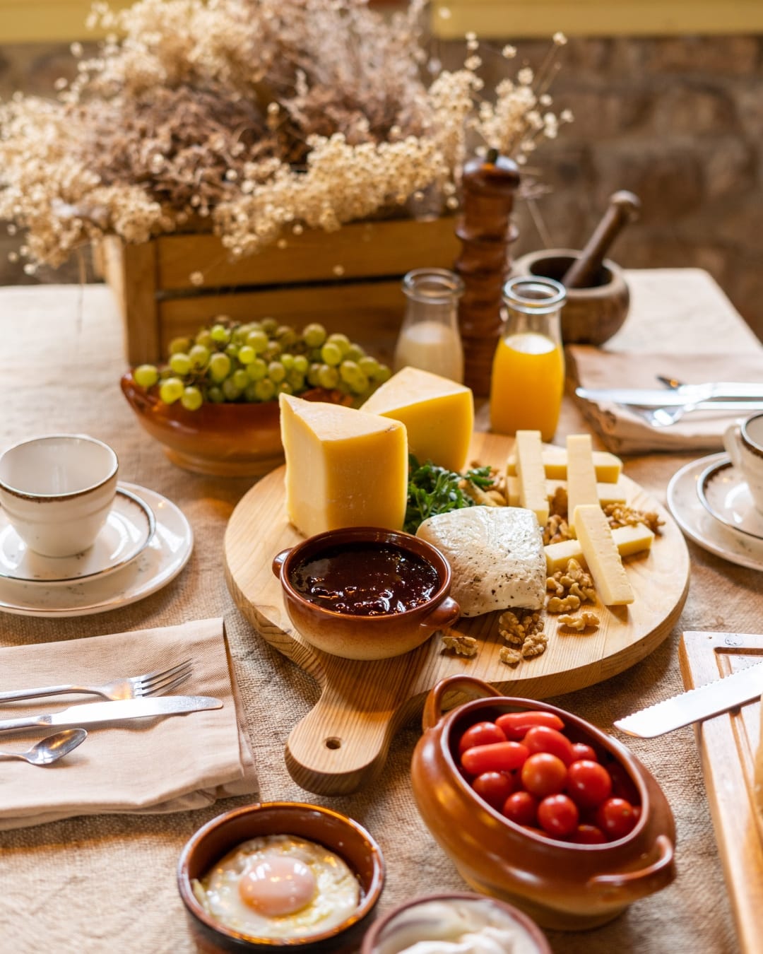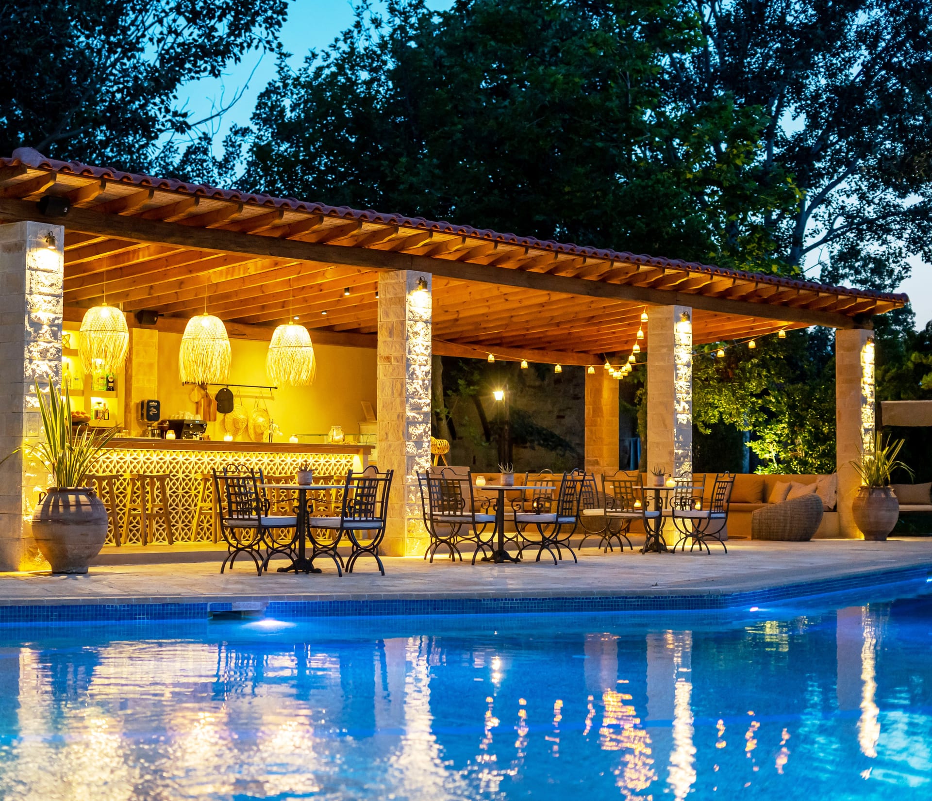 There’s no better way to start your mornings than by ordering a traditional Greek breakfast basket (for an additional supplement) to your room, filled with freshly baked bread, homemade jams, fruit grown on-site, and delicious pastries. If you feel like dining in later on as well, the poolside bar and bistro is a perfect spot for a light lunch or a romantic dinner, or just a quiet drink or two. Private dining is also available, as well as wine tasting sessions and cooking lessons, giving you a unique insight into local culinary traditions.