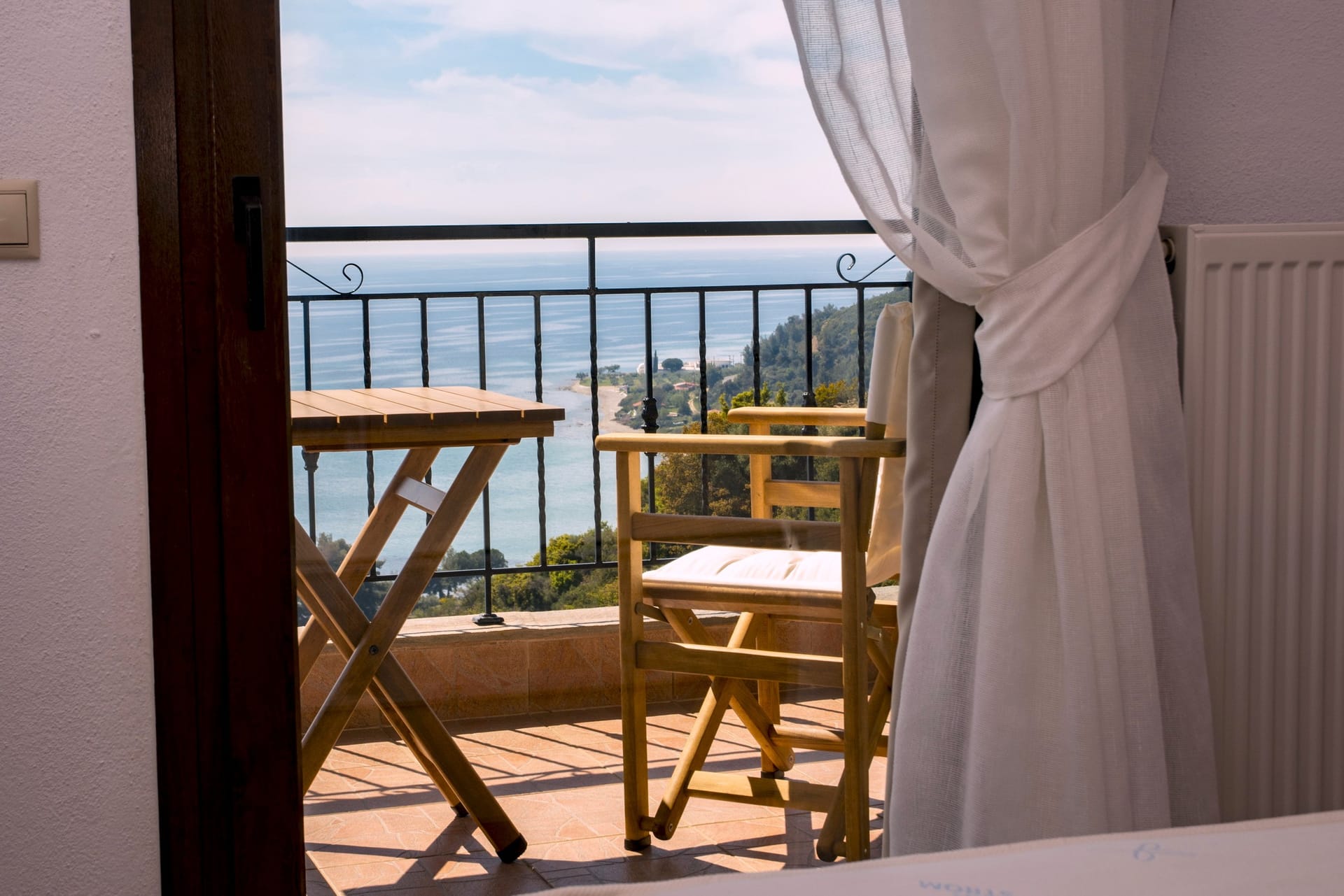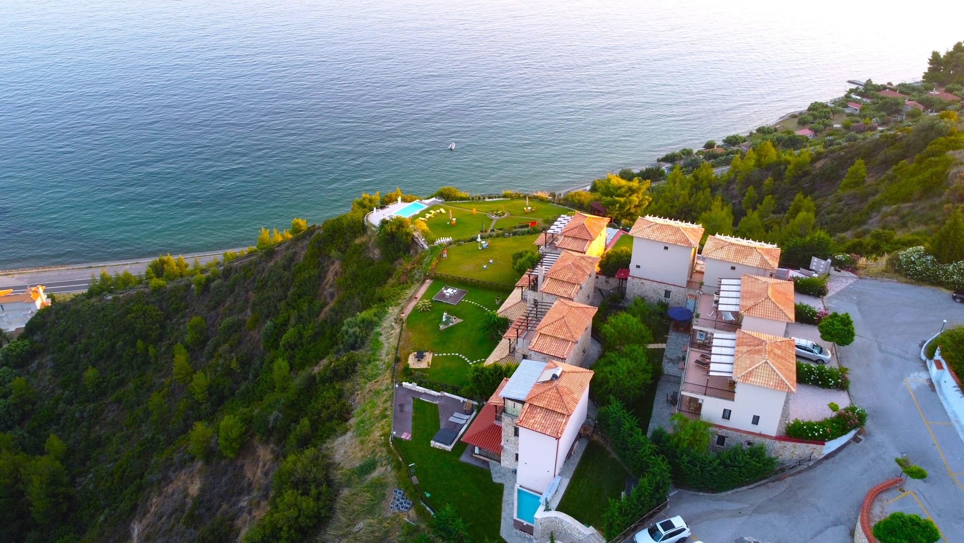 the villas are located on a hill in front and above the sea, offering its guests a unique view to the Aegean sea and to a unique sunset, Koumaros Villas complex consists of independent-autonomous villas, in a surface area from 500 to 1.200 square meters, offering fully furnished houses with two or three bedrooms from 4 up to 9 persons ,private garden/plot & parking, quality full equipment, kitchen, a/c, tv in all rooms, free wi-fi, daily cleaning service, reception desk, up on request laundry-breakfast-all day dining menu, airport shuttle etc.. all villas have a panoramic view to the sea with an orientation to the southwest towards the Aegean Sea