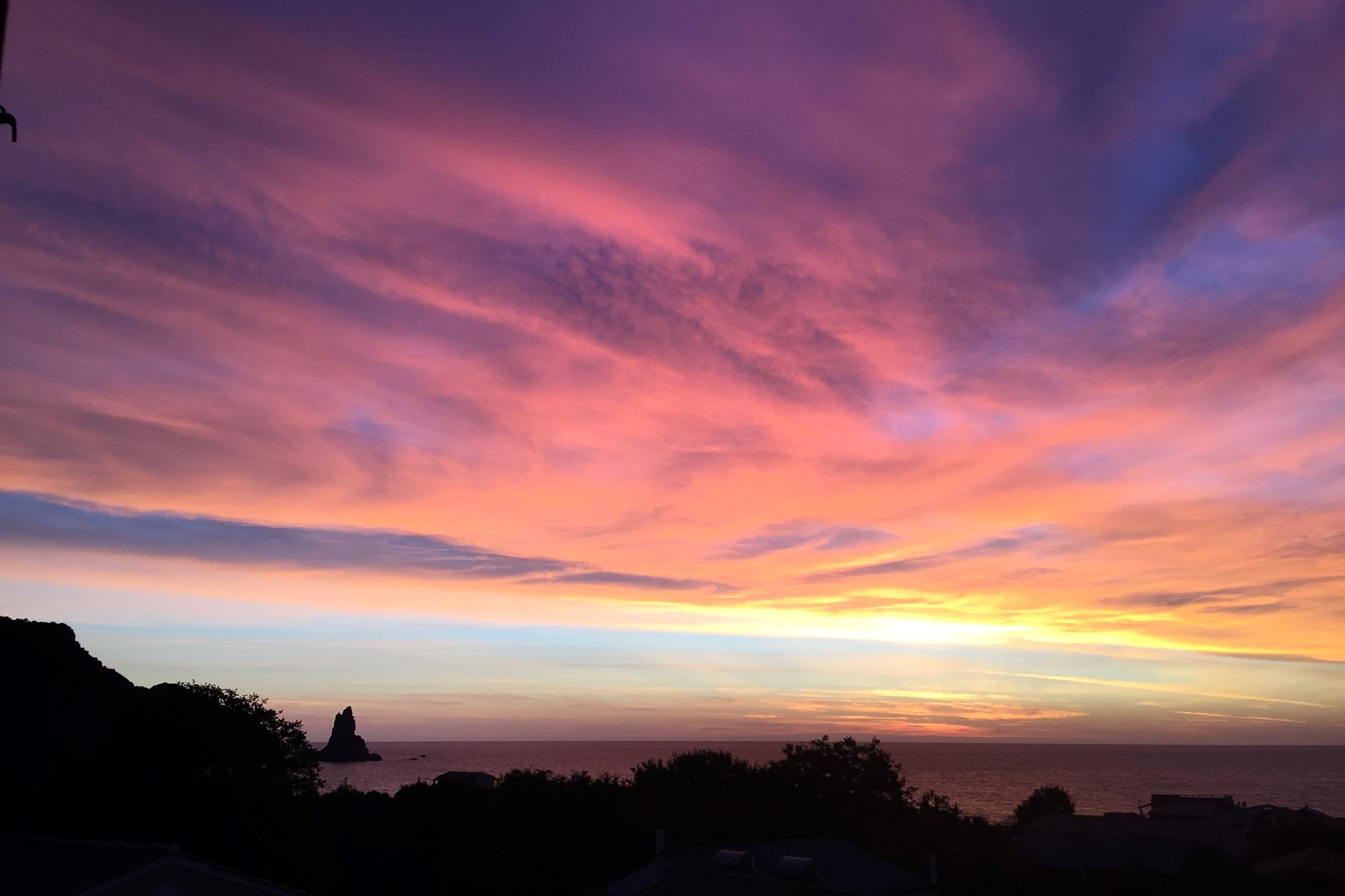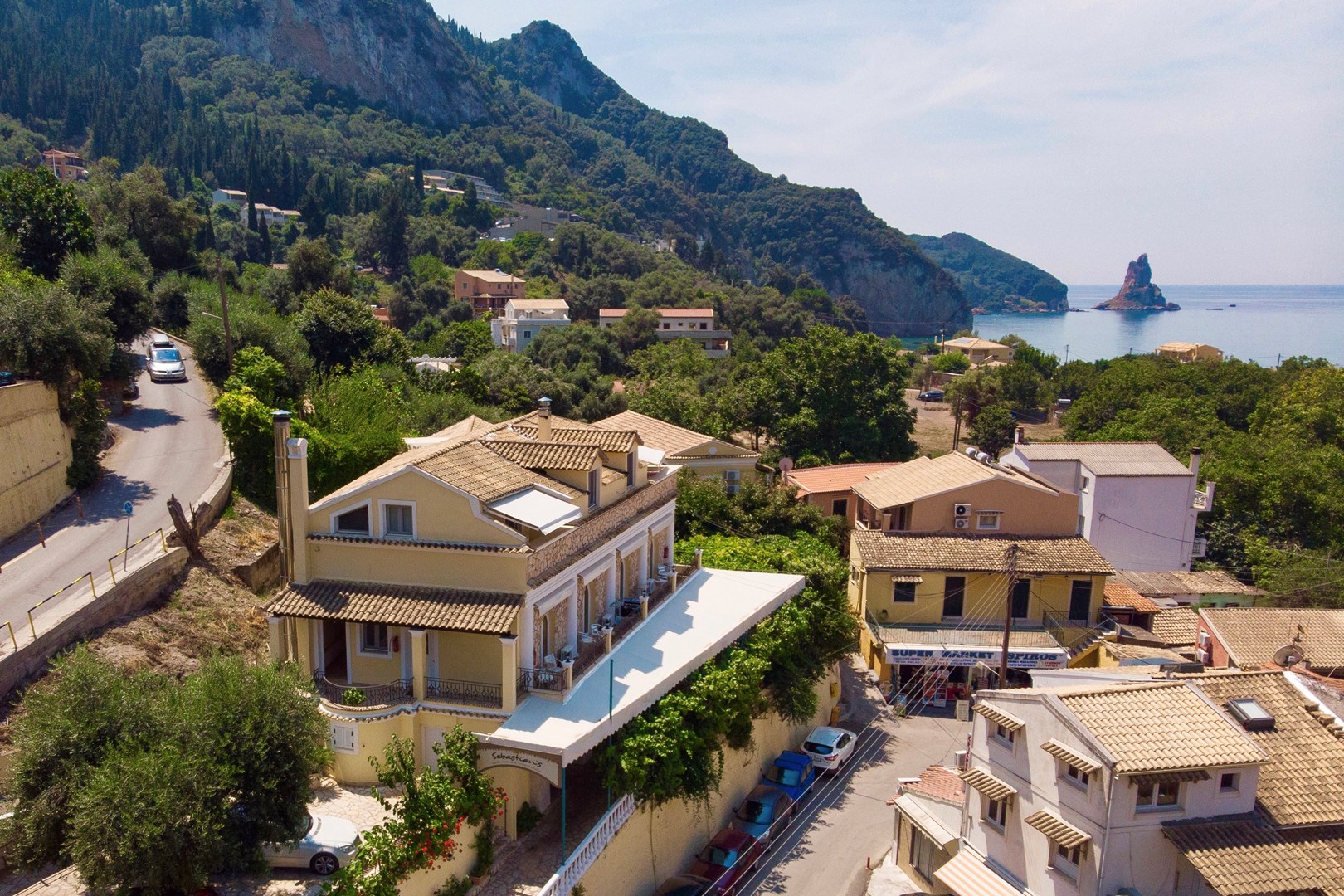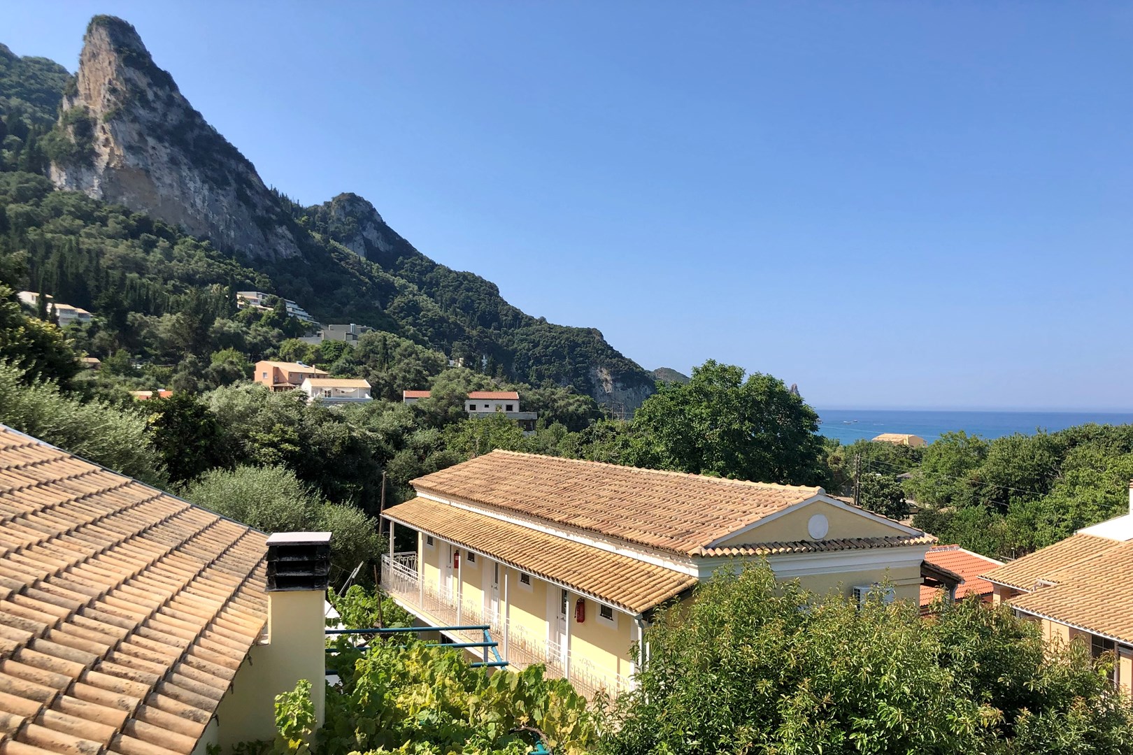 Our location is in Agios Gordios, a small coastal village on the western side of Corfu, a short distance from the airport and main port. Green mountains, the most gorgeous aquamarine bay, and some of the best sunsets in the world.