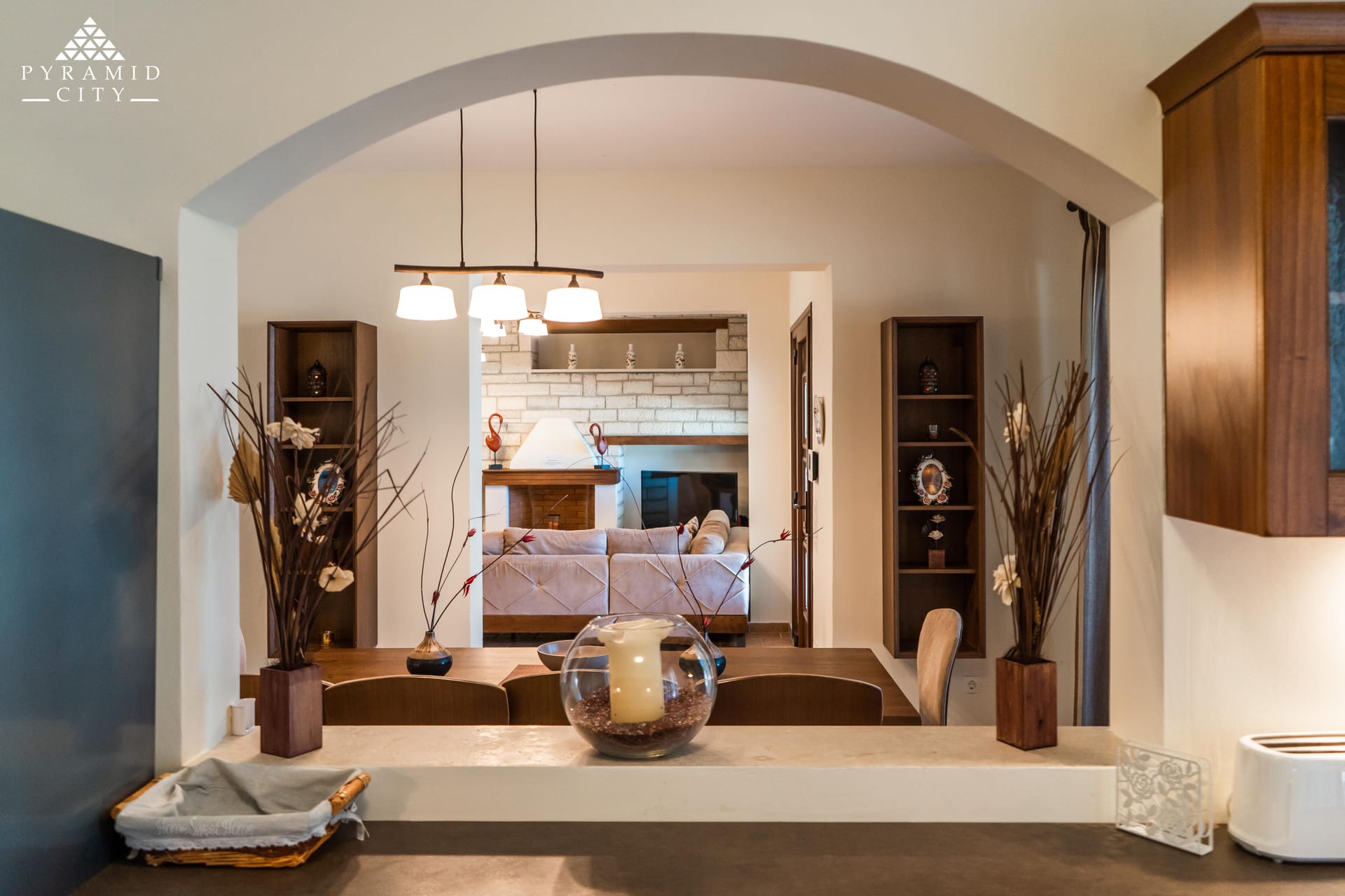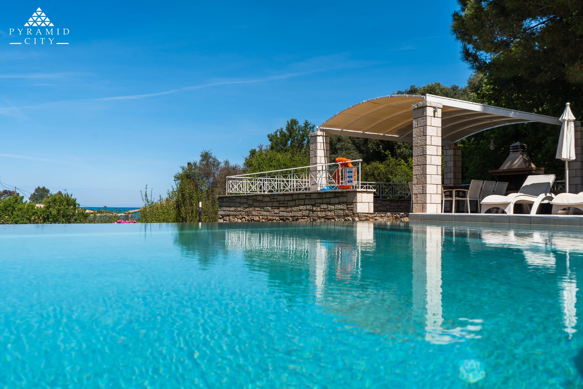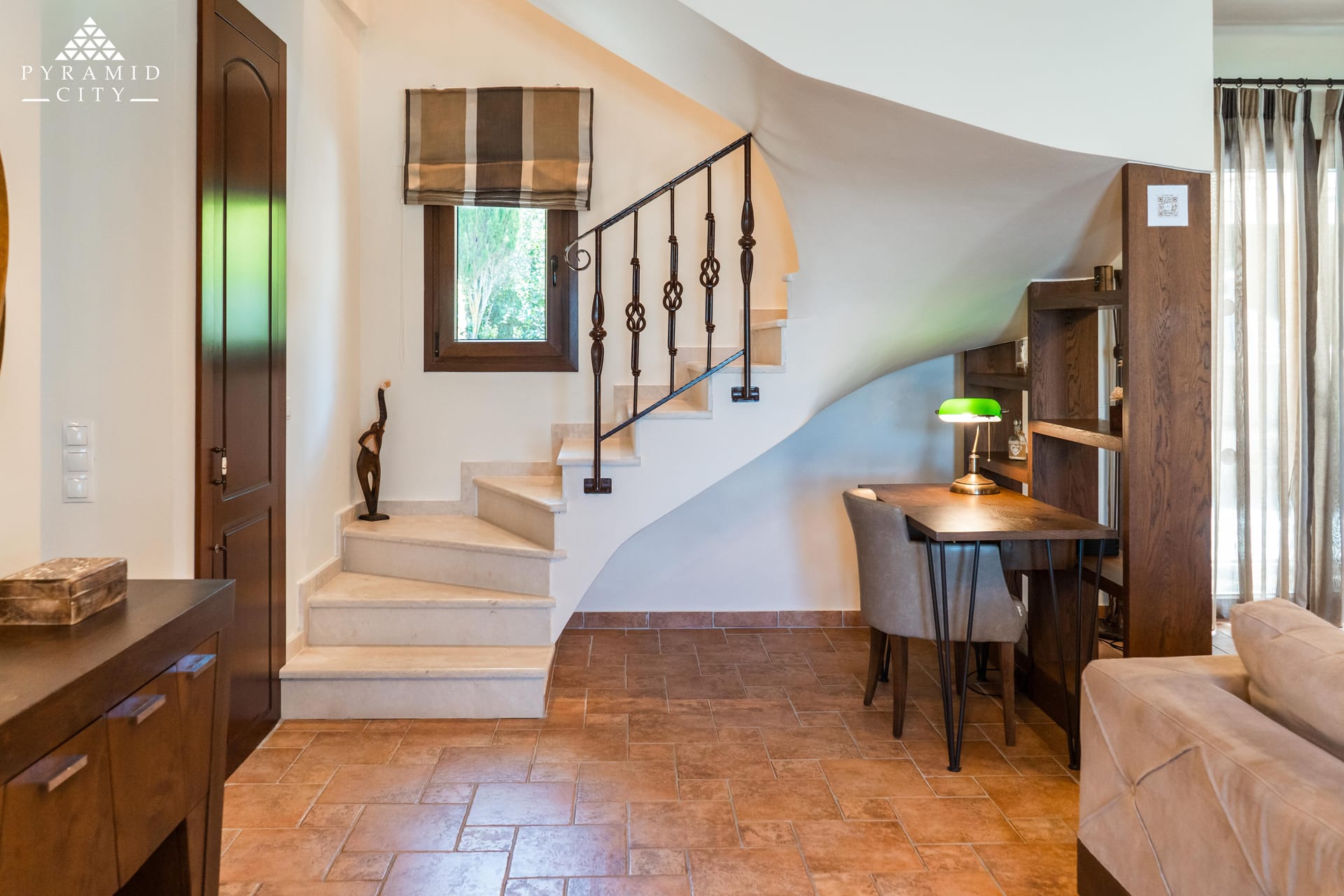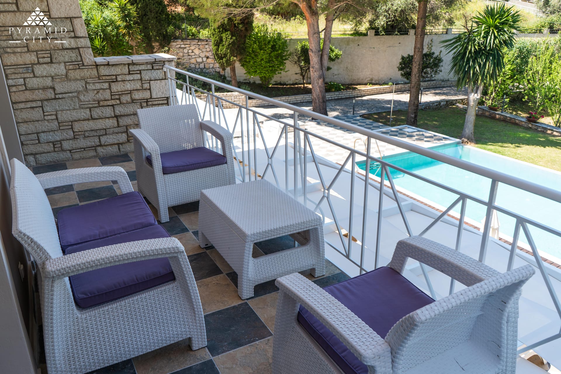 Villa Jupiter is surrounded by dense pine forest and a colorful garden that spreads over mainly on one level, in a chessboard kind of style, featuring beautifully landscaped outdoor spaces, such as a dining area to enjoy your meals while overlooking the unique beauty of the Ionian Sea, a swimming pool with loungers and parasols for all-day relaxation, a ping pong table for fun games, and a portable basket for endless shots.