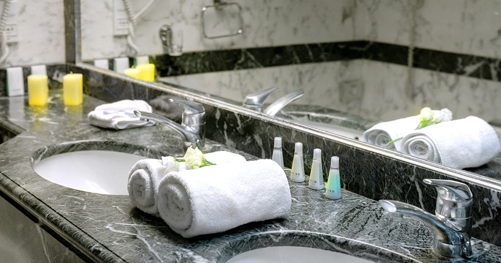 rooms, including superior rooms and suites, all of them decorated with marble
