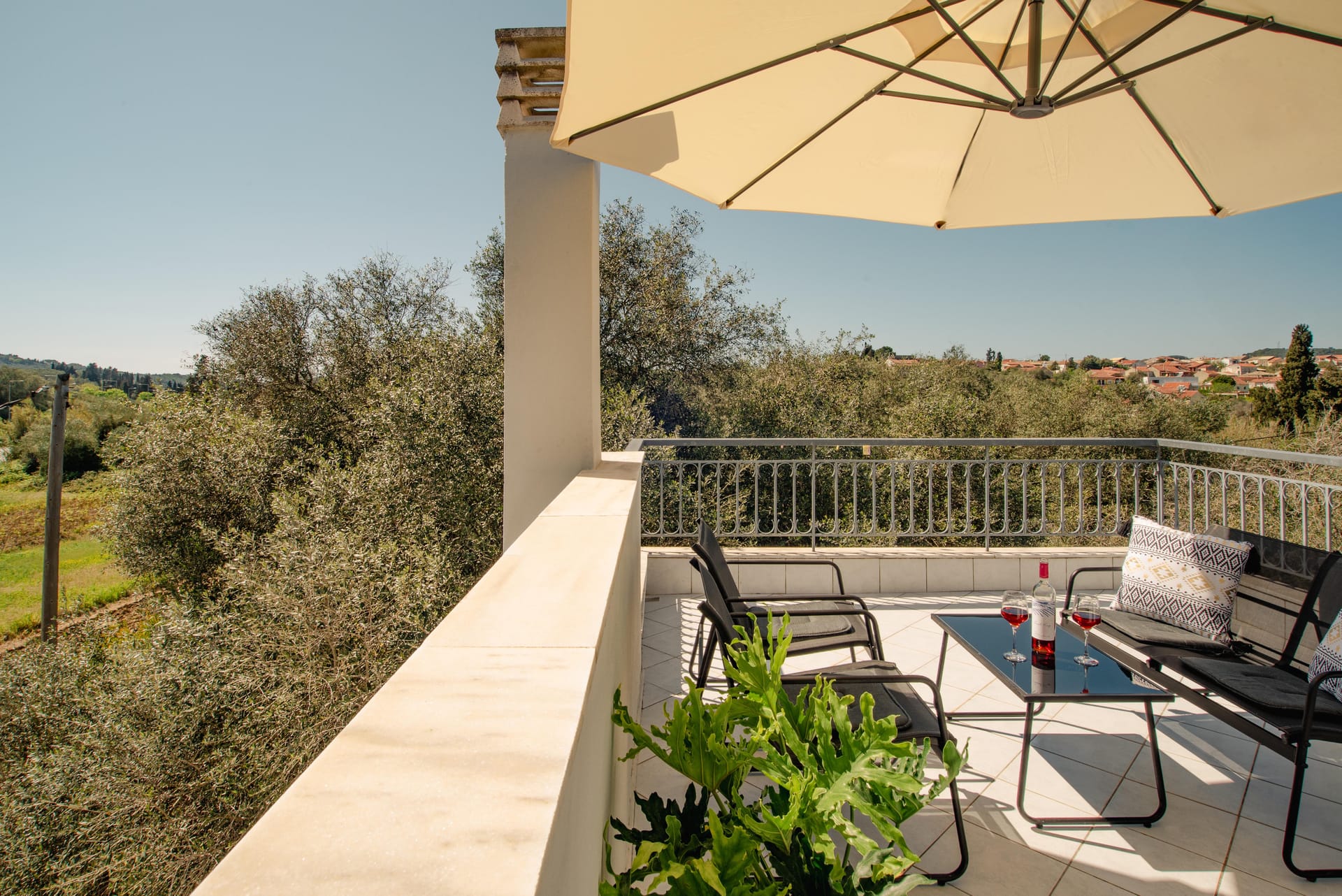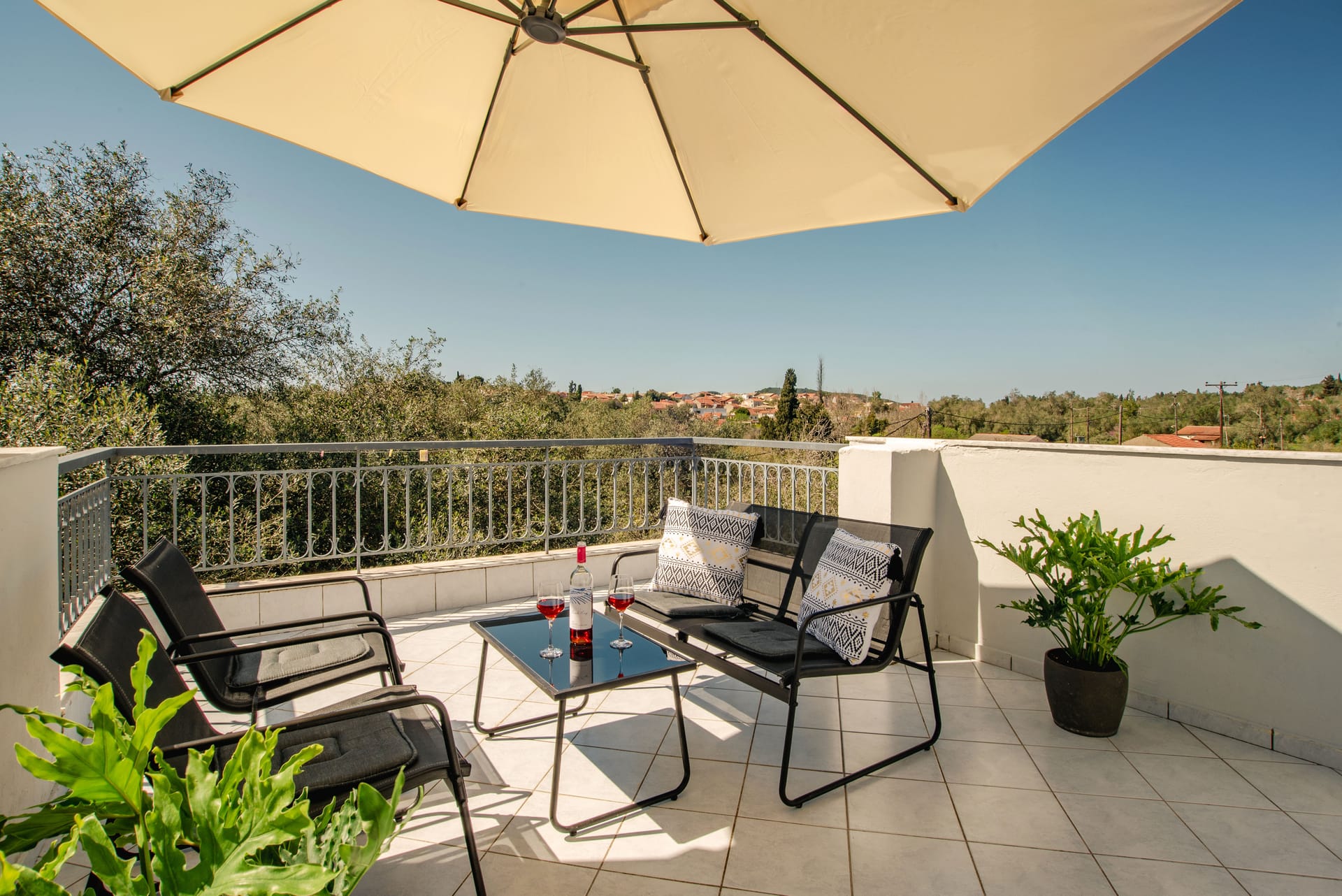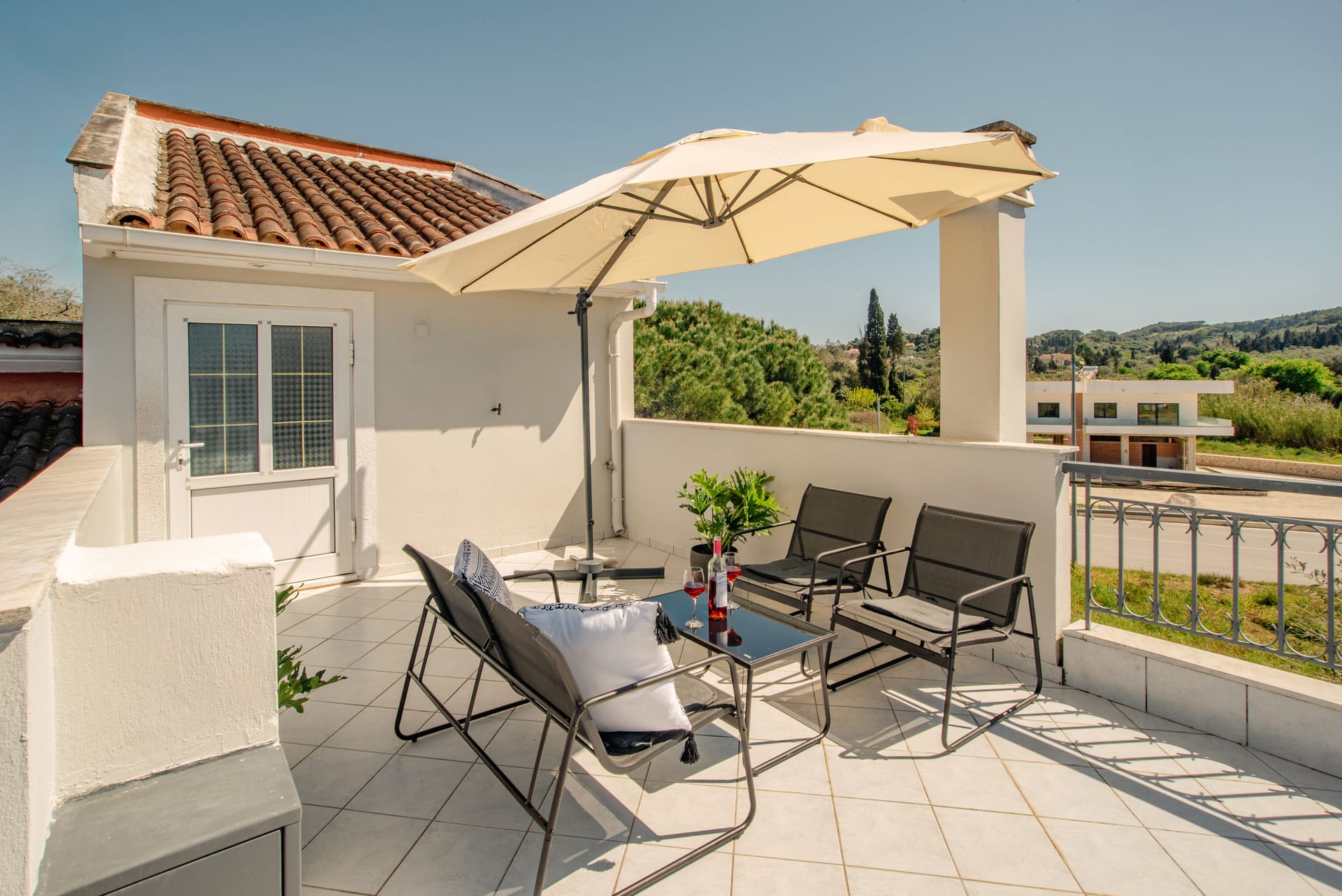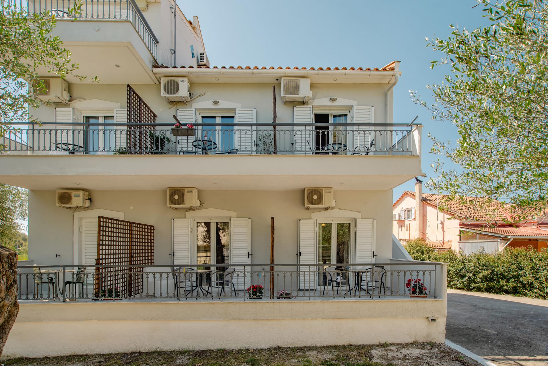 Fiore Azzurro is situated in the beautiful village of Agios Gordios on the west coast of the island of Corfu. The village is about 15 kilometers from the airport, a half hour taxi ride through the countryside. A regular bus service also operates between the village and Corfu town. Agios Gordios is a friendly village with one of the best sandy beaches in Corfu. There are supermarkets, good tavernas and restaurants and tourist shops for anyone who likes to browse and find souvenirs of their holiday.