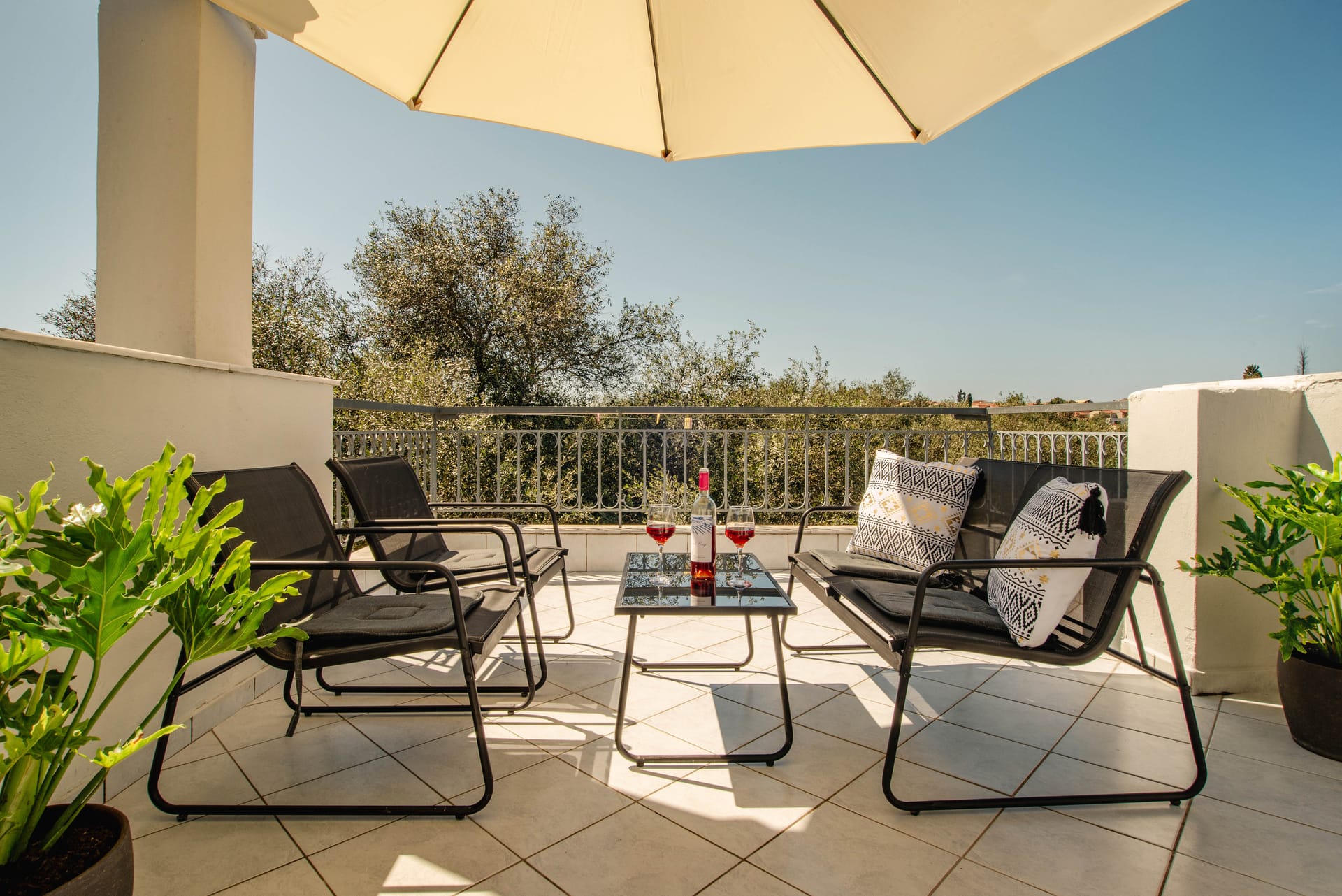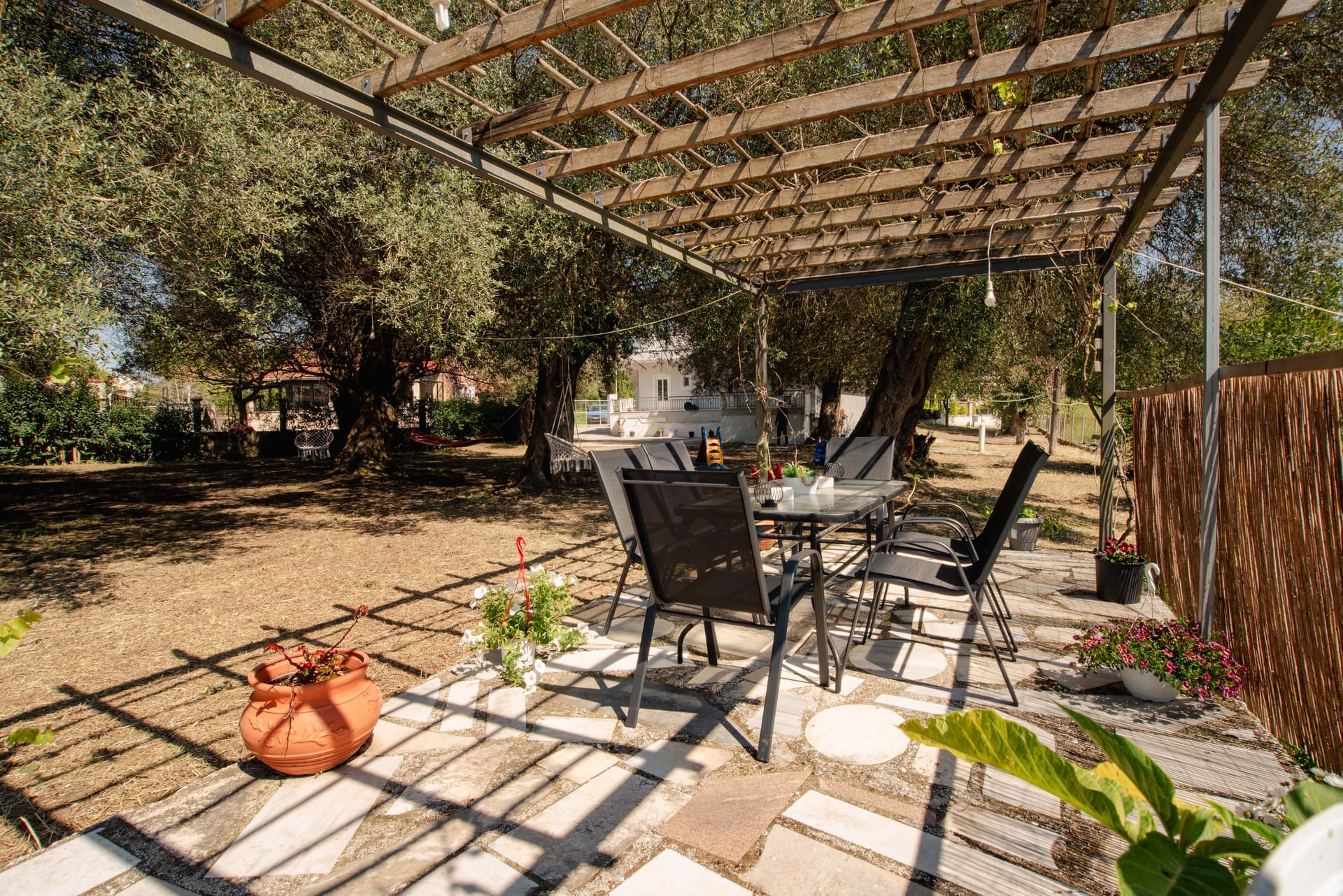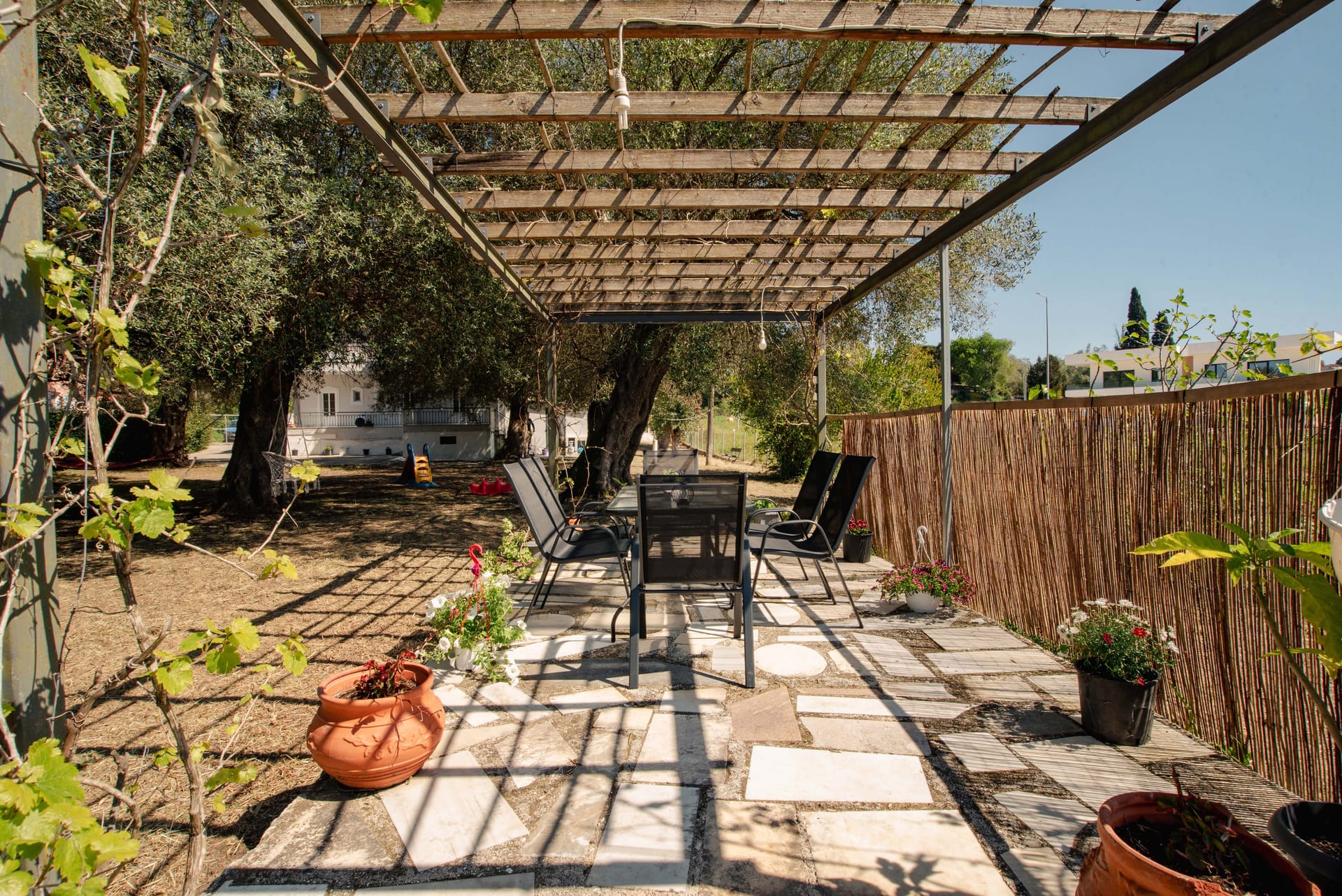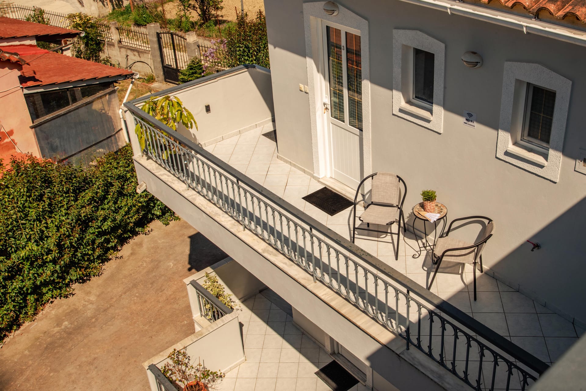 Fiore Azzurro is situated in the beautiful village of Agios Gordios on the west coast of the island of Corfu. The village is about 15 kilometers from the airport, a half hour taxi ride through the countryside. A regular bus service also operates between the village and Corfu town. Agios Gordios is a friendly village with one of the best sandy beaches in Corfu. There are supermarkets, good tavernas and restaurants and tourist shops for anyone who likes to browse and find souvenirs of their holiday.