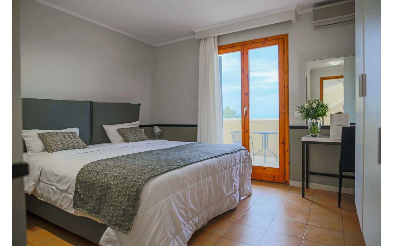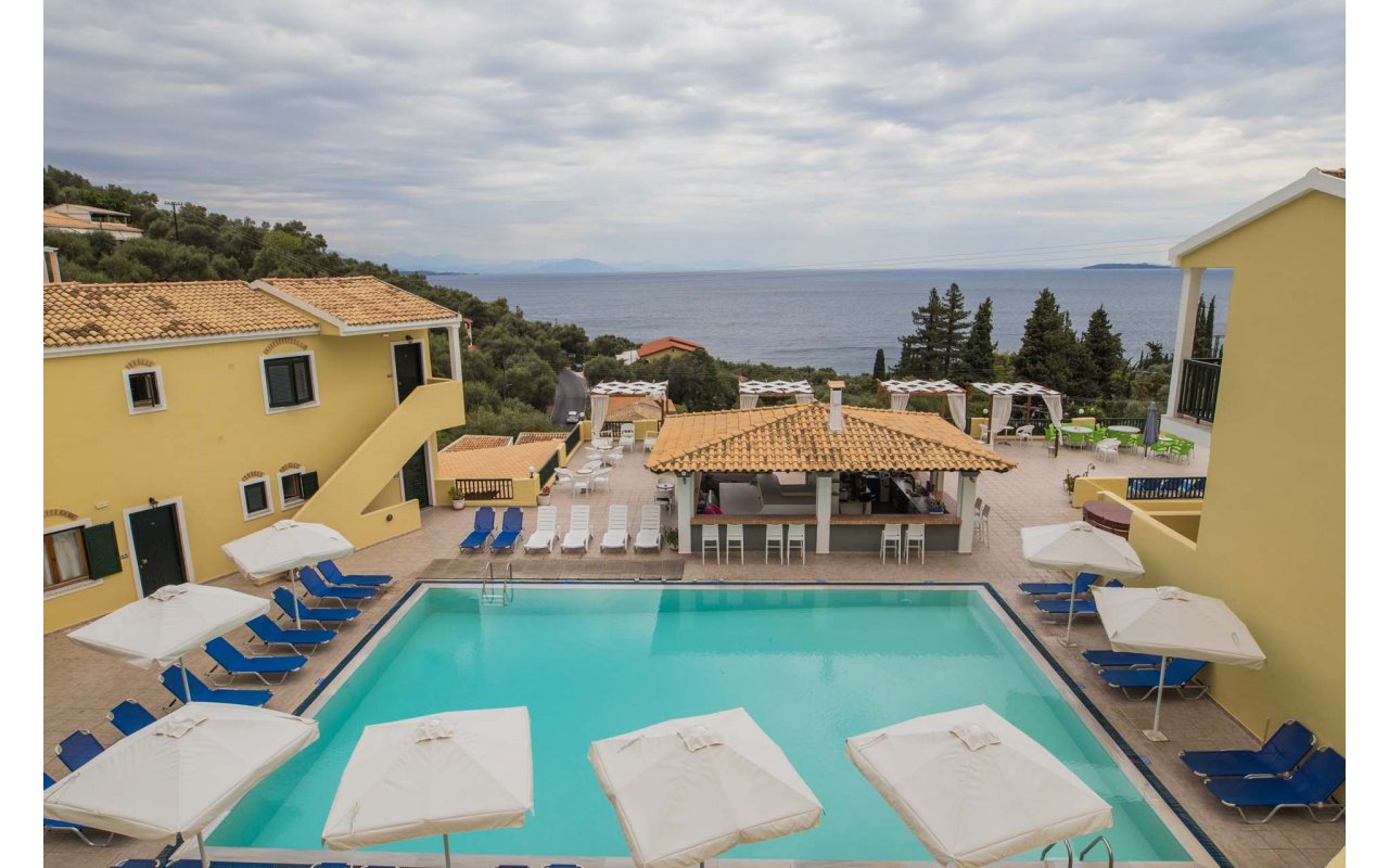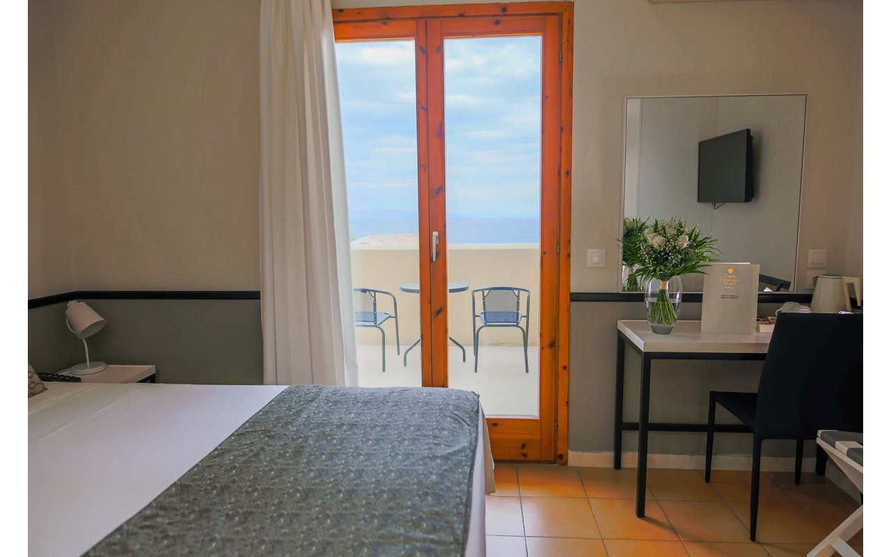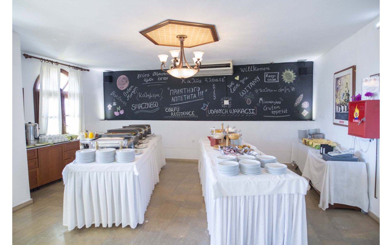 Corfu Residence lies amphitheatrically on the North-Eastern part of the beautiful island of Corfu, in the area of Nissaki, 23.5 km from Corfu Town. The nearest beach – Nissaki - is within walking distance. The hotel has a total of 100 rooms. The property offers a choice of Double Rooms and One and Two Bedroom Apartments, presented in either garden or sea view styles. Whichever you choose, your room will come with an en-suite bathroom and hairdryer, along with air conditioning, a satellite/cable TV and a direct-dial telephone. Apartments additionally feature a fully-equipped kitchen and a private balcony.