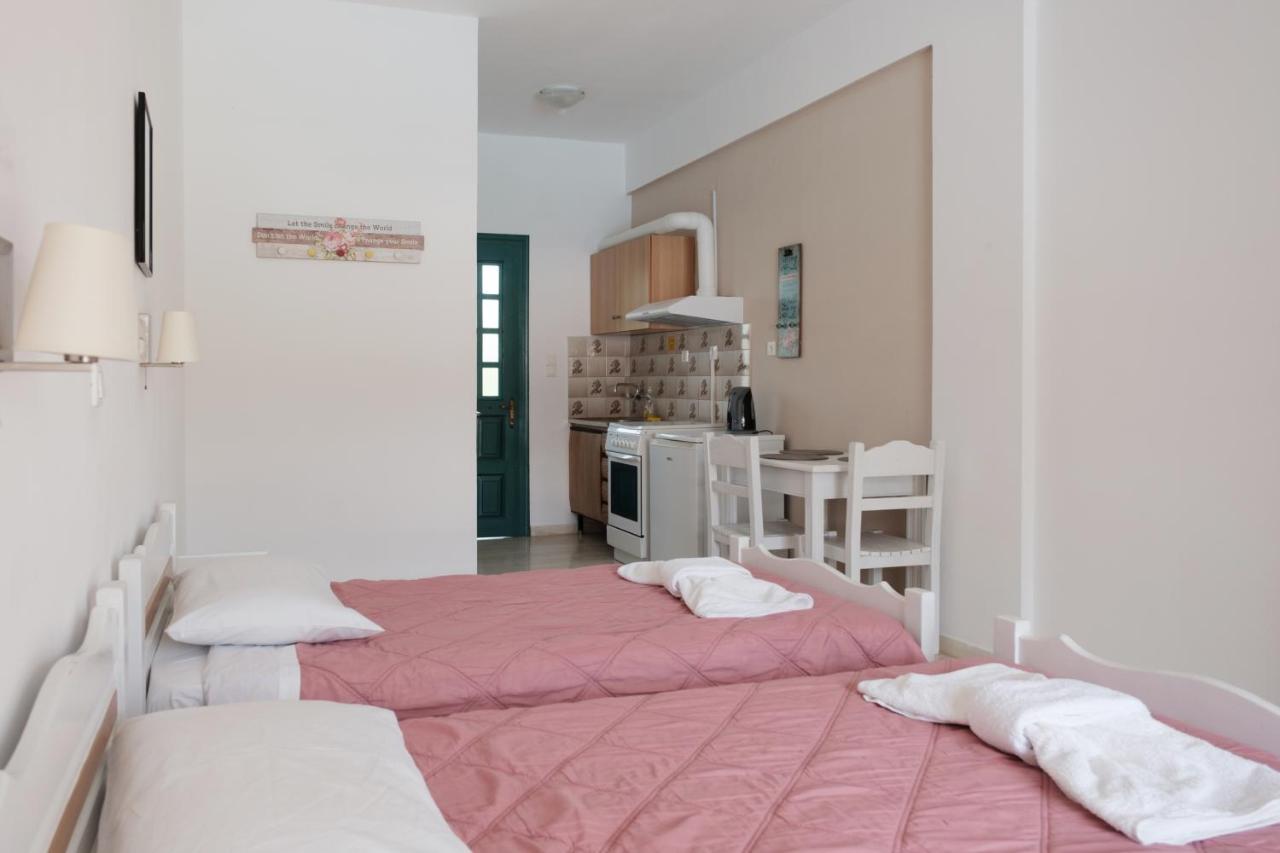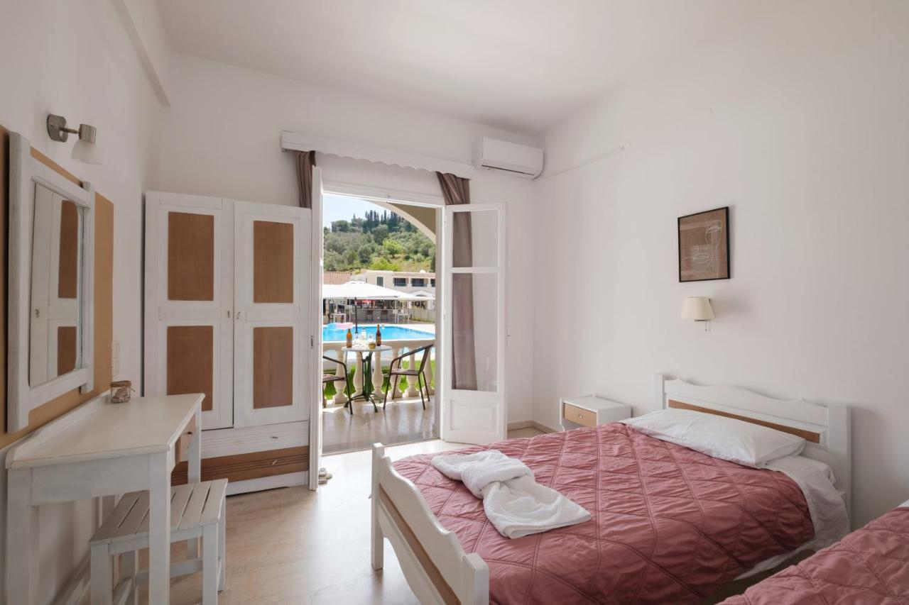 The property is situated in a quiet location on the outskirts of Sidari, an easy ten minute walk from the main street where you'll find all the bars and restaurants and about half a mile from the main Sidari resort beach; this combination makes the location ideal, as it is just a few steps from the nightlife yet away from its hustle. Sidari is a popular beach resort and is home to plenty of traditional and English style bars and restaurants. Katsaros has its own swimming pool with children's pool, well maintained gardens, a sun terrace furnished with loungers and parasols and a poolside bar serving drinks, snacks & local dishes all day long. Rooms can be air conditioned (supplement payable locally) and have a kitchenette, fridge and en-suite facilities. It appeals to couples and families looking for simple accommodation with a relaxed atmosphere from which to enjoy a holiday in Sidari.