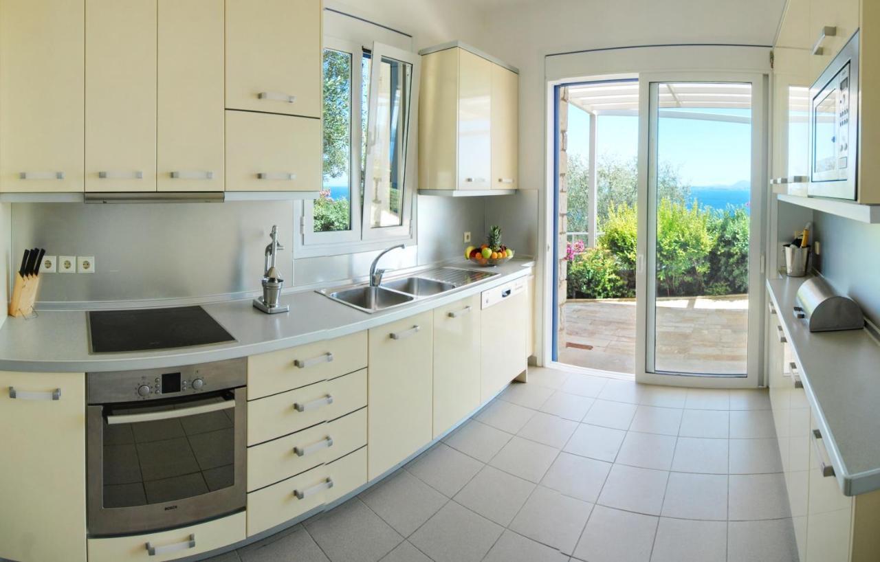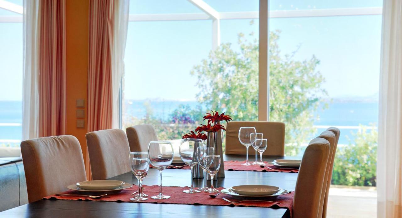 Corfu Luxury Villas promise to turn your holiday into an unforgettable experience. Situated at Prinias district, right between two popular tourist destinations, Ipsos and Barbati, they are 16 klm. far away from Corfu town and 18 klm. from the international airport “Ioannis Kapodistrias”. The area of Prinias offers serenity and natural beauty while harmonically combining the deep blue of the sea with the extraordinary red-white of the rocky surroundings. The slope where the luxury villas are built, offers a breathtaking view, with crystal-clear blue water lying straight ahead and nothing to block your sight for as far as the town of Corfu. Furthermore, the villas offer a virtually private beach, since the sublying bay is otherwise accessible only by sea! In addition, each one of the villas has its own swimming pool and a large slab-stoned yard, “coloured” with beautiful flowers.