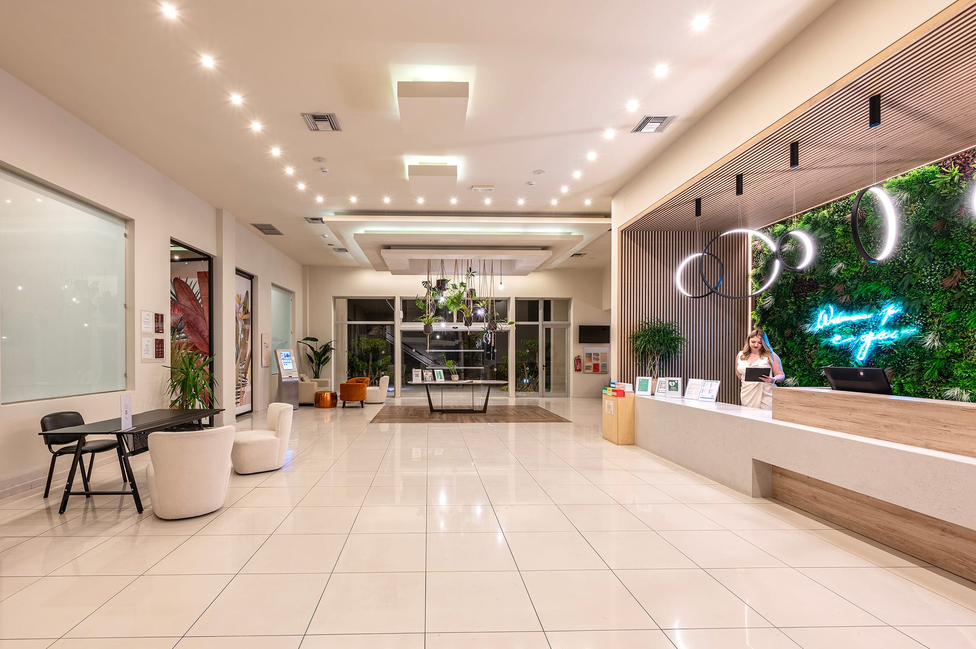 Experience the perfect getaway at Akti Coast Club, located on the beautiful island of Kos. Surrounded by green gardens covering 52 out of 65 acres, our resort provides a welcoming and comfortable environment for relaxation. Ideally situated just 12 kilometers from Kos International Airport and 15 kilometers from the vibrant town of Kos, the resort features 341 modern and comfortable rooms with views of the lush gardens and sparkling pools.