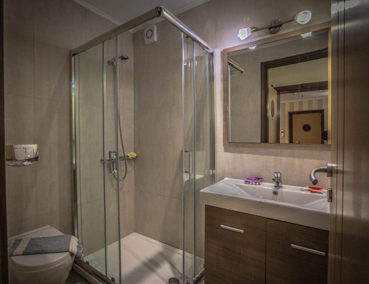 Air conditioning and central heating ensure that rooms maintain comfortable temperatures. Guests can enjoy the sea view from a balcony or terrace. The rooms have a double bed and a sofa bed. Separate bedrooms are available. Children's beds and extra beds can be requested for younger guests. A safe provides secure storage for guests' personal property. The kitchenette comes with a refrigerator and a tea/coffee station. A telephone, a TV, a radio and WiFi (no extra charge) are provided as well. Bathrooms are equipped with a shower and a bathtub, as well as a hairdryer. The hotel has family rooms and non-smoking rooms.