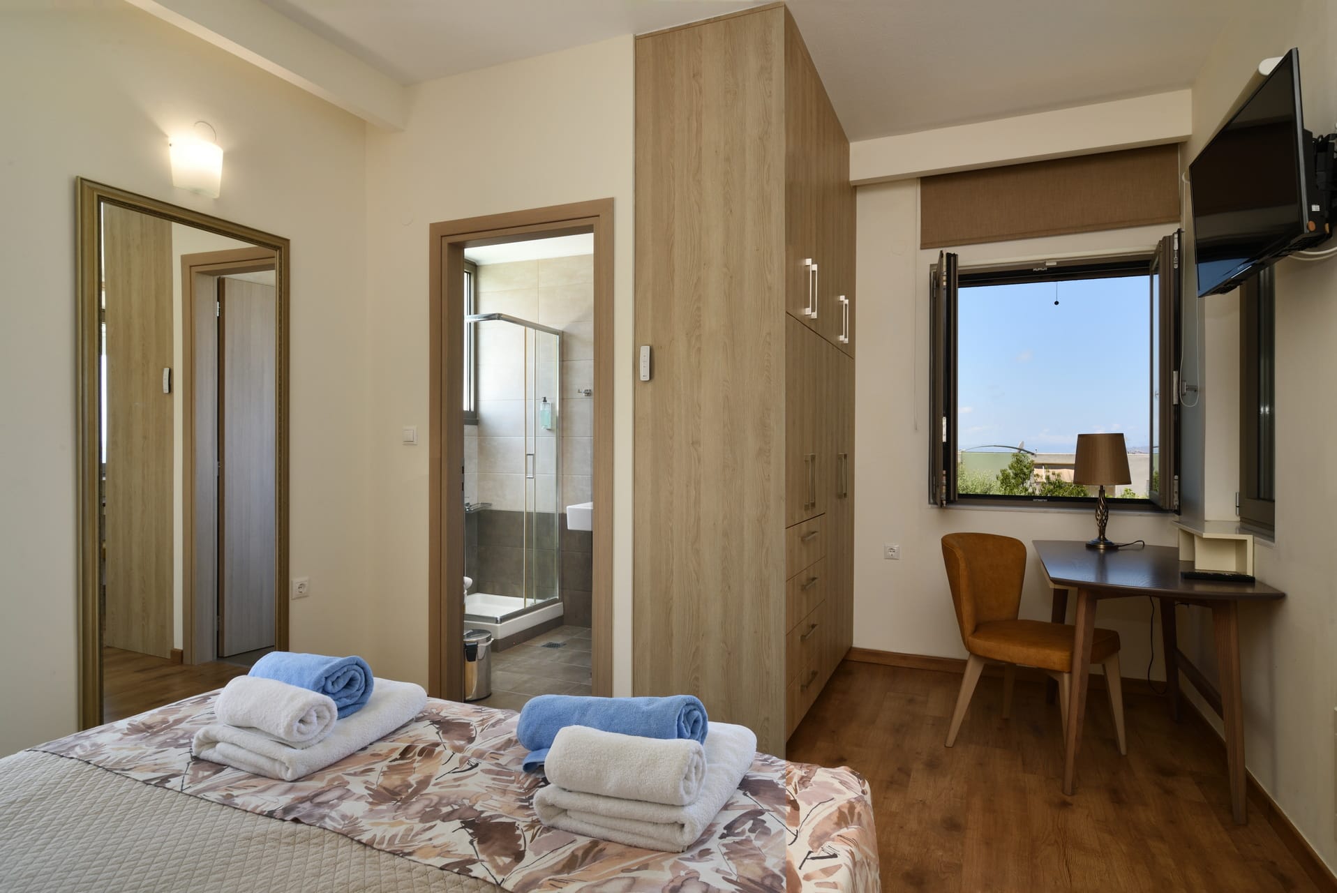 Luxury villa in Chania Crete Breeze located Just 3.7 kilometers away from the city of Chania, the villa is located in a prominent position with a panoramic view. The airport is located only 11.4 km away and the port of Souda is 6.7 km away. All places to do you’re shopping, such as the supermarket at 600 meters distance is almost next to the villa. In addition, the place with the most amazing view, the tombs of the Venizelos family in Profitis Ilias, is at a small distance of 2.8 km, so do not miss the chance! You can enjoy your ice-cream or coffee in the wider area.