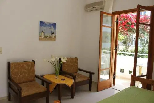 Location: This apartment hotel is located in Rethymnon. Facilities: The friendly staff at the reception desk are happy to answer any questions. To ensure guests a comfortable and relaxing stay, the hotel provides various services and facilities, including a safe, medical assistance, a fax machine and a smoke alarm. Wireless internet access allows guests to stay connected while on holiday. A garden provides extra space for rest and relaxation in the open air. Rooms: Air conditioning and central heating ensure that rooms maintain comfortable temperatures. Guests can enjoy the garden view from a balcony or terrace. Rooms include a sofa bed. Extra beds can be requested. A safe provides secure storage for guests' personal property. A kitchenette with a refrigerator, a microwave and a tea/coffee station is also provided as standard. A tumble dryer is provided for guests' convenience. A flatscreen television, a plug adapter and WiFi (no extra charge) are provided as well. Bathrooms are equipped with a shower and a hairdryer. Cosmetic products and a selection of towels provide additional comfort in the bathrooms. The hotel has family rooms and non-smoking rooms. Sports/Entertainment: A sun terrace is a great place to while away the hours. Copyright GIATA 2004 - 2025. Multilingual, powered by www.giata.com for client no. 125352