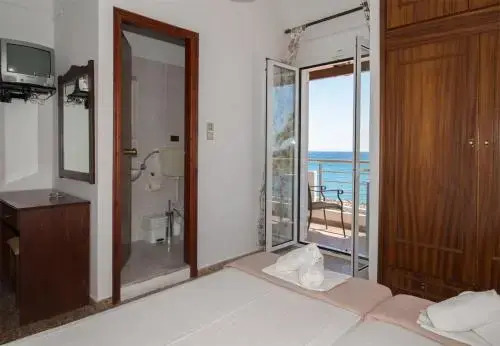 Location: This hotel welcomes guests in Palaiochora. Facilities: English- and French-speaking staff are happy to assist and advise. Services and facilities include a safe and a fax machine. Wireless internet access in public areas allows guests to stay connected. Guests arriving by car can park their vehicles in the car park for no extra charge. Rooms: Air conditioning ensures that rooms maintain just the right temperature. Guests can relax and enjoy the sea views from the balcony or private terrace of some rooms. Rooms have a double bed or a sofa bed. Valuables can be securely stored in a safe. Additional features include a refrigerator and a tea/coffee station. Satellite television and WiFi (no extra charge) provide all the essentials for a comfortable holiday. A hairdryer is available in the bathrooms. The hotel has family rooms and non-smoking rooms. Sports/Entertainment: Fine weather can be enjoyed on the terrace. A wellness area with a solarium is available at the hotel. Copyright GIATA 2004 - 2025. Multilingual, powered by www.giata.com for client no. 125352 Meals: The dining area includes a restaurant and a bar.