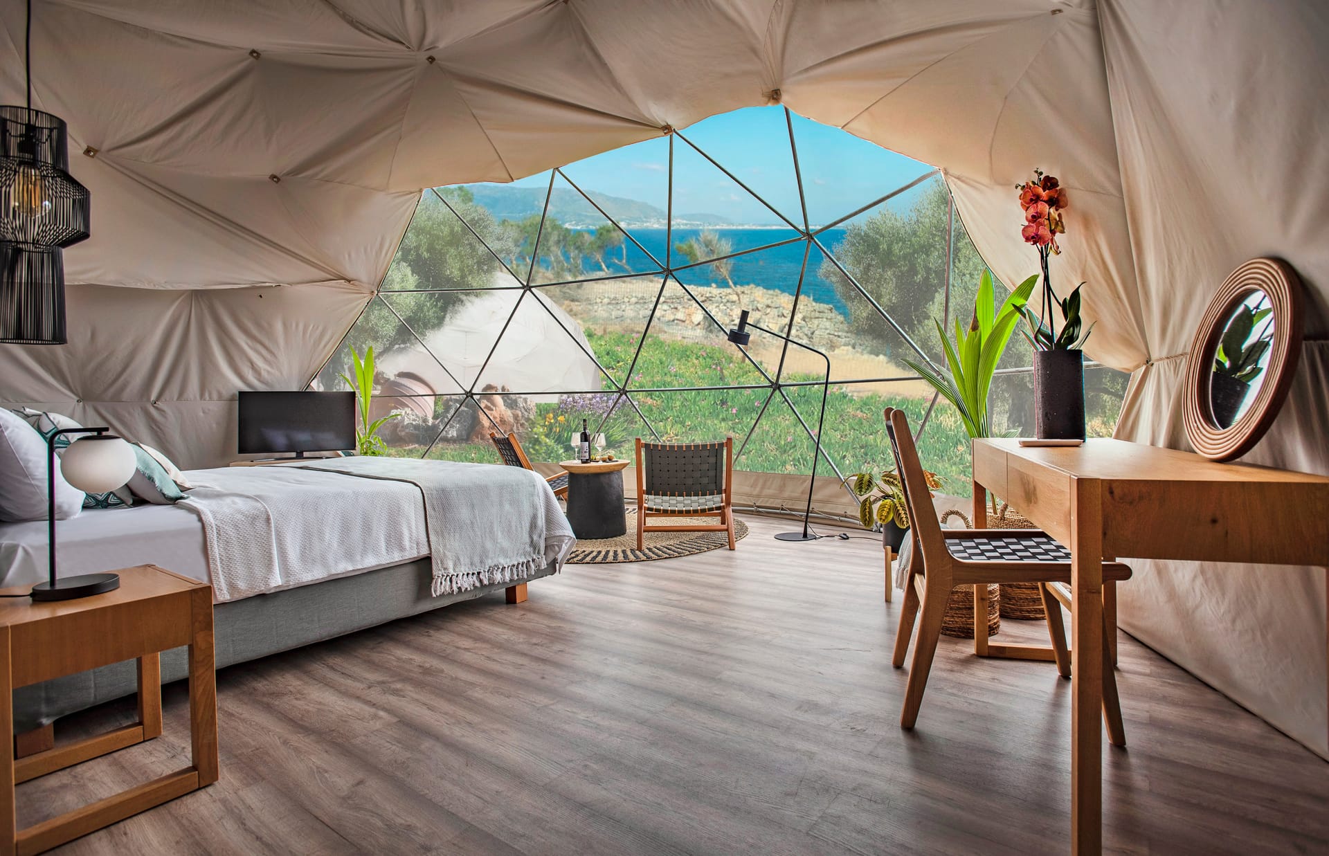 The Eco Dome Resorts, Crete is a luxury Glamping resort that combines luxurious hospitality and the Cretan nature in one, and in a sustainable eco-friendly hospitality. Our luxurious air-conditioned Domes can host 2-3 guests, all with a magnificent bayview, and with all the luxurious amenities you wish to have. Enjoy our modern Cretan a la cart menu or our healthy options next to the infinity pool, in a relaxed way to body and soul.