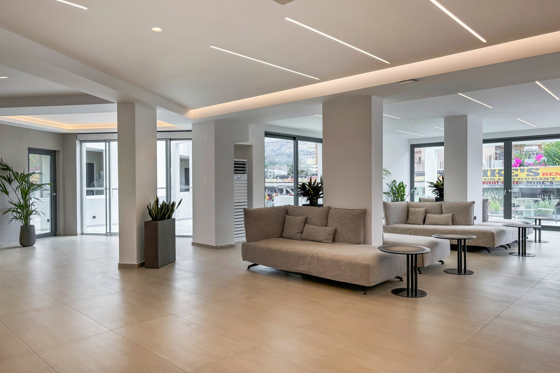The hotel is located near the sandy beach of Georgioupolis, an area with different shopping choices, restaurants, coffees etc.
