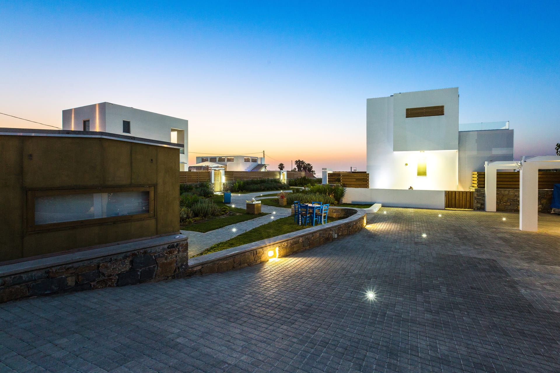 Thalasses Villas are four brand new luxurious villas located in a peaceful area of Pigianos Kampos, just a few meters away from our organised and well thought out private beach. There are two different types of villas in the complex. To the front villas “Thoi” and “Persi” which are single-storey, to the rear two-storey villas “Eeanthe” and “Melia”. All the villas have been designed to offer privacy with clear views of the sea!
