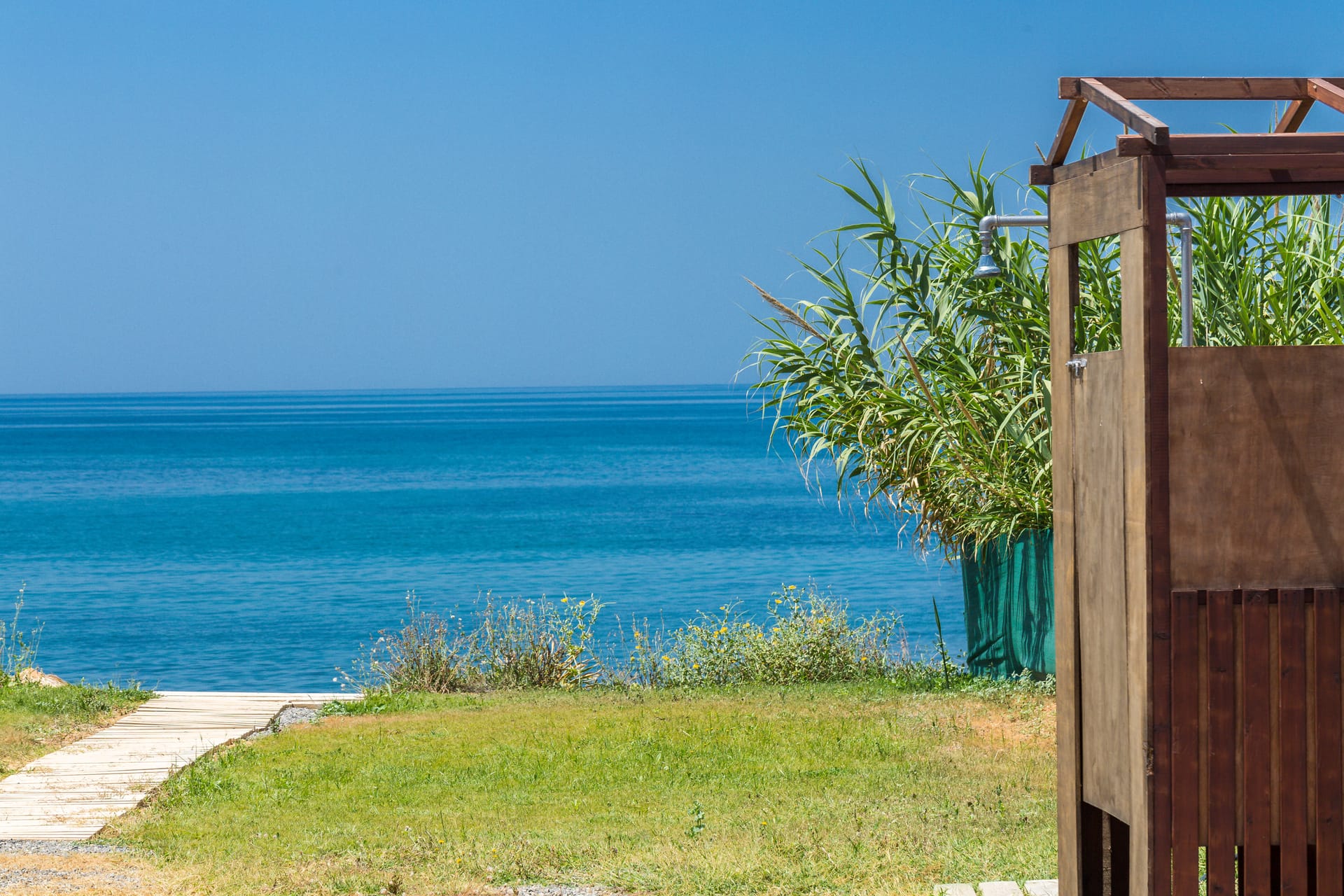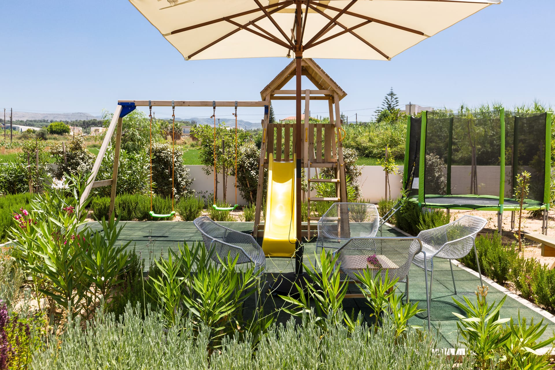 Each villa has private sun beds on the crystal clear water’s edge! There is a safe organised playground for children, plus a vegetable garden in which you can “use” with our gardener’s help and taste home grown vegetables.