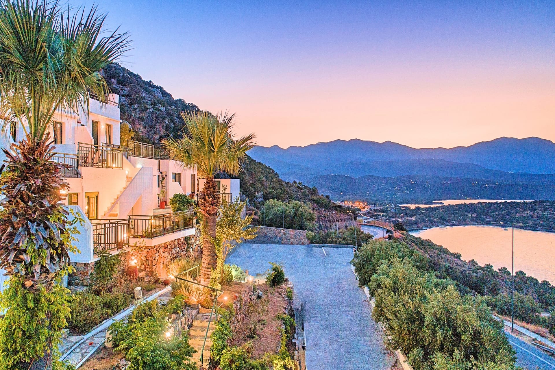 Istron Homes complex is situated on a hill slope above the main road, quiet, peaceful and with breathtaking panoramic views of the Mirabello bay and the town of Agios Nikolaos. Enjoy our beautiful landscape surrounded by rugged hills and mountains of Crete full of wild flowers, cedar trees, herbs, ideal for walking or hiking while enjoying the view of Mirabello bay.