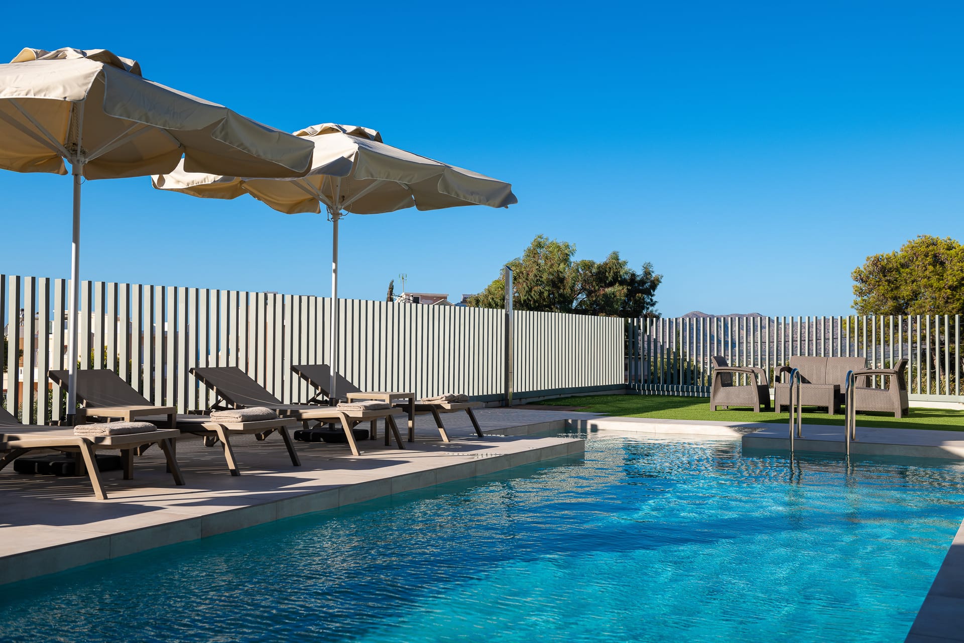 The rooms at Heliades Residence are a testament to comfort and elegance. Each room is equipped with air conditioning and the presence of a desk in every room makes it suitable for both leisure and business travelers. The highlight of the rooms is the terrace with a pool view, offering a tranquil space to unwind and soak in the sun. Every room features a private bathroom, and a flat-screen TV, and comes with bed linen and towels for extra convenience. Selected units boast sea views, adding a touch of natural splendor to your stay. Moreover, each room includes a coffee machine and a fridge, catering to the needs of guests who appreciate the comfort of in-room refreshments.