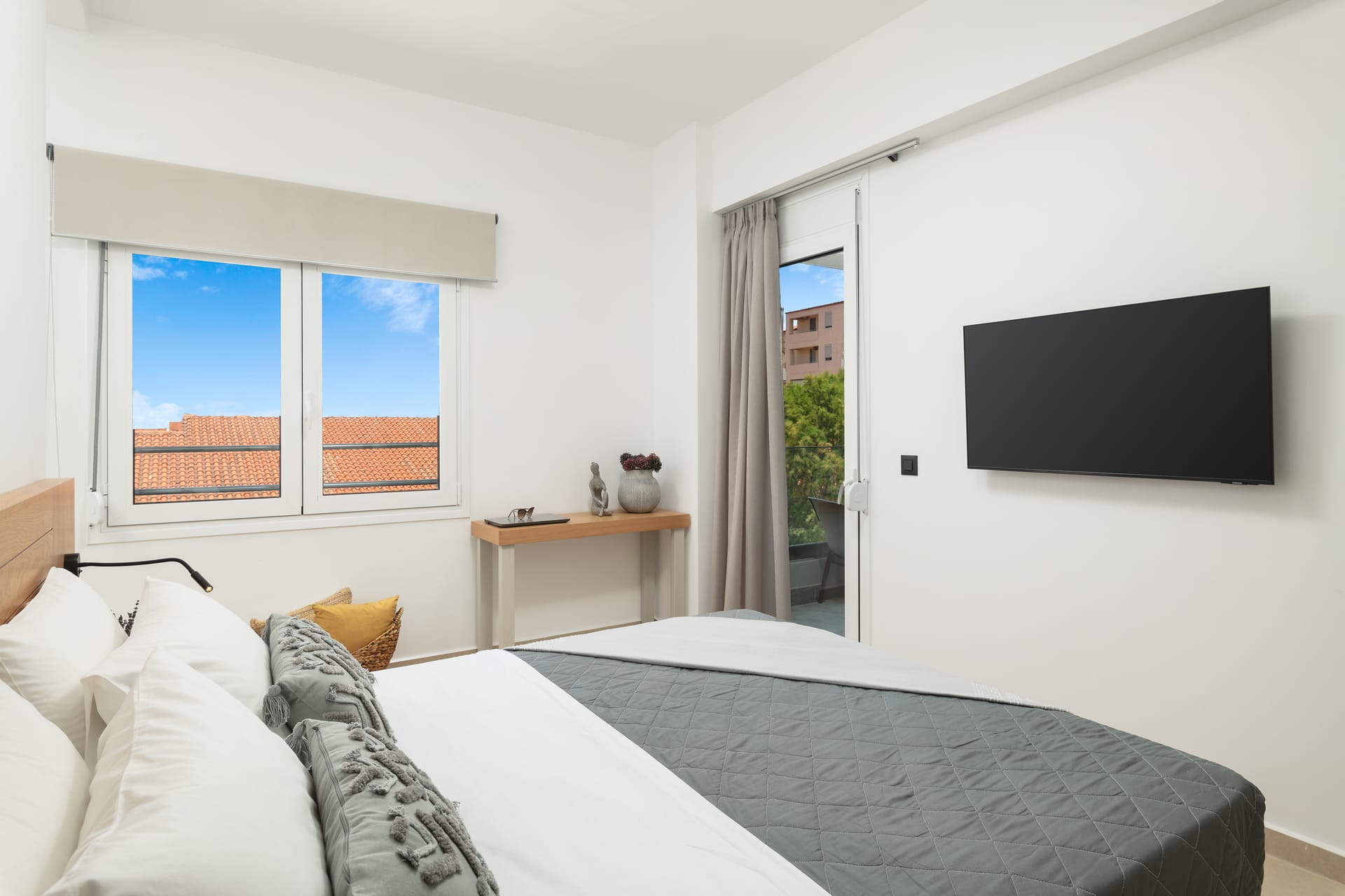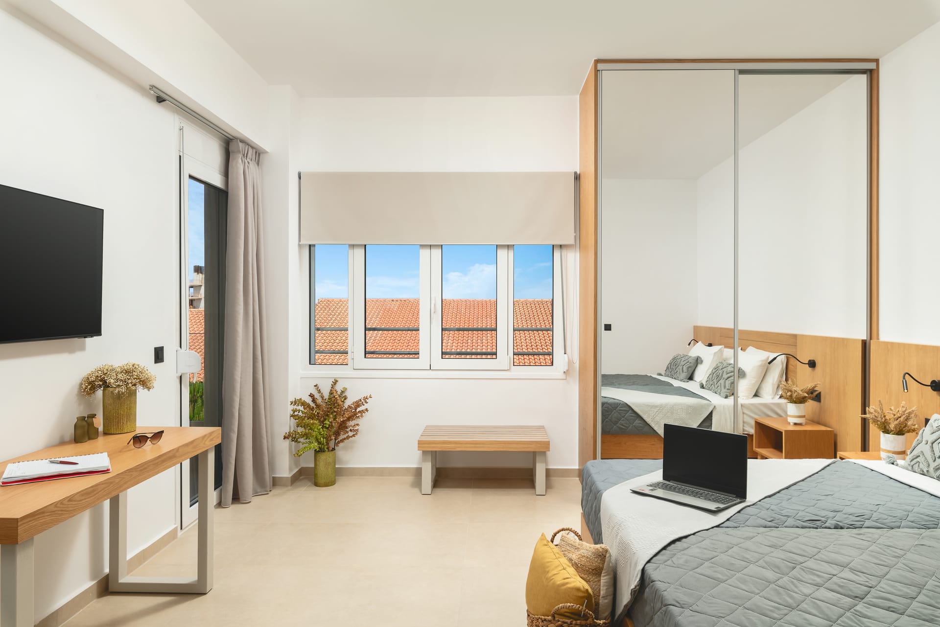 Elia City Apartments is a complex of apartments located in Chania Town, Crete, the largest island of Greece. The apartments offer a variety of amenities and services, including air conditioning, free Wi-Fi, kitchen, private bathroom, and a balcony with views of the city. Freshly renovated apartments with 1 or 2 bedrooms, big living rooms with dining rooms, fully equipped kitchens, and private bathrooms. They are on the 1st or 2nd floor of a three-level building equipped with an elevator.