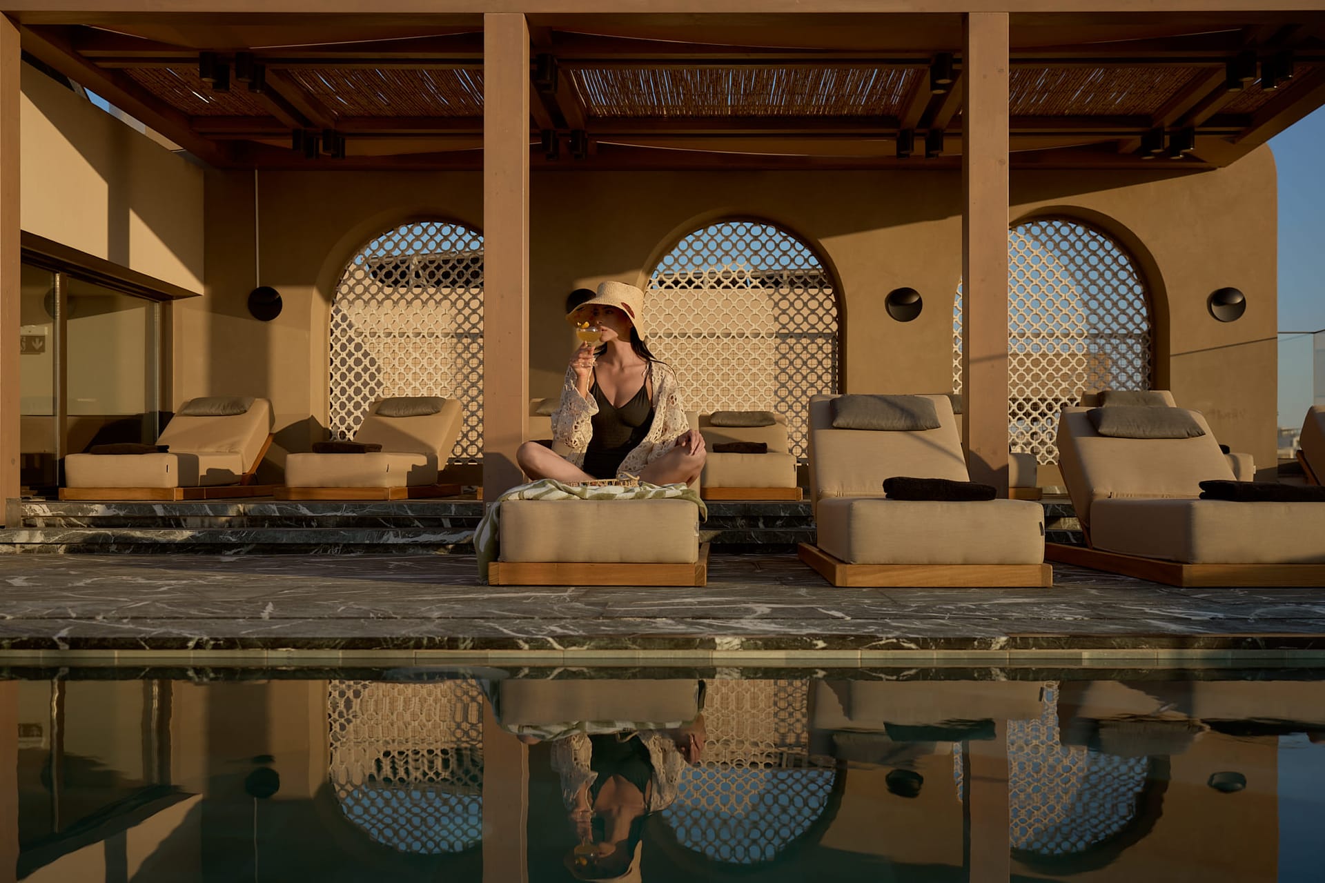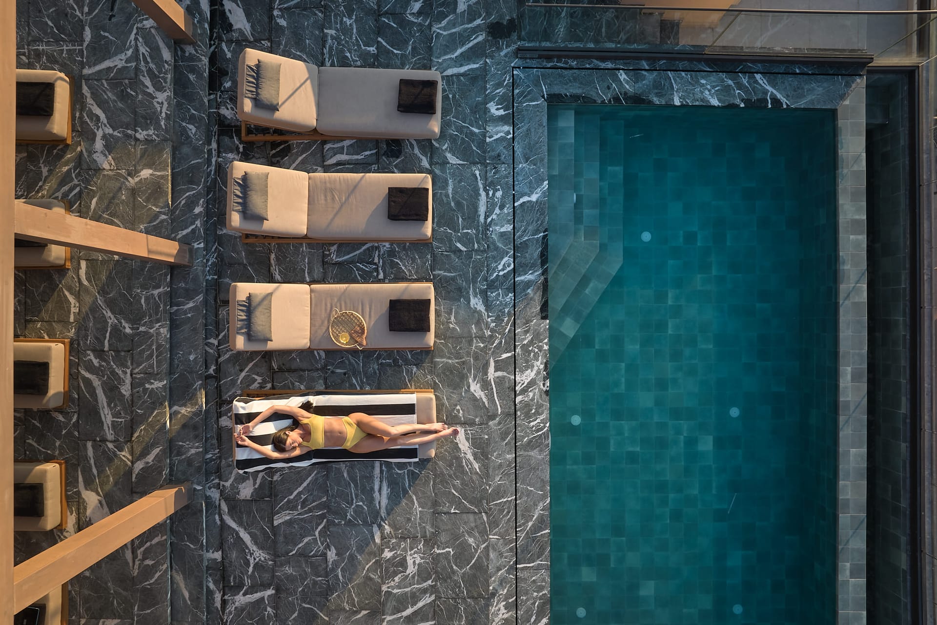 Guests can relax at Rocca Cloud, the rooftop bar, which boasts a 20-meter pool and sunbeds, or enjoy refreshing