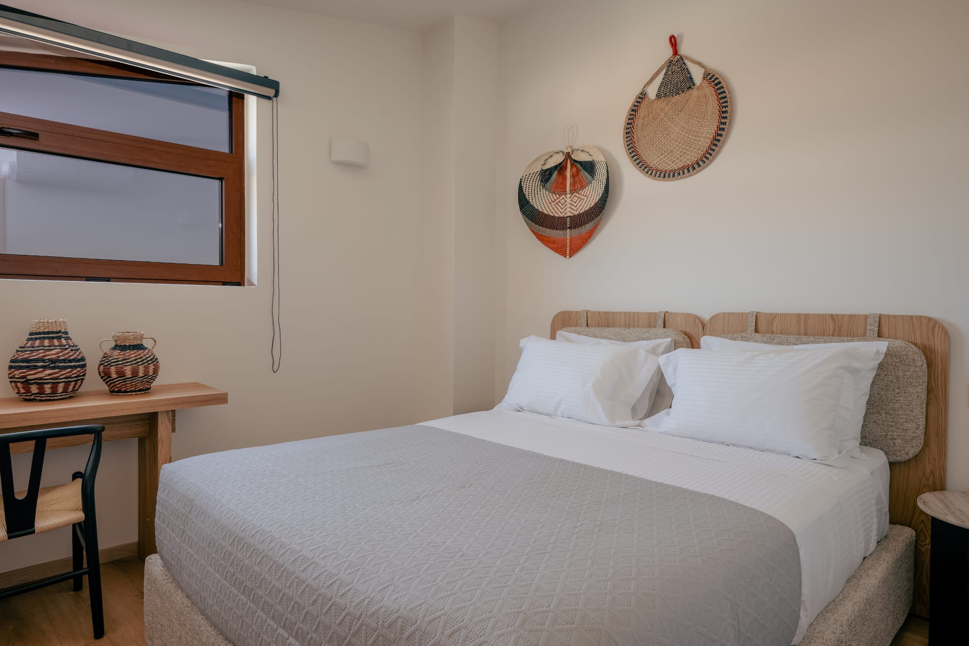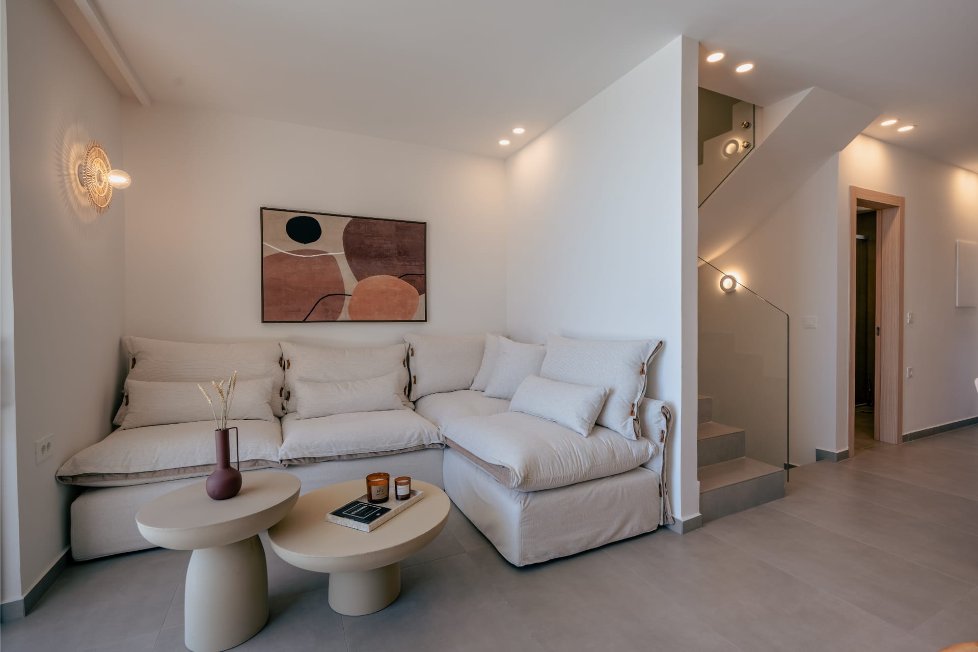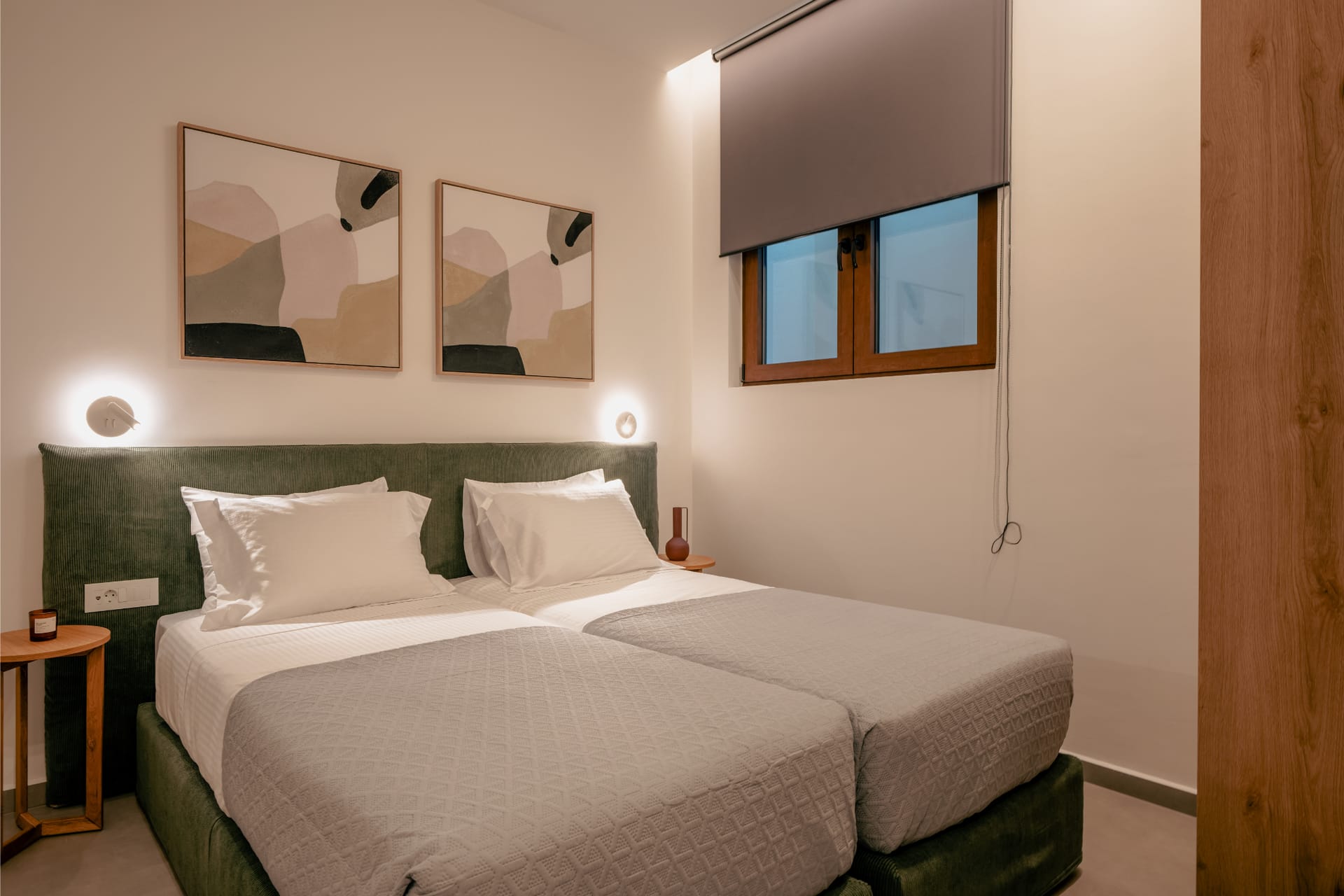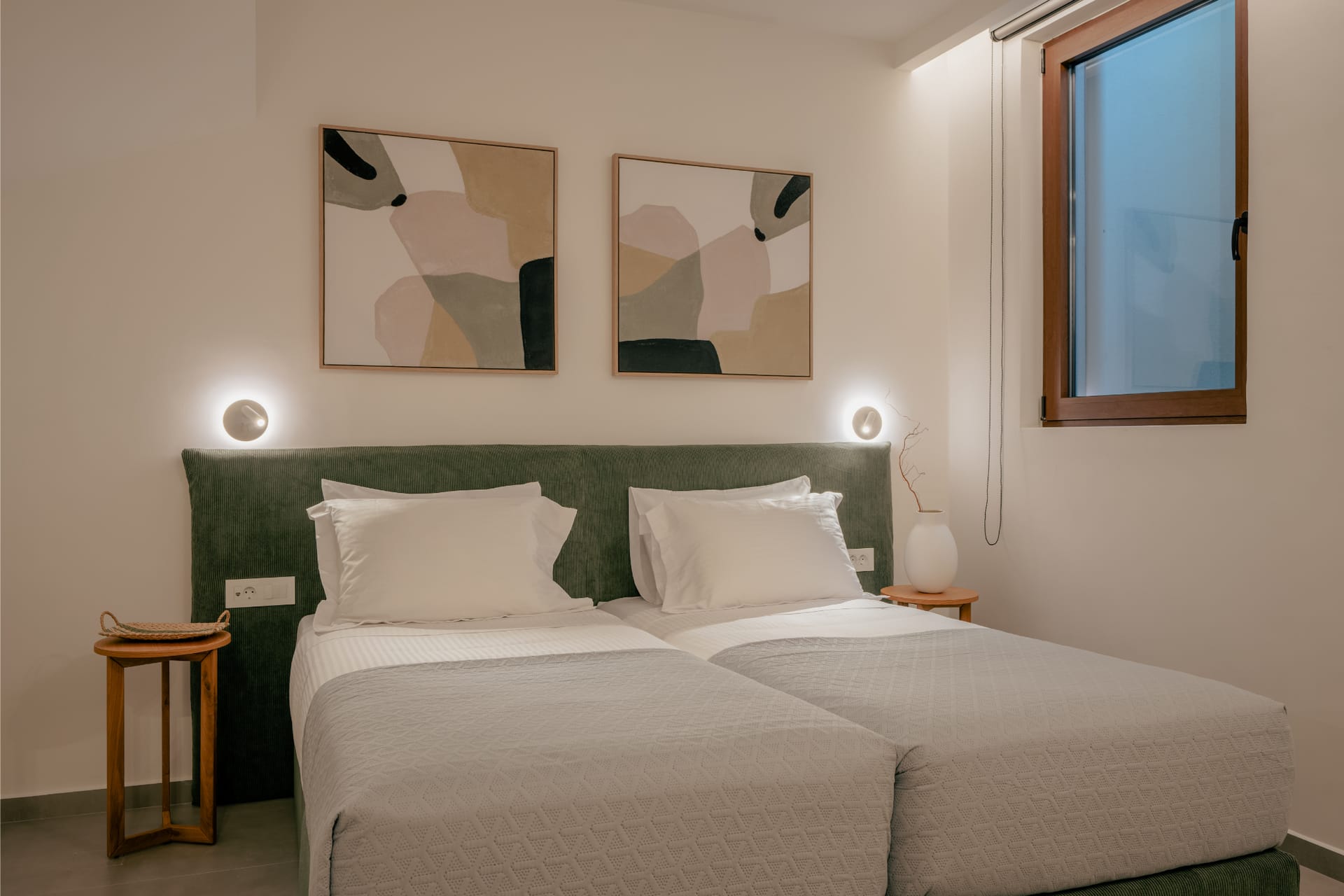 Intimate yet elegant, Villa Carob is designed for up to 6 guests and features three bedrooms across two levels. The first floor includes a queen-size bedroom and a twin bedroom, while a third queen-size bedroom is located in the quiet of the basement. The villa boasts three ensuite bathrooms, as well as an additional full bathroom for convenience. With its cozy layout, soft lighting, and inviting indoor-outdoor flow, Villa Carob is a wonderful choice for smaller families or couples traveling together.