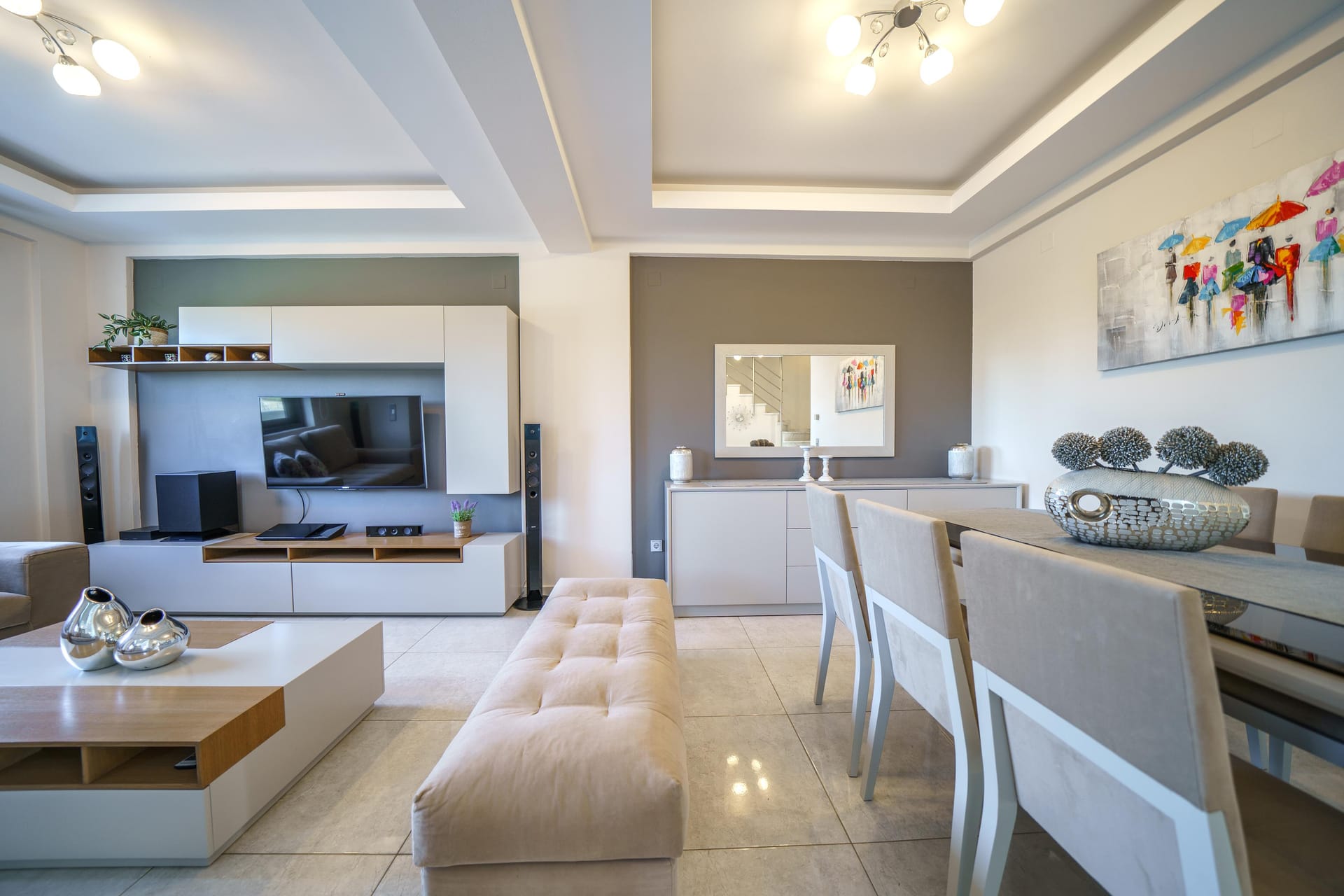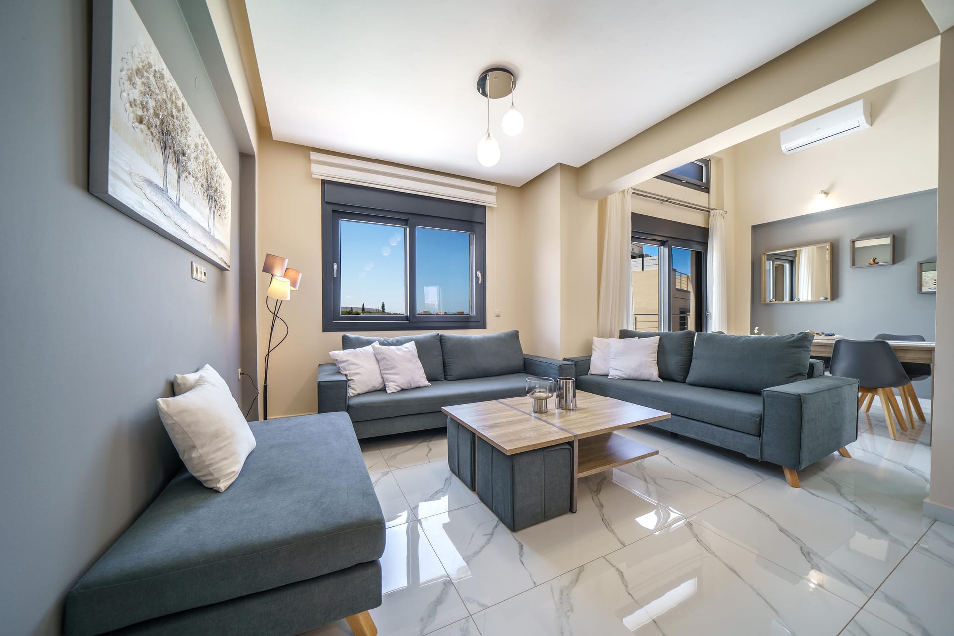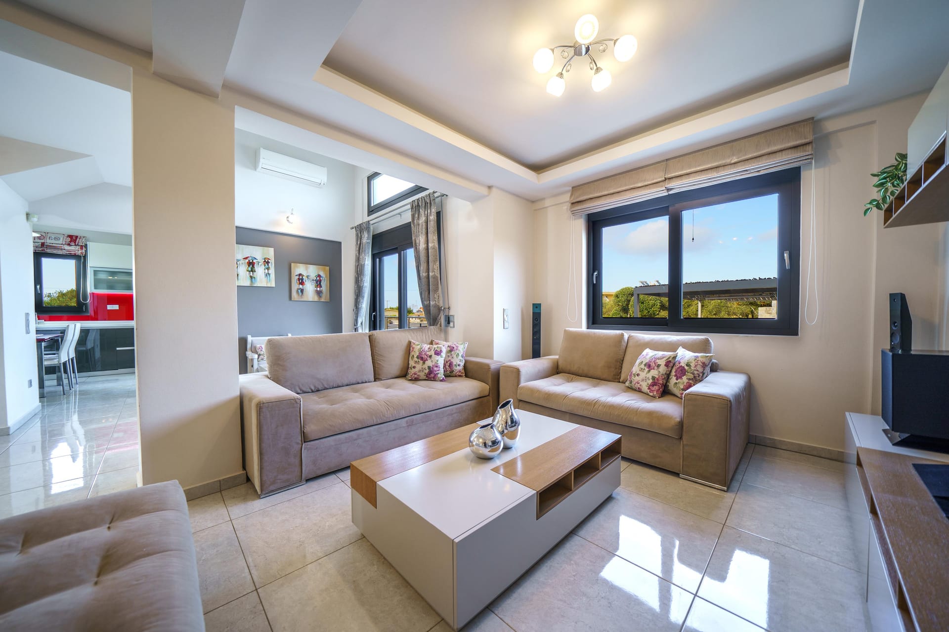 ✔️ A spacious seating area with flat-screen TV