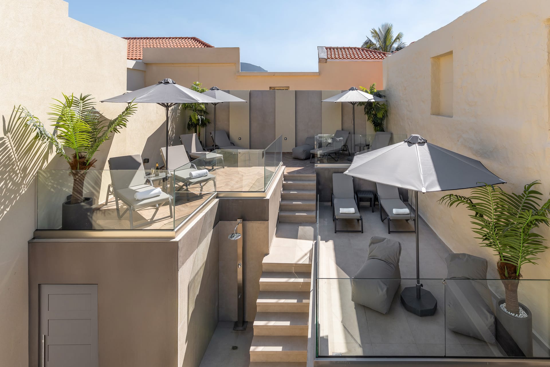 Unwind on the hotel’s sun terrace or by the year-round outdoor swimming pool, complete with beautiful views. Additional amenities include a hot tub and inviting outdoor seating areas.