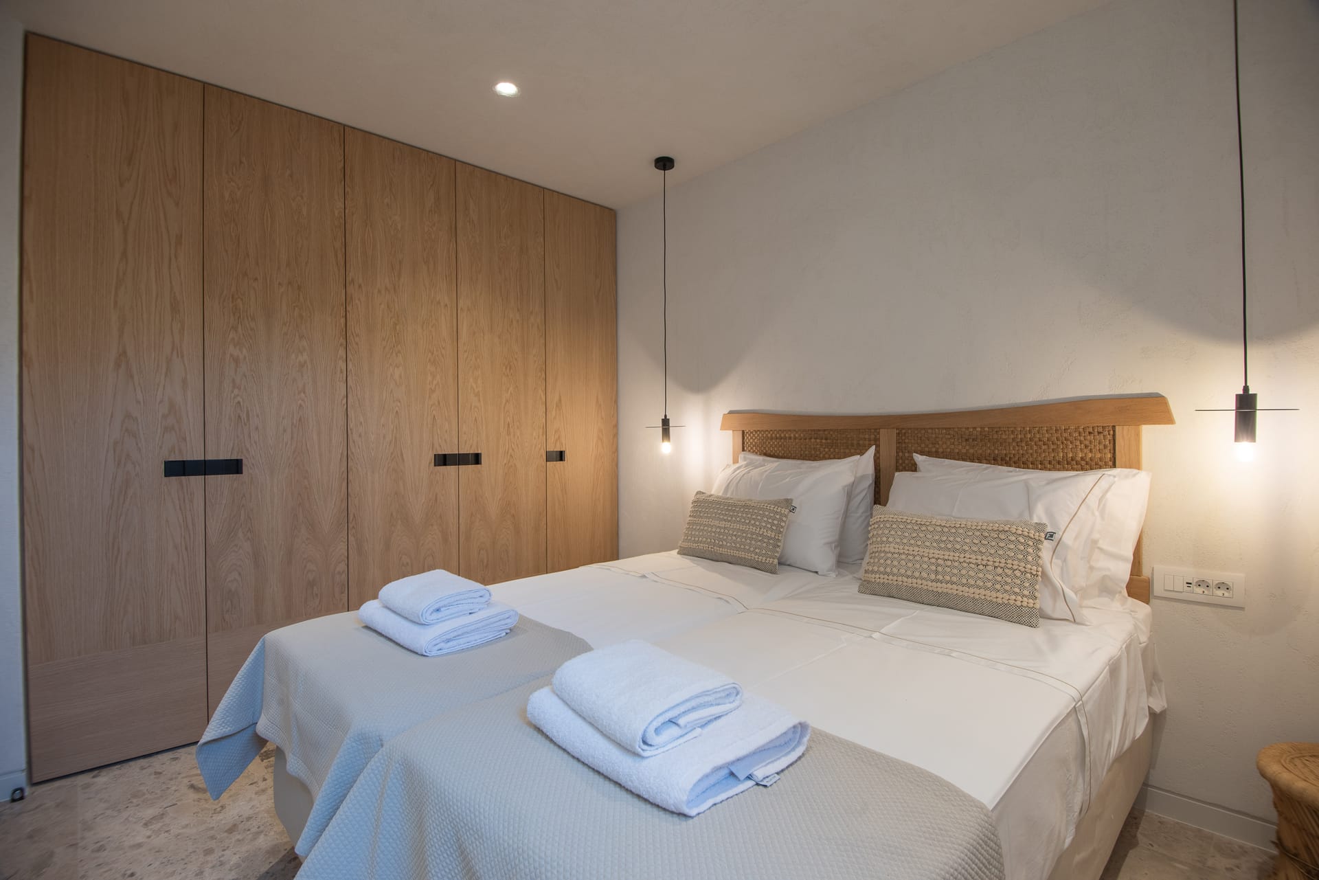 Each Elounda Naxia villa span of 144 sq.m. across two sunlit floors, accommodating up to 6 guests in complete comfort. With two master bedrooms on the ground floor and one twin bedroom below perfect for families or groups of friends to enjoy privacy and togetherness alike.