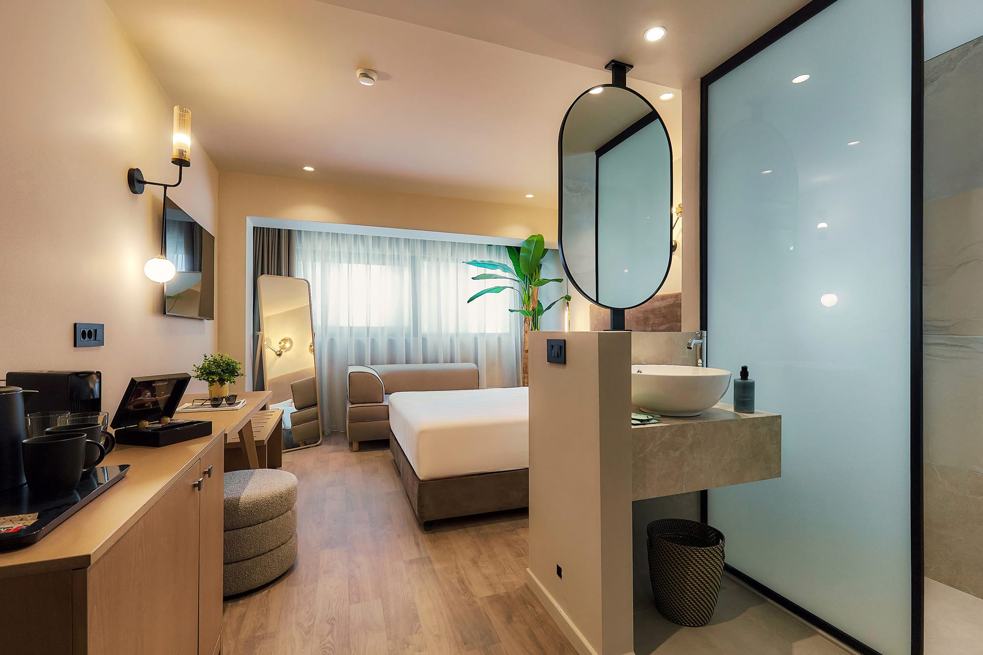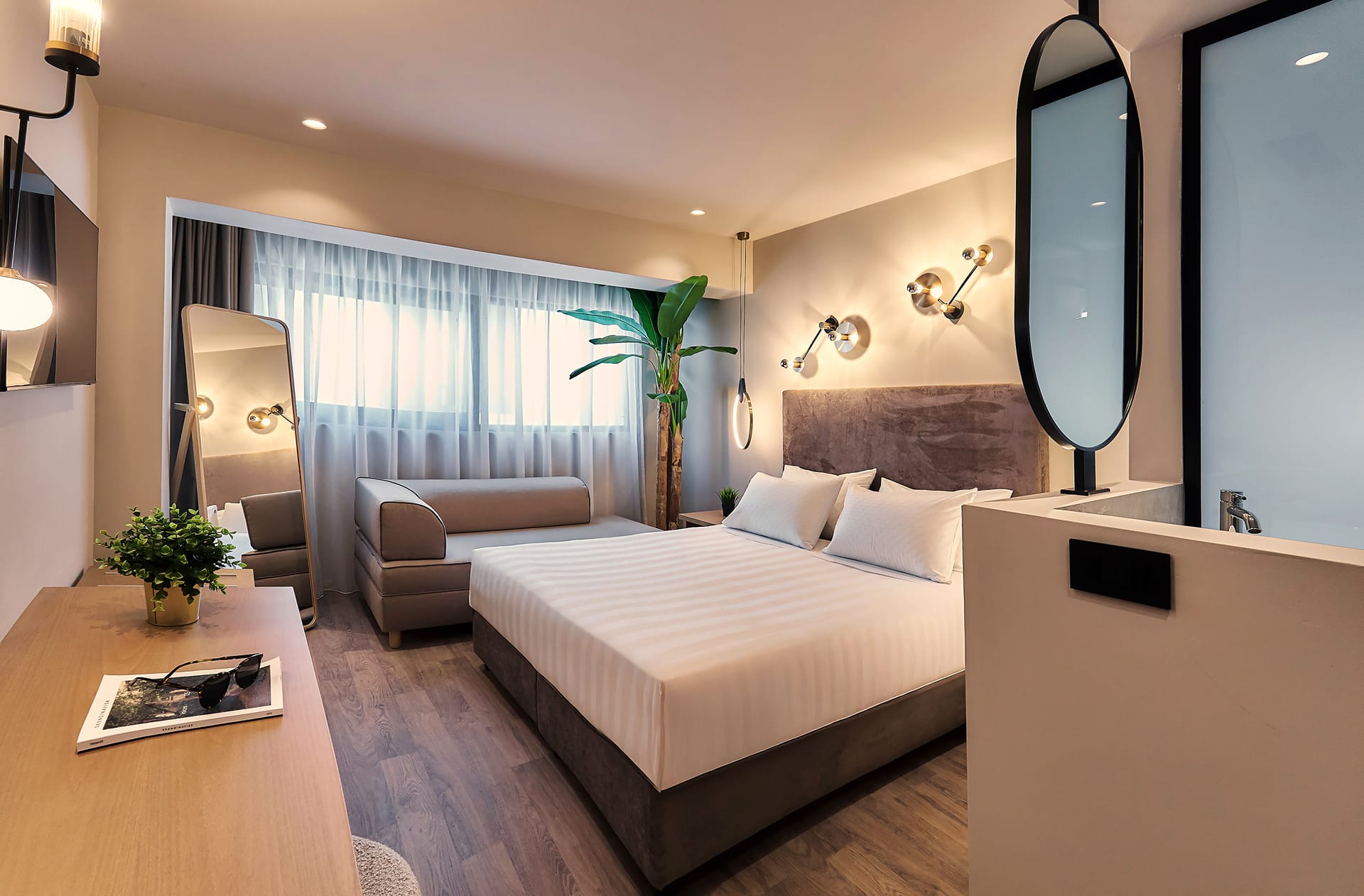 A stylish, sustainable hotel for those who seek to combine boutique vacation in a destination which never sleeps. A hotel which removed buffets and created carefully, tasteful a la carts using fresh and local ingredients. Breakfast, snacks and dinner, orderable to your waiter! Two swimming pools to pass your day on a bean bag or a wooden sun lounger with comfy mattress. The great attraction is the Tan pool at the Roofsky which urges the senses to be there all the time. The boutique elegant rooms designed to serve your needs throughout vacation.