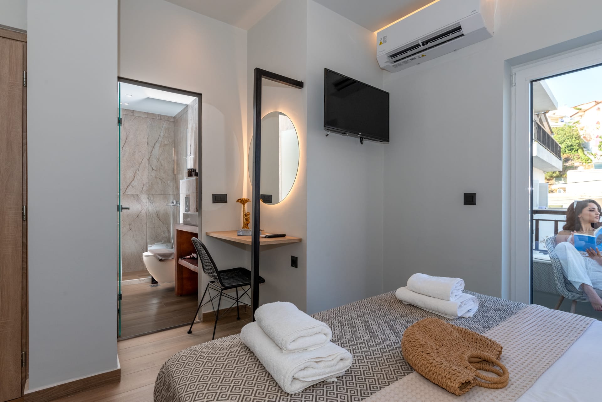 Recently fully renovated, Bali Seaside Sailor offers a fresh and modern beachfront retreat in the picturesque village of Bali, Crete. Just 4 meters from the shore, the hotel provides breathtaking sea views and a relaxing ambiance, enhanced by stylish new interiors and updated facilities.