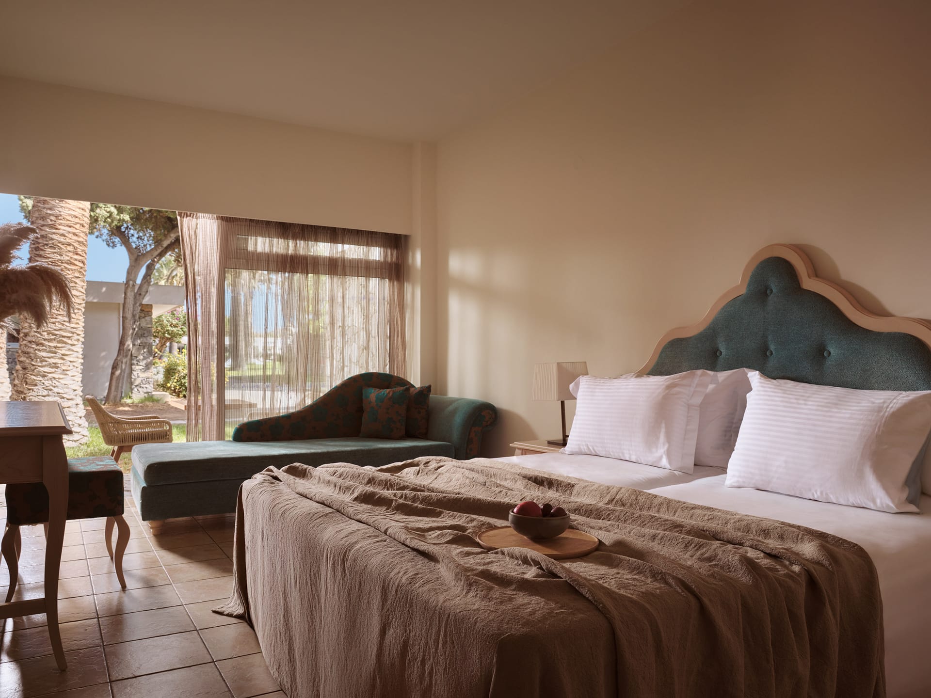 This holiday hotel has a great selection of guest accommodation on offer. Guests can choose between the standard guest rooms or the pretty bungalows, amidst splendid gardens and palm trees, with garden or sea view. All rooms and bungalows harmoniously fit into the natural environment, offering the guests a feeling of peace and relaxation.