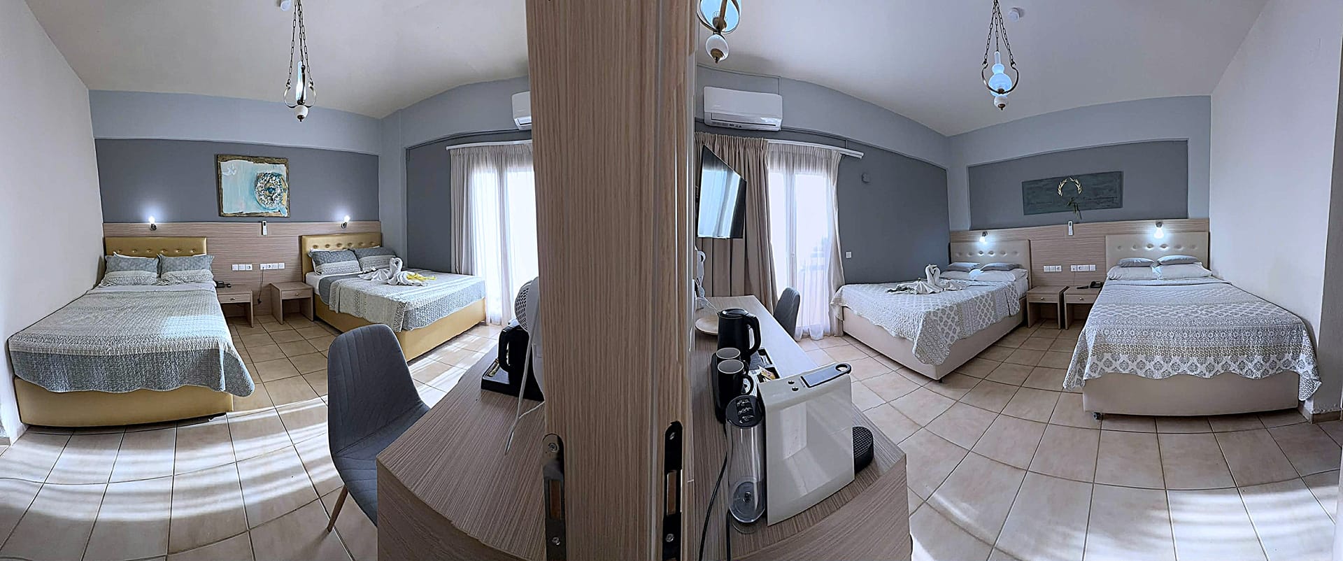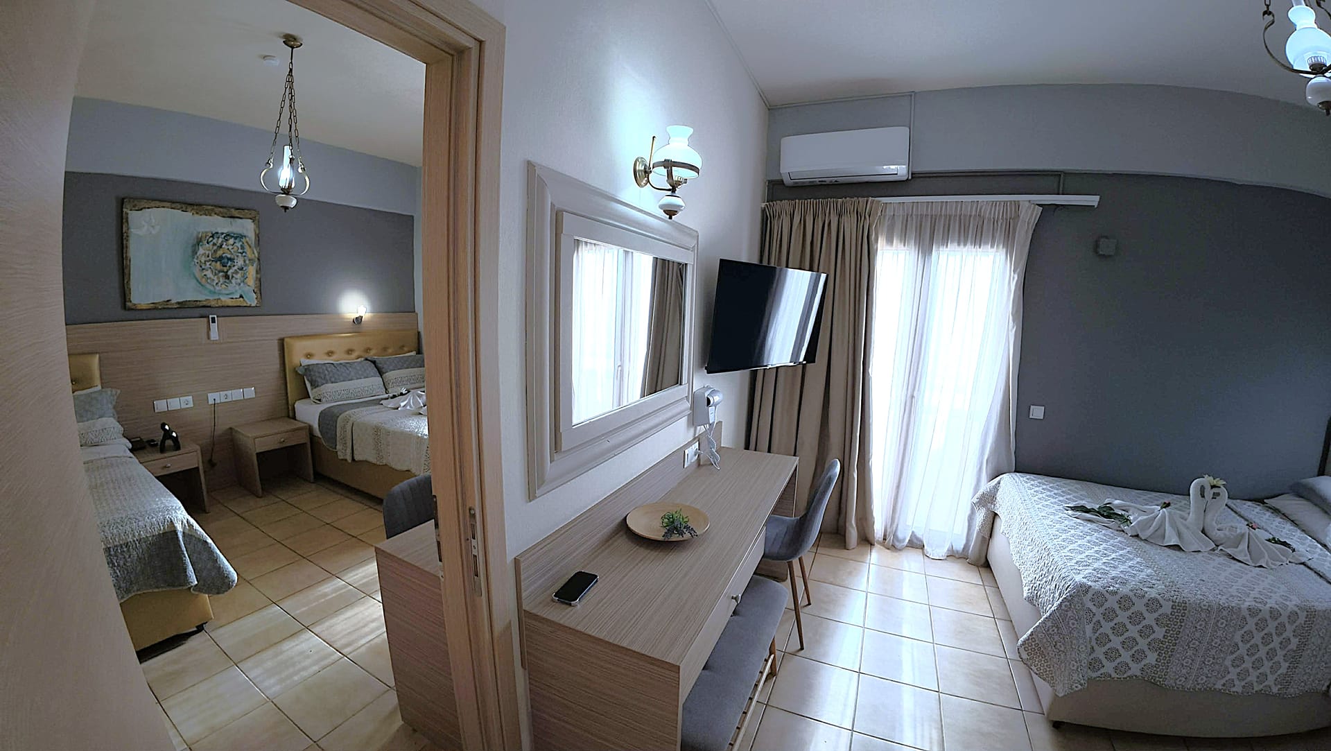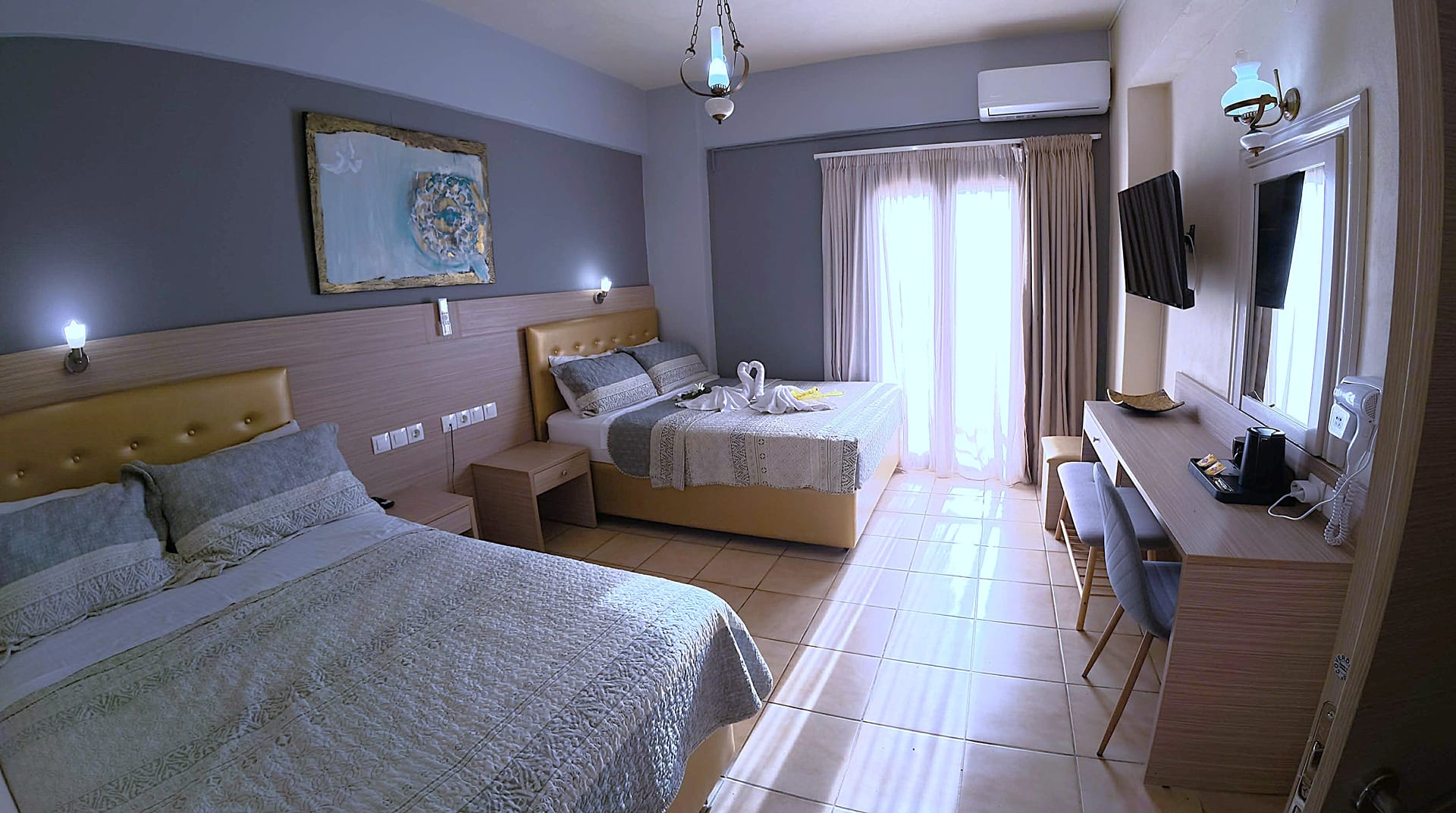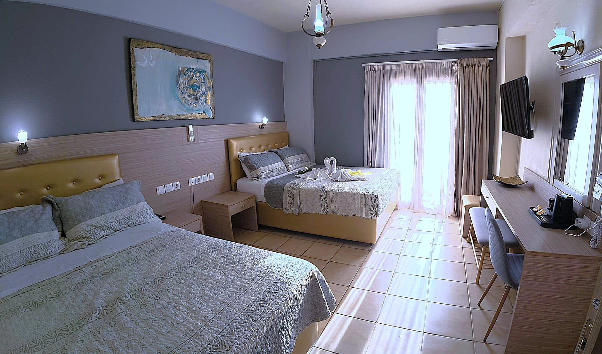 "THALIA deco CITY & BEACH HOTEL" is a 2nd generation family run business, which offers its services to the hospitality industry since 1979. The completely renovated in 2014 hotel rooms are equipped with free AC, fast free Wi-Fi, private bathroom with toiletries, satellite flat-screen TV 32'-43', hairdryer, refrigerator, blackout curtains, double glazing balcony doors, and balcony with street, sea or mountain views. Guests at THALIA deco HOTEL partner of the Crete Golf Club can use the golf facilities at a special rate.