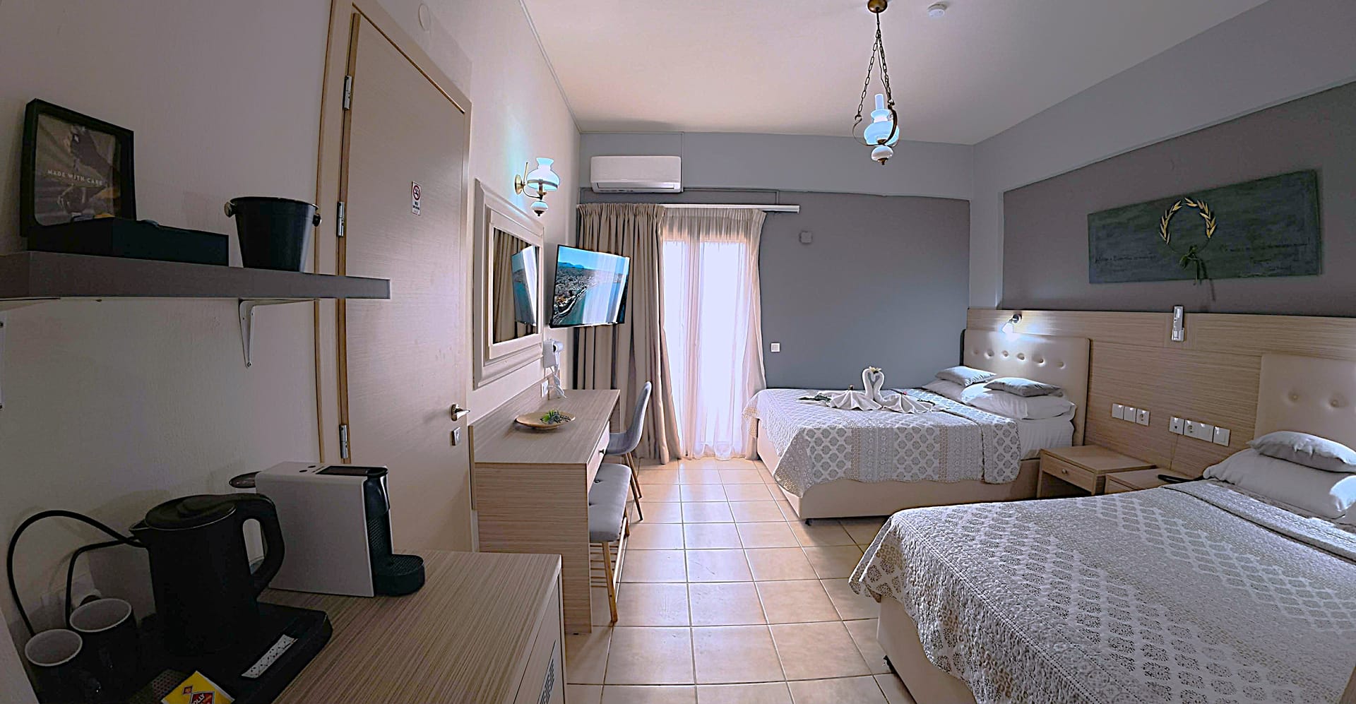 The reception operates 24hr reception and all the property is covered by CCTV in all areas, in and out of it. Safety deposit boxes are placed next to the reception (extra charge,10 euro per/week). Airport transfers, excursions, activities, adventure trips, car and bike rentals can be arranged at the reception, as well as useful information for walking, bus schedules, beaches and tips for very good Cretan Tavernas serving traditional specialties.
