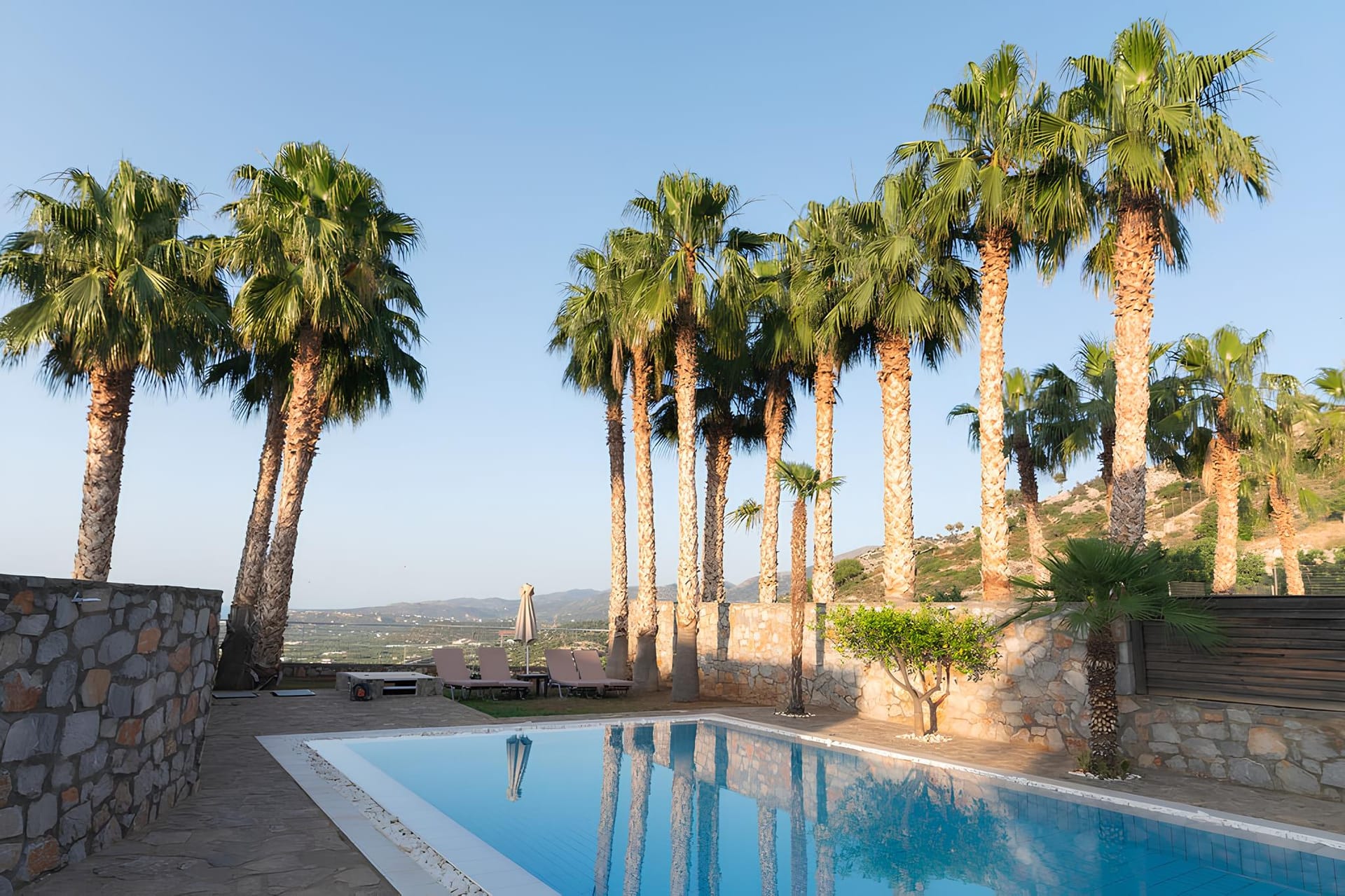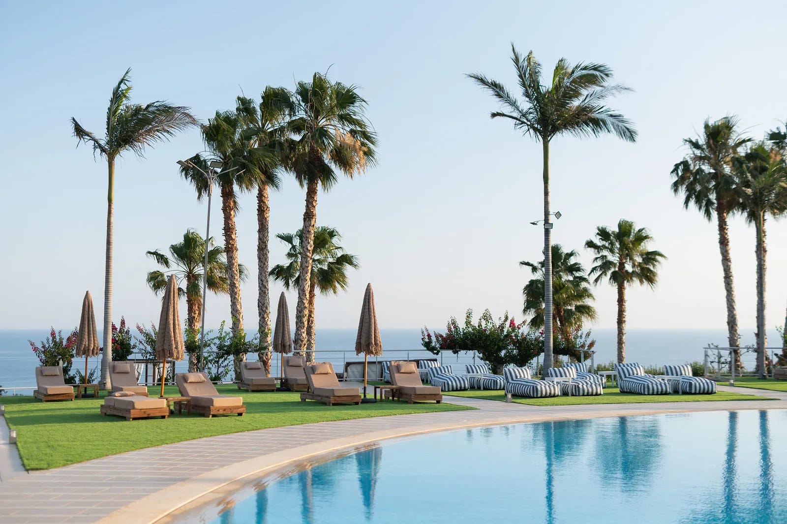 • sunbeds and umbrellas at the pool