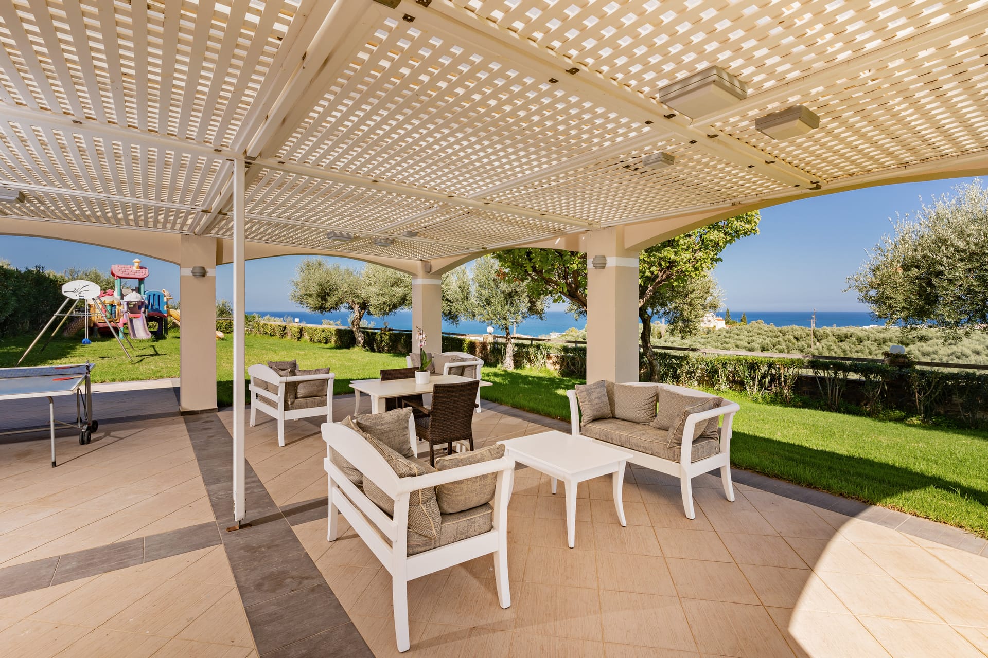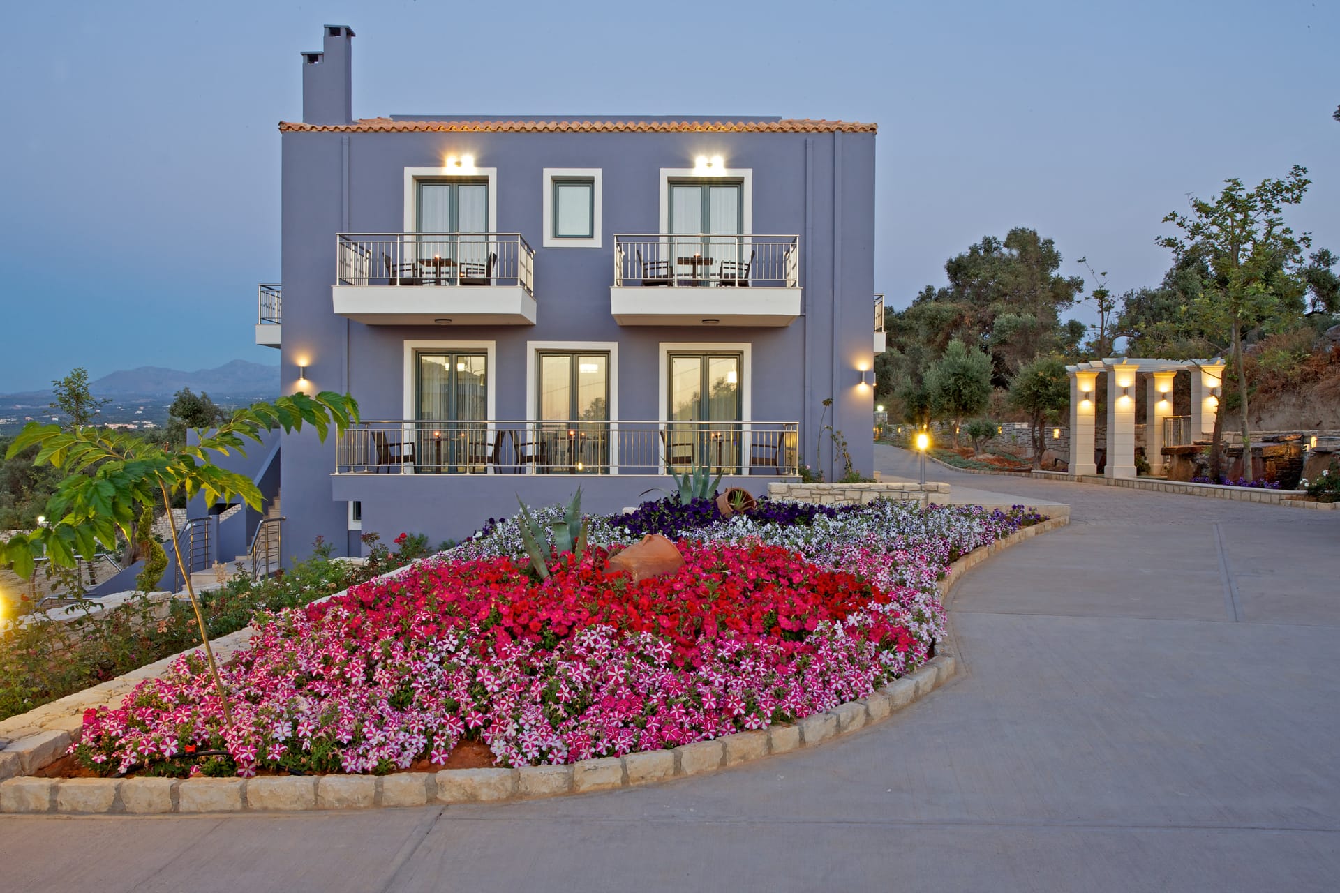 The 5 Star ***** recently constructed villas Carme are built in a verdurous and particularly quiet environment in an olive grove of 12.000 sq.metres at the village Adele. They are situated 800m from the sea and they are only in a distance of 10 min. by car from the centre of the town of Rethymno. The 12 luxurious villas provide every visitor with the chance to experience carefree holidays and feel the calmness that both the superb view to the sea and the imperious Psiloritis (Mount Ida), the highest mountain peak of Crete can create.