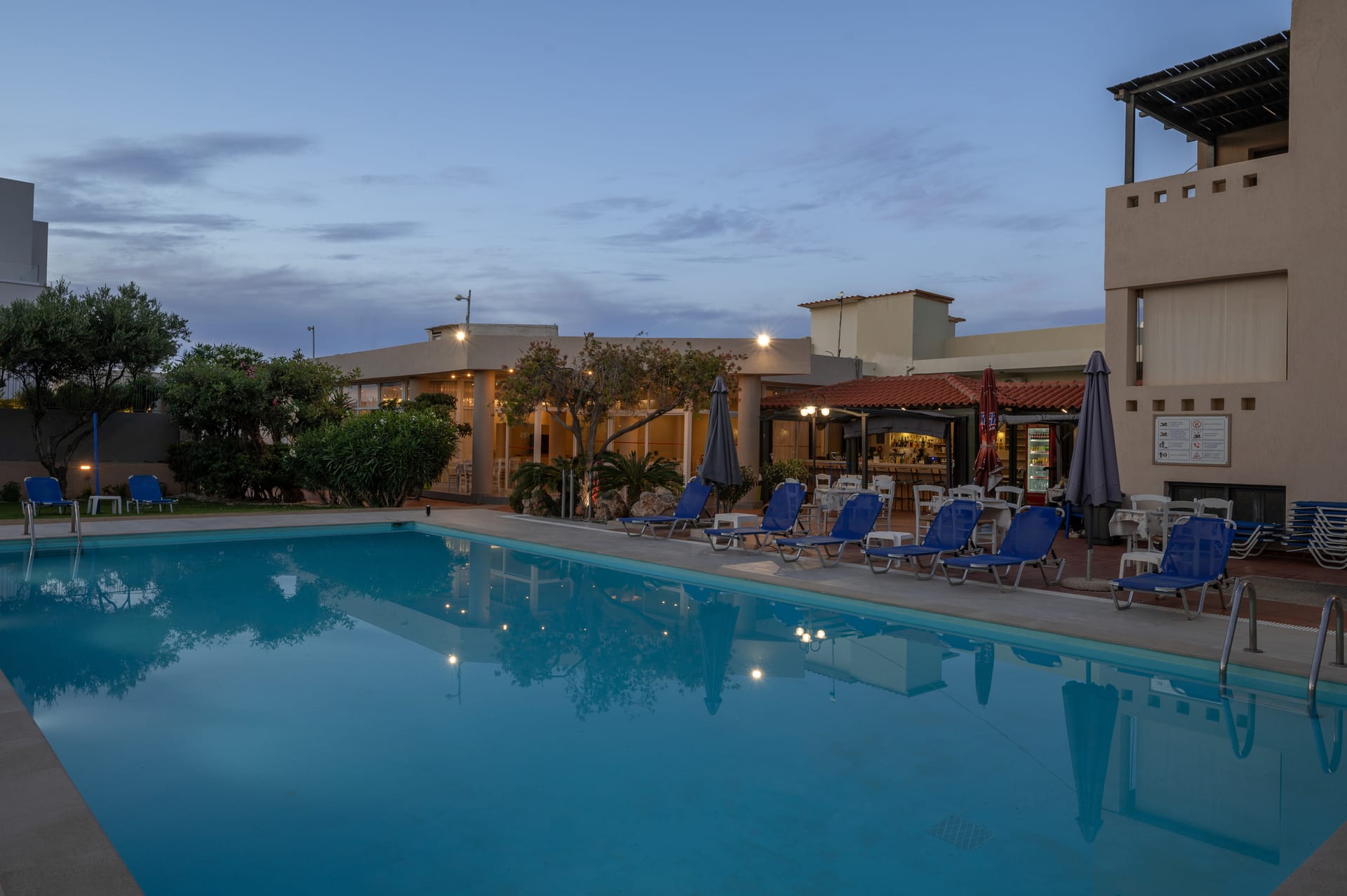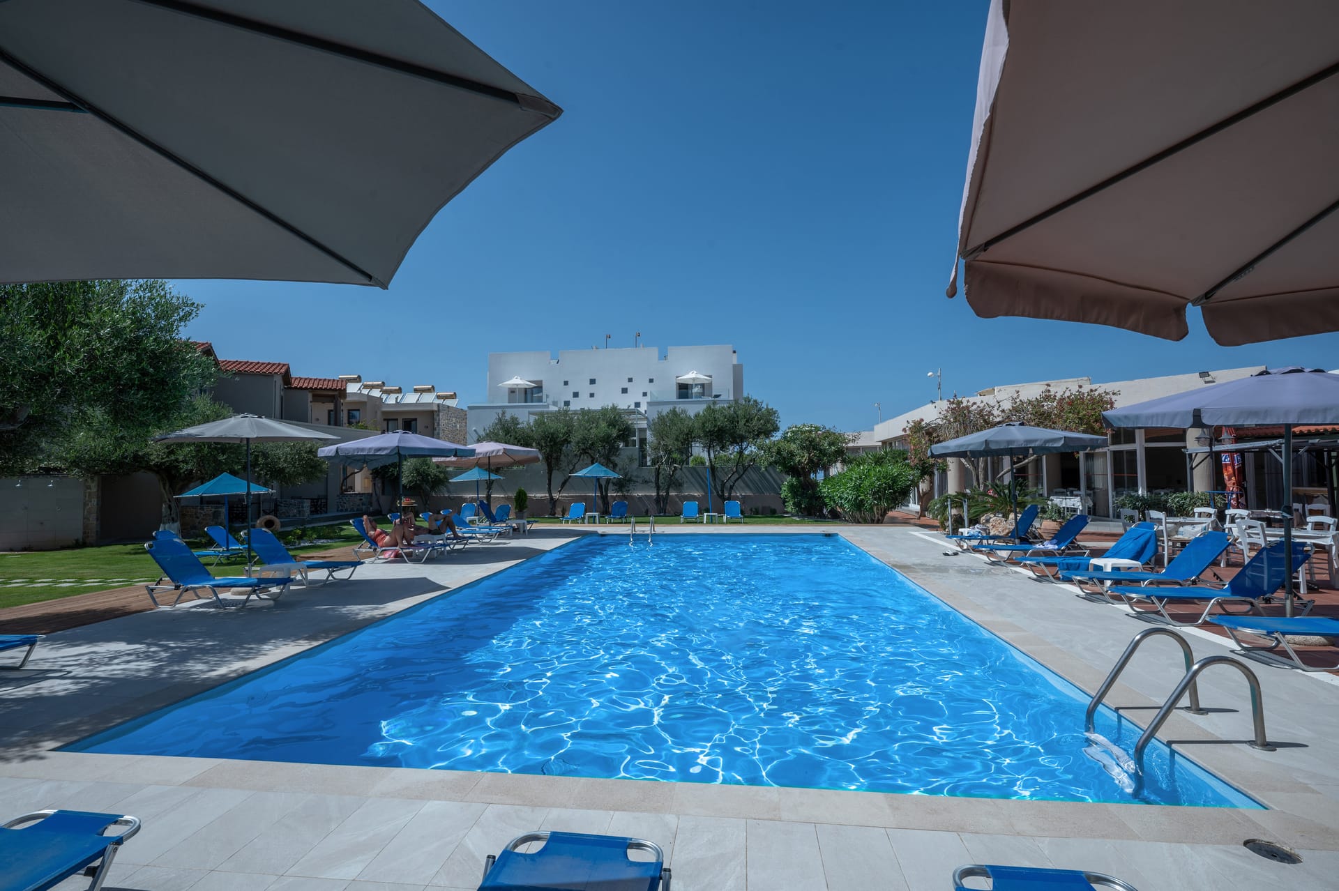 Accommodation: There are 36 rooms including 2 Studio Pool View 25 m2, 8 One Bedroom Apartment Garden View 50 m2, 9 One Bedroom Apartment Pool View 45 - 50 m2, 3 Traditional Maisonette 50 m2, 6 Deluxe Maisonette Pool View 50 m2, 4 Deluxe Suite Sea View 45 m2 and 4 Deluxe Suite Sea View with Balcony 45 m2.