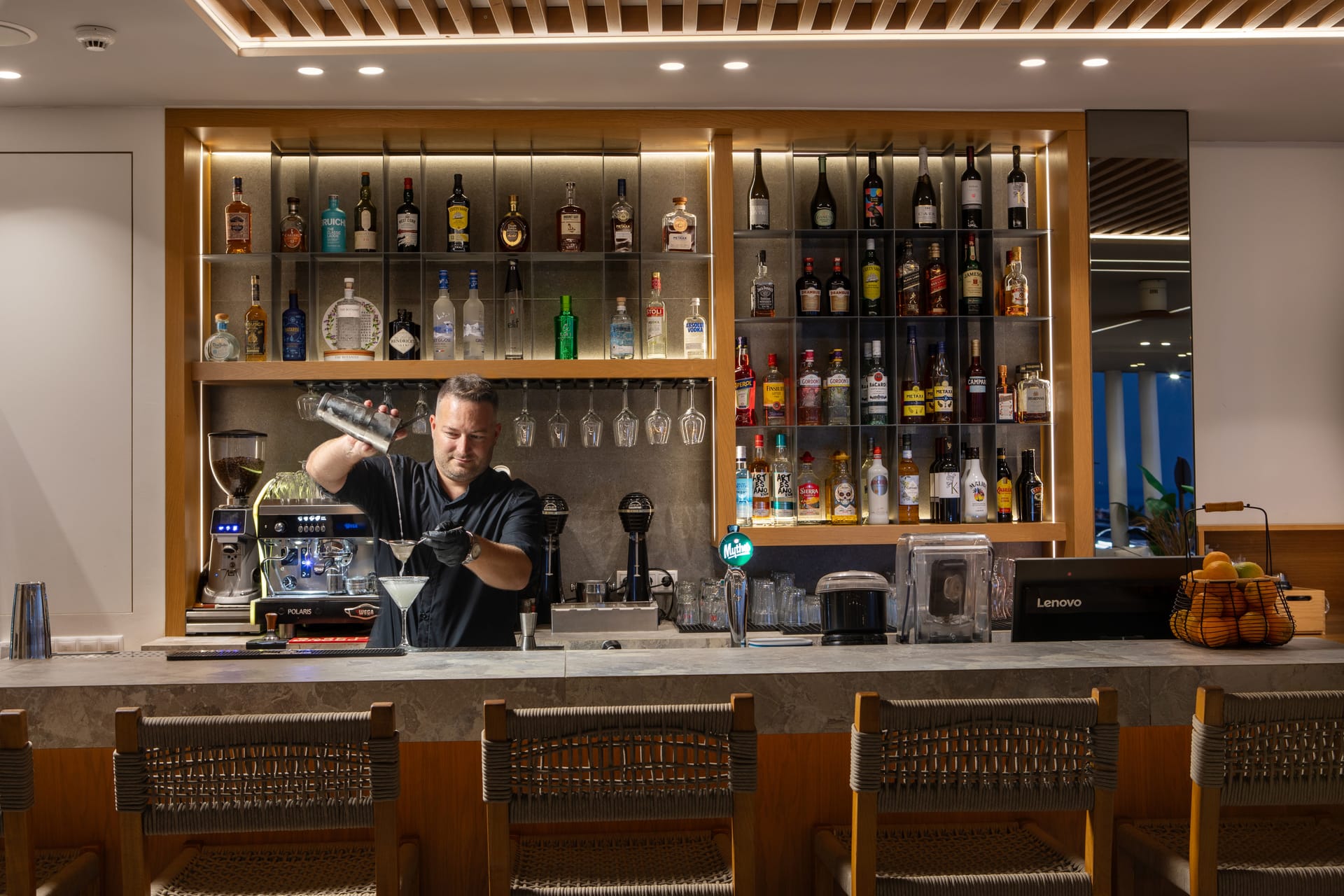 Guests can relax at the sun loungers by the pool and enjoy a refreshing drinks or snacks from the Hotel’s bar menu. Sunbeds are provided complimentary on the part of the beach in front of the property, by giving a beverage order.